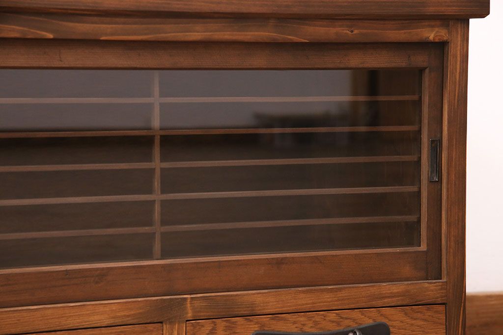 ラフジュ工房> キャビネット・戸棚> テレビ台・ローボード > ラフジュ工房オリジナル 古建具リメイク 和モダンの空間づくりにおすすめのテレビ台(テレビボード、ローボード、リビングボード、収納棚)(R-051240)