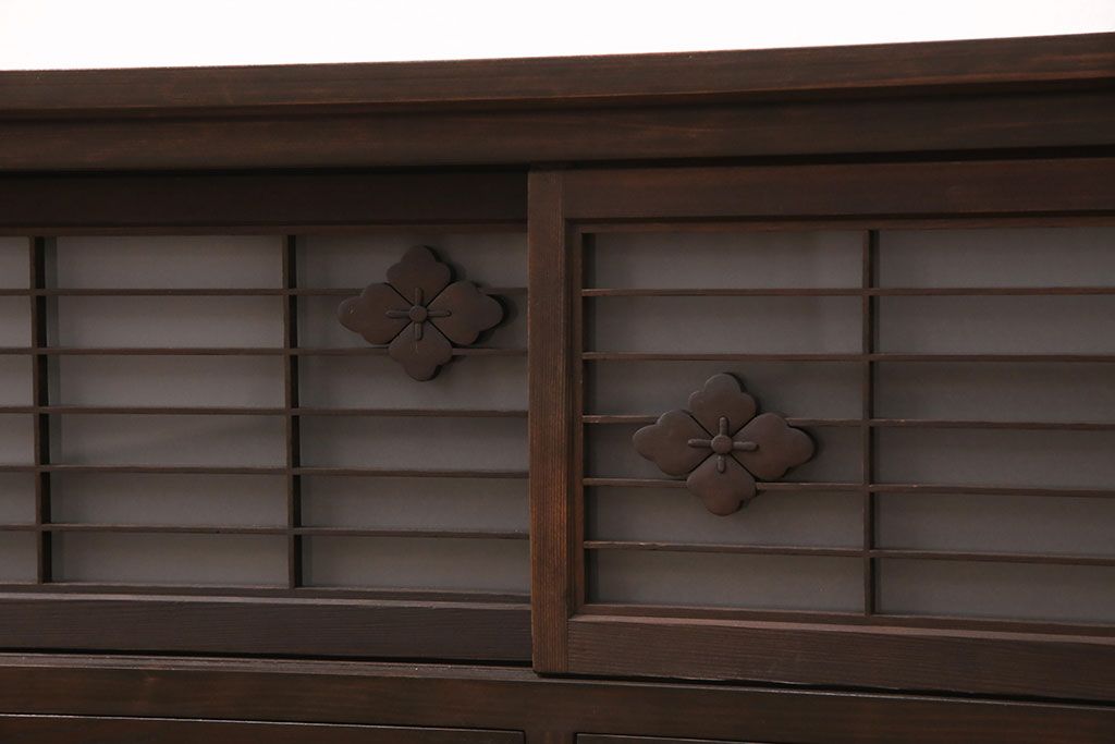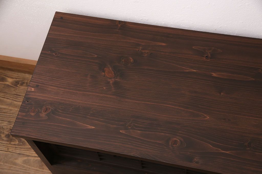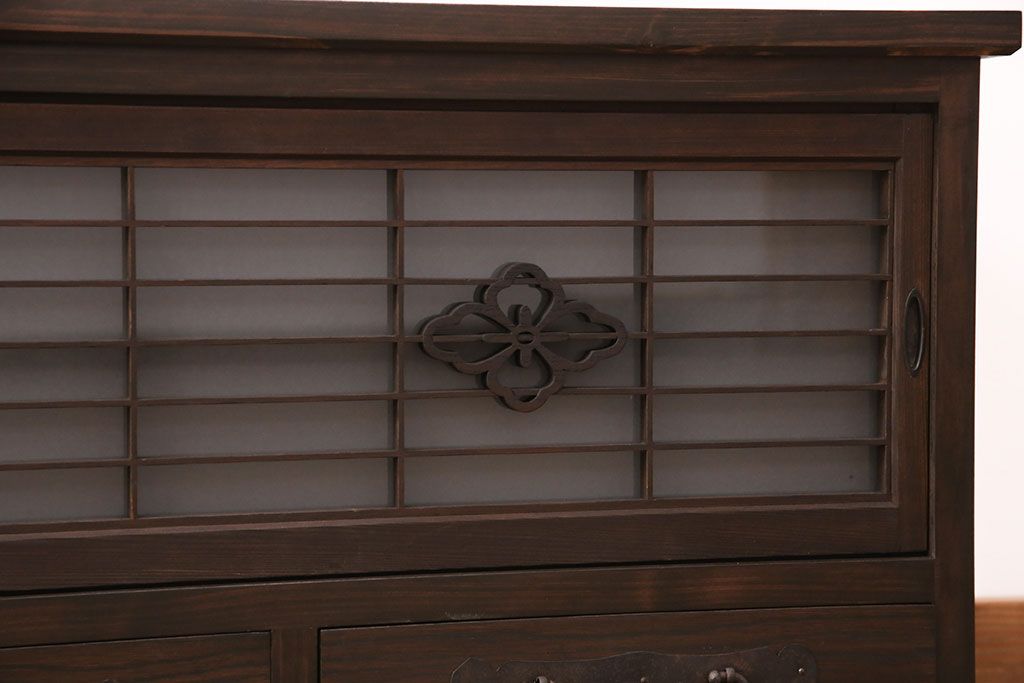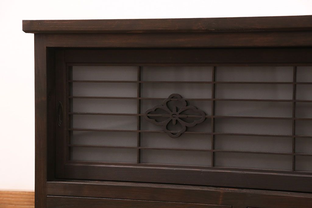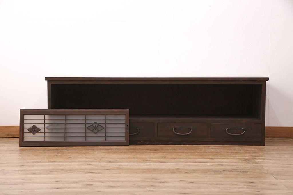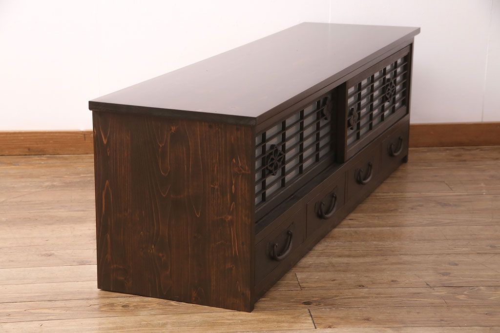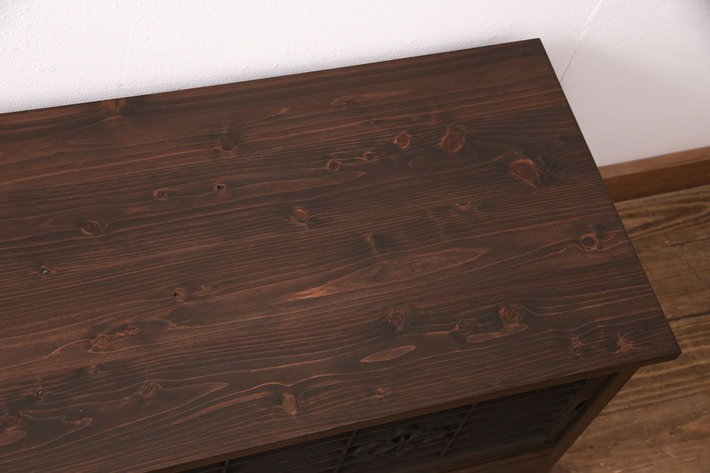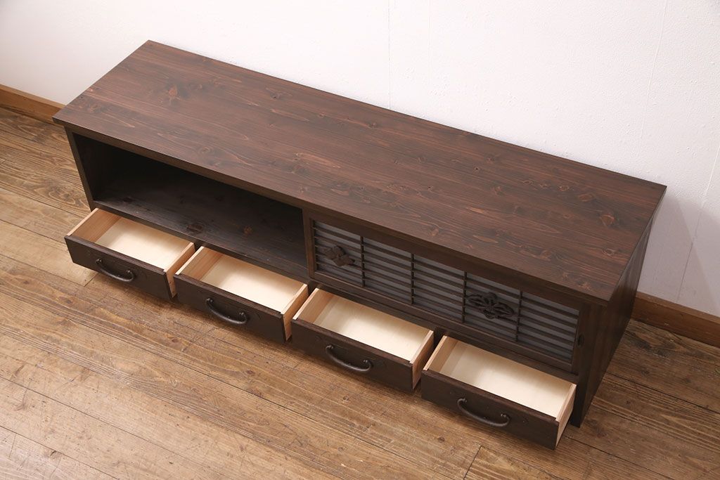 ラフジュ工房オリジナル 古建具リメイク 格子の彫刻が可愛らしいアクセントになっているテレビ台(テレビボード、ローボード、リビングボード、収納棚)(R-051241)