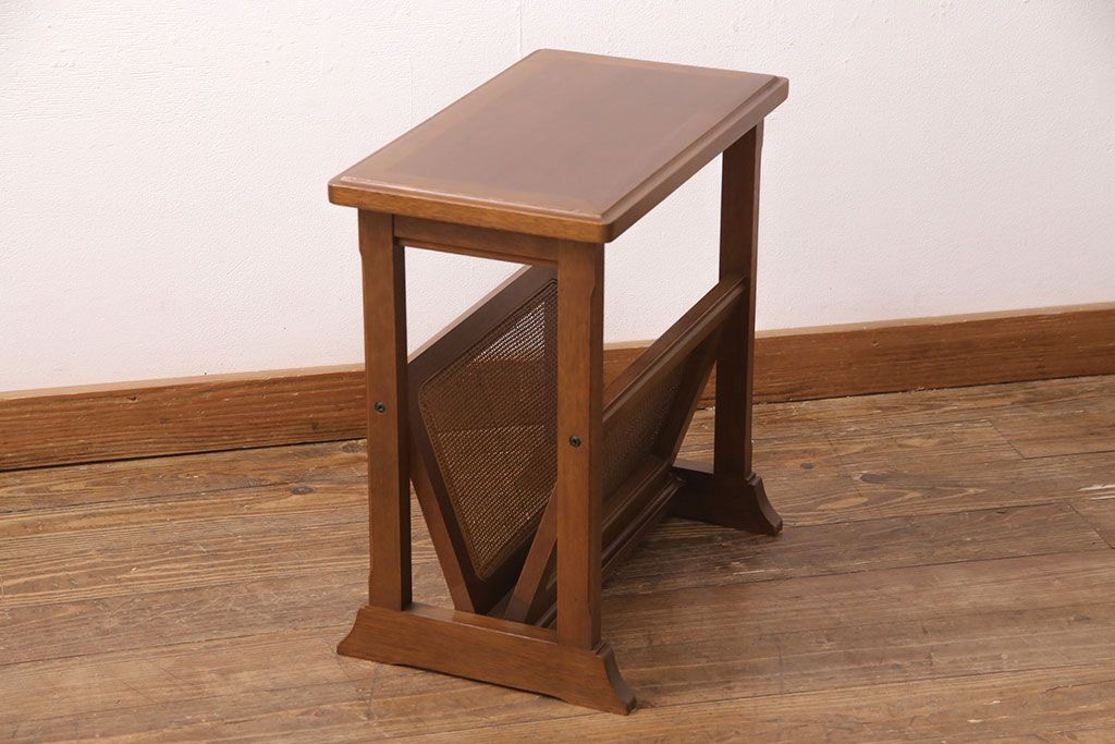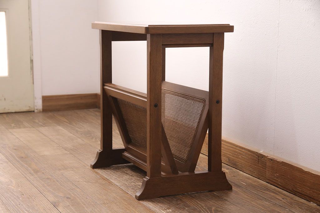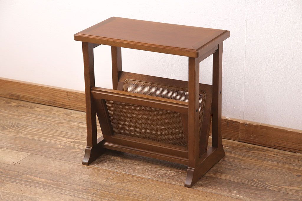 ラフジュ工房> 小物収納・トランク > ビンテージ家具 オールドマルニ maruni(マルニ木工) 地中海シリーズ 涼しげな印象が魅力のマガジンラック付きサイドテーブル(マガジン卓、本立て、ヴィンテージ)(R-051266)