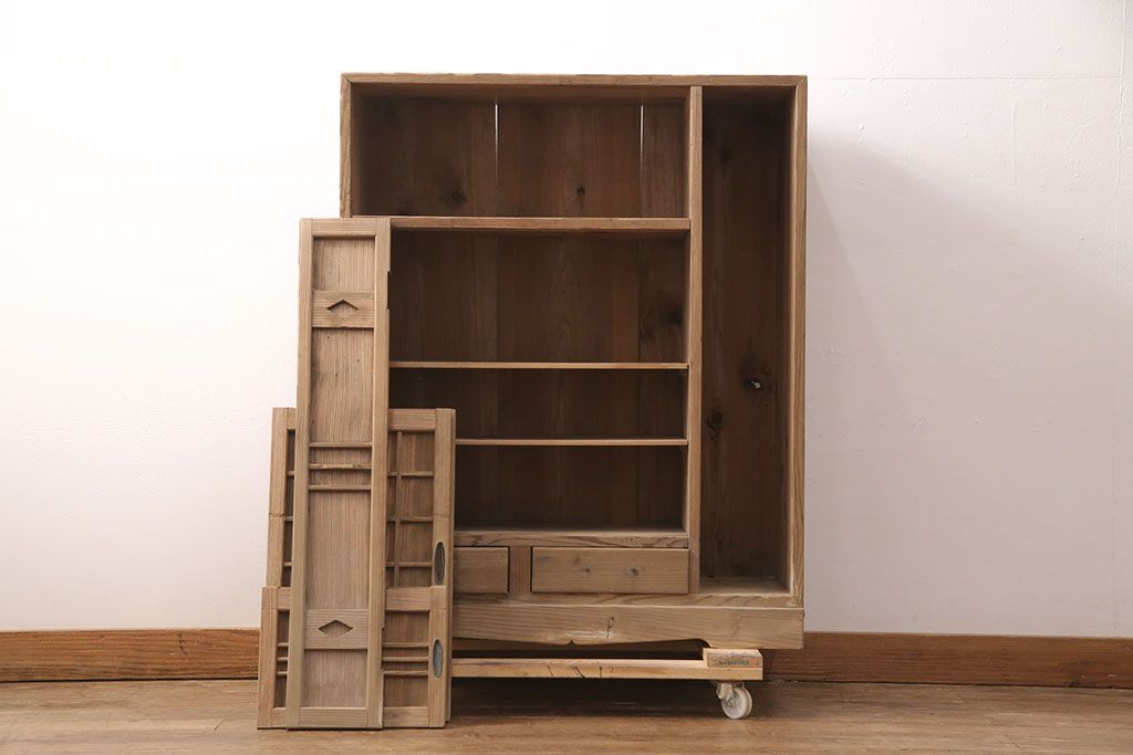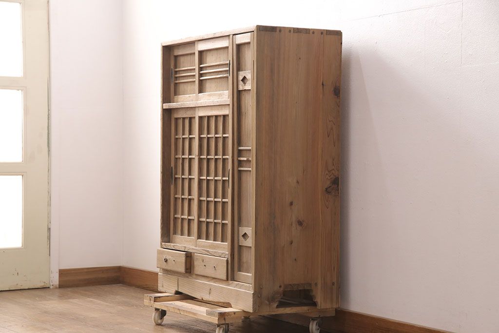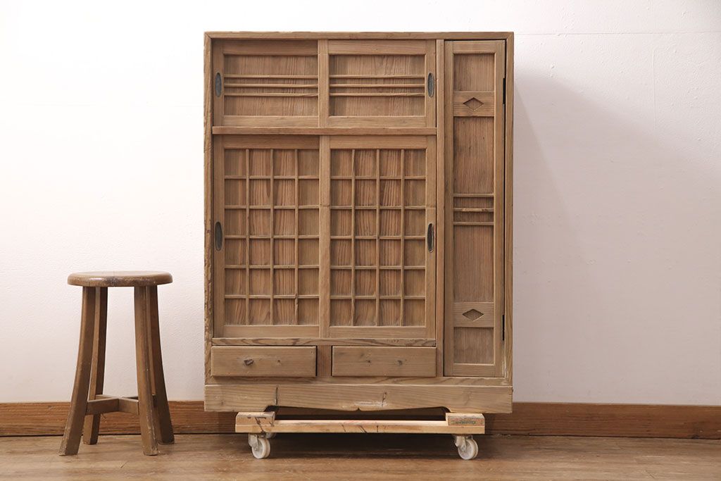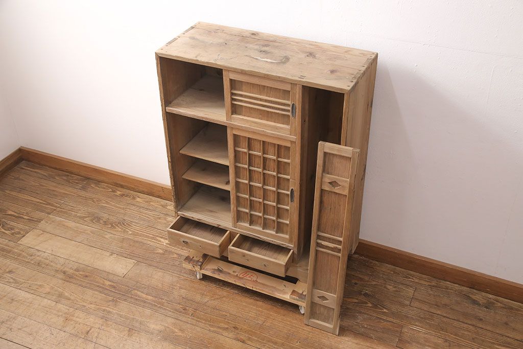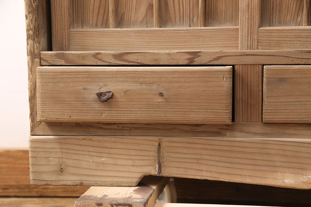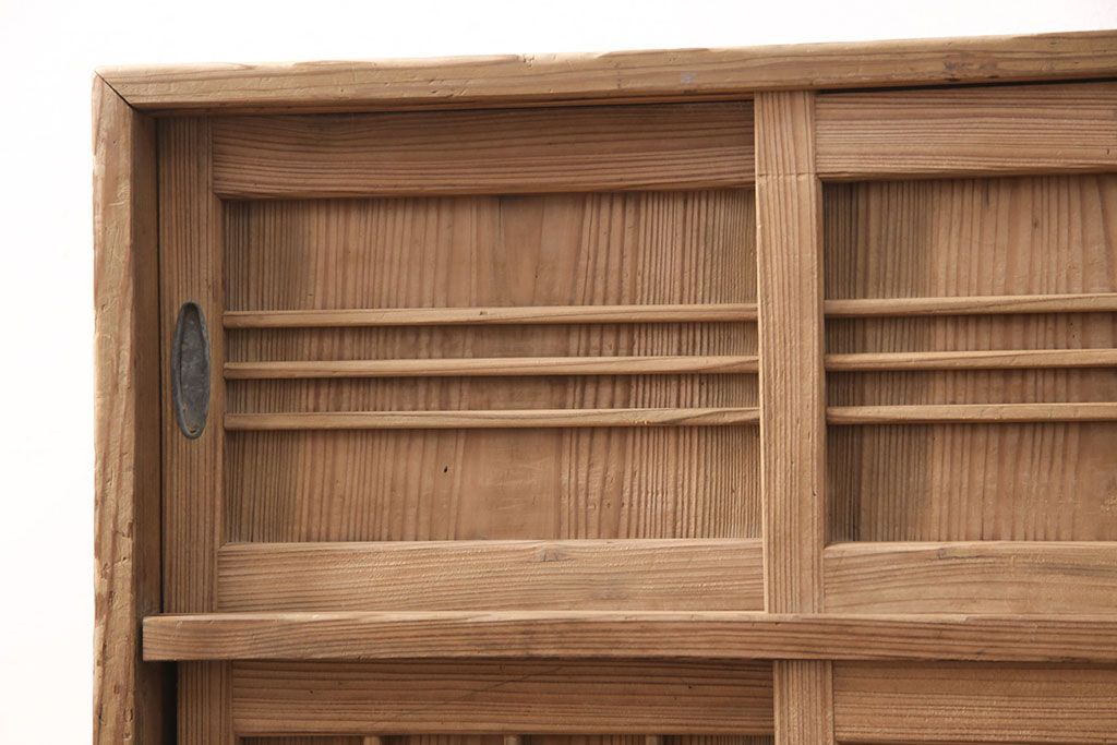 お問い合わせいただければ、優先してアップいたします。昭和初期 素朴な木味が魅力!凝った扉の造りが純和風の雰囲気を高める下駄箱(収納棚、靴箱、戸棚)(R-051183)です。