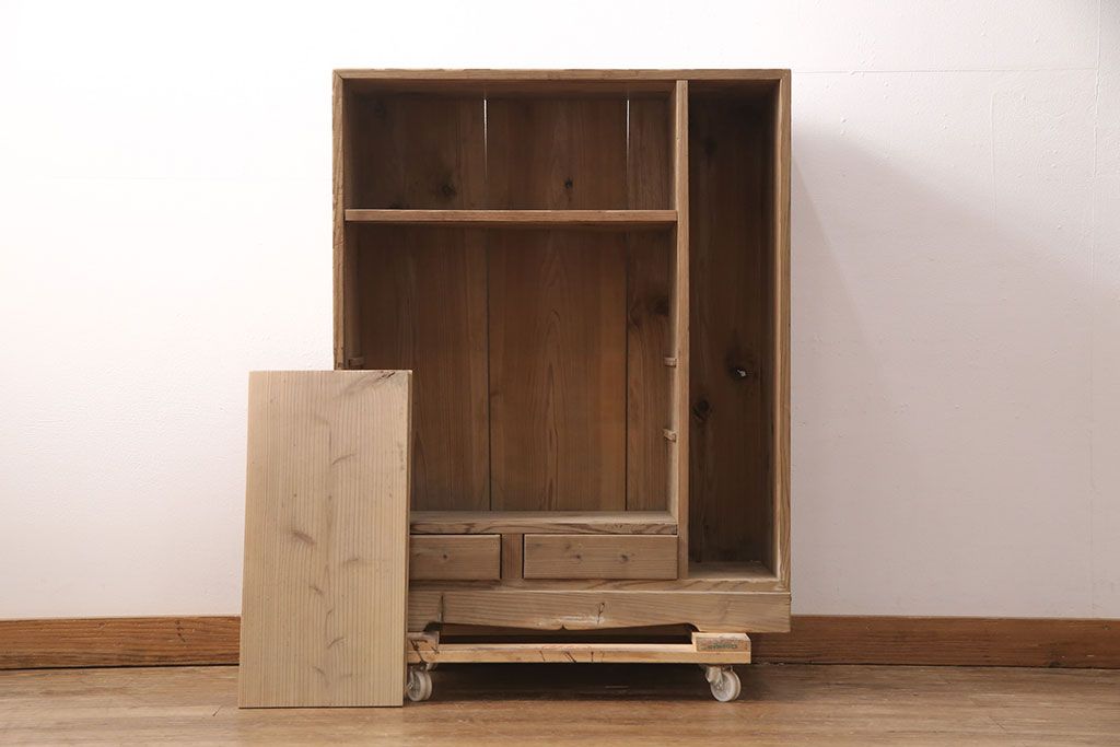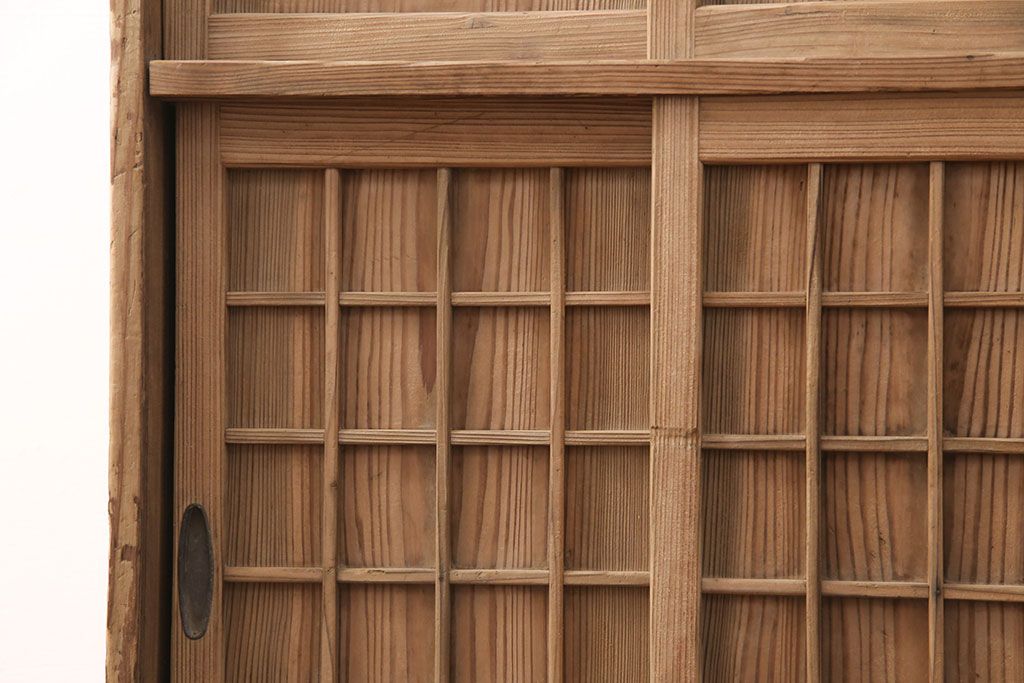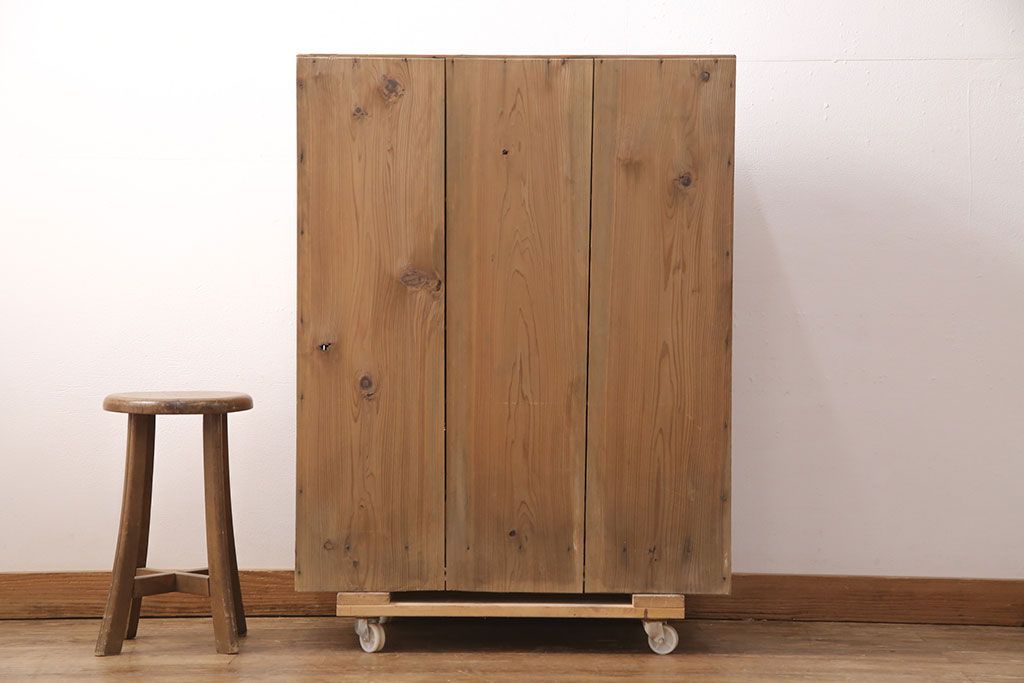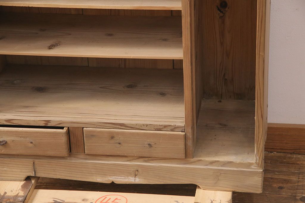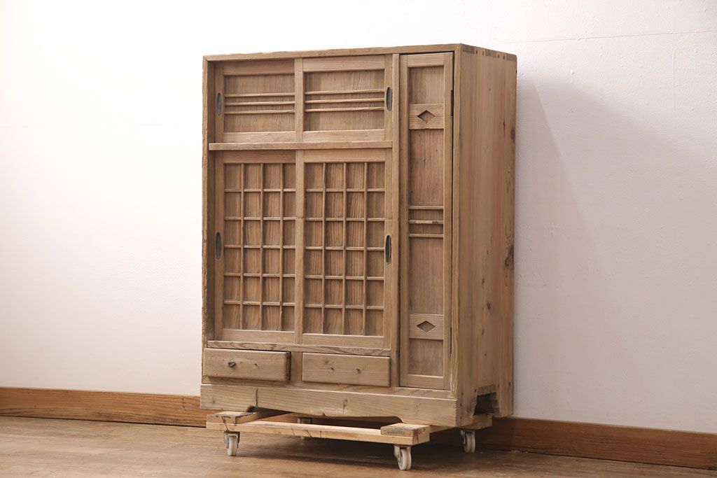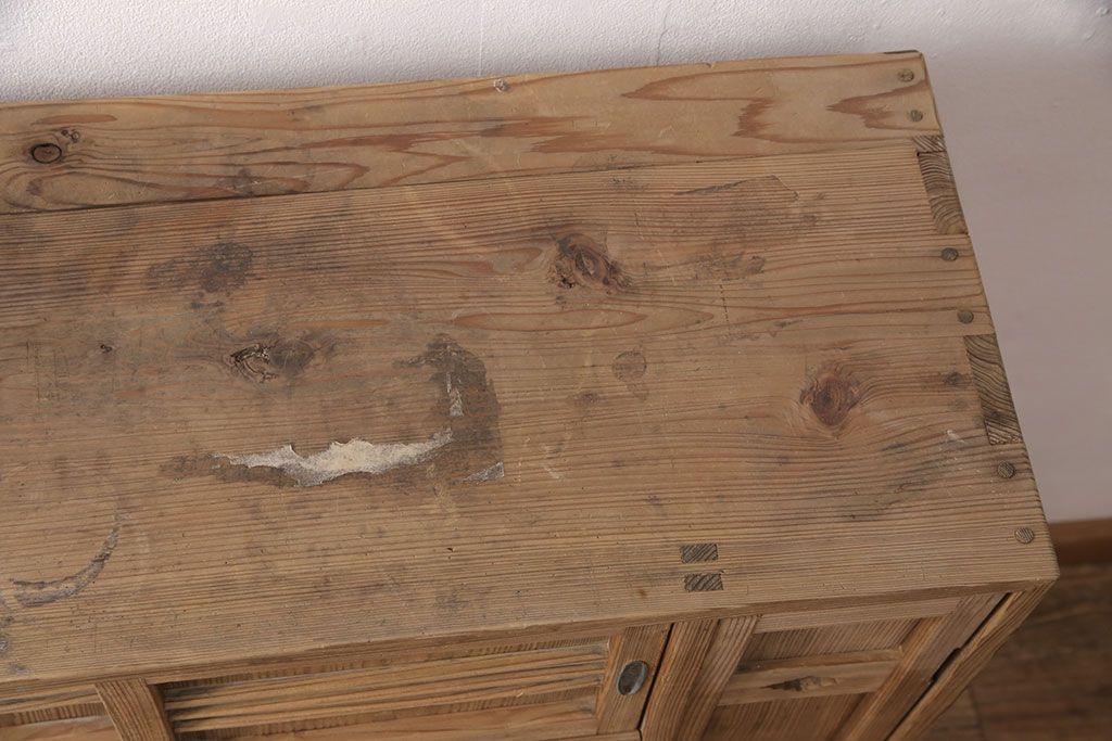 お問い合わせいただければ、優先してアップいたします。昭和初期 素朴な木味が魅力!凝った扉の造りが純和風の雰囲気を高める下駄箱(収納棚、靴箱、戸棚)(R-051183)です。