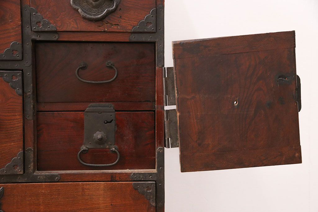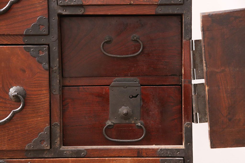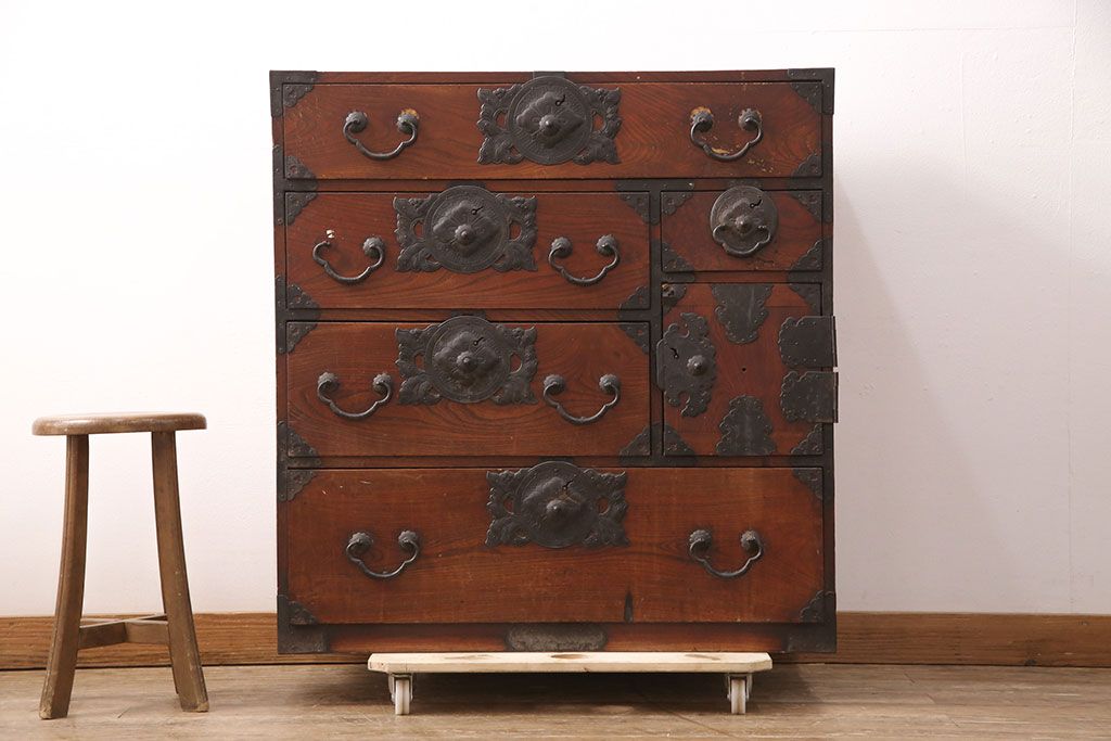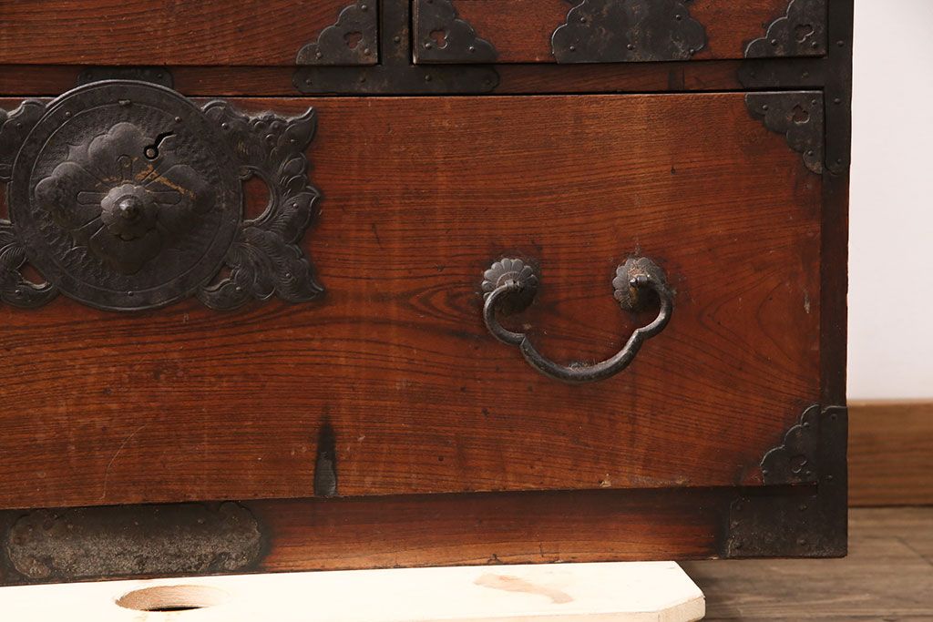 和箪笥 > 和製アンティーク 前面ケヤキ材 お部屋に取り入れやすい幅狭のサイズが魅力的な仙台箪笥(衣装箪笥、整理箪笥、時代箪笥、収納たんす、和タンス)(R-050963)