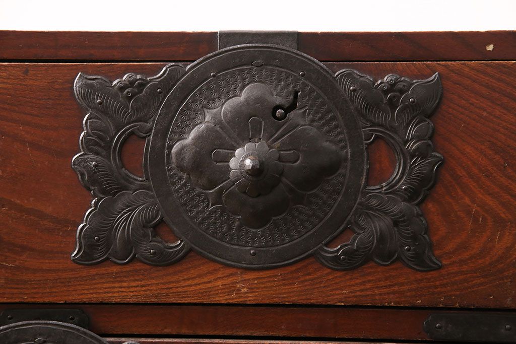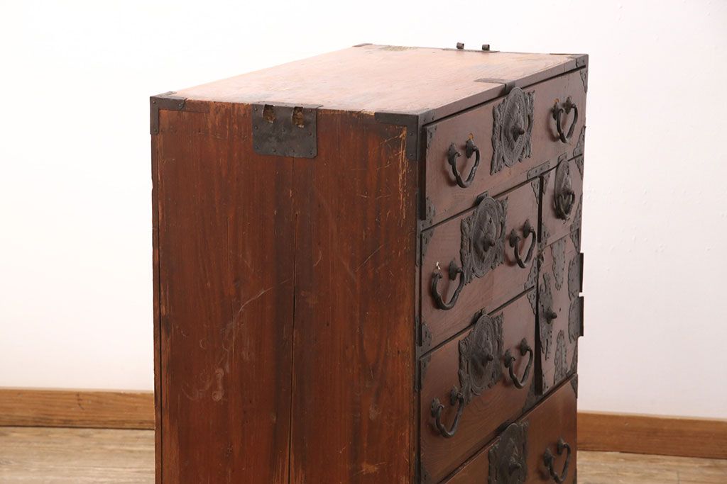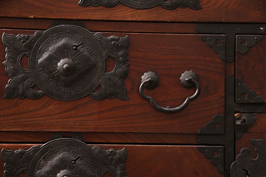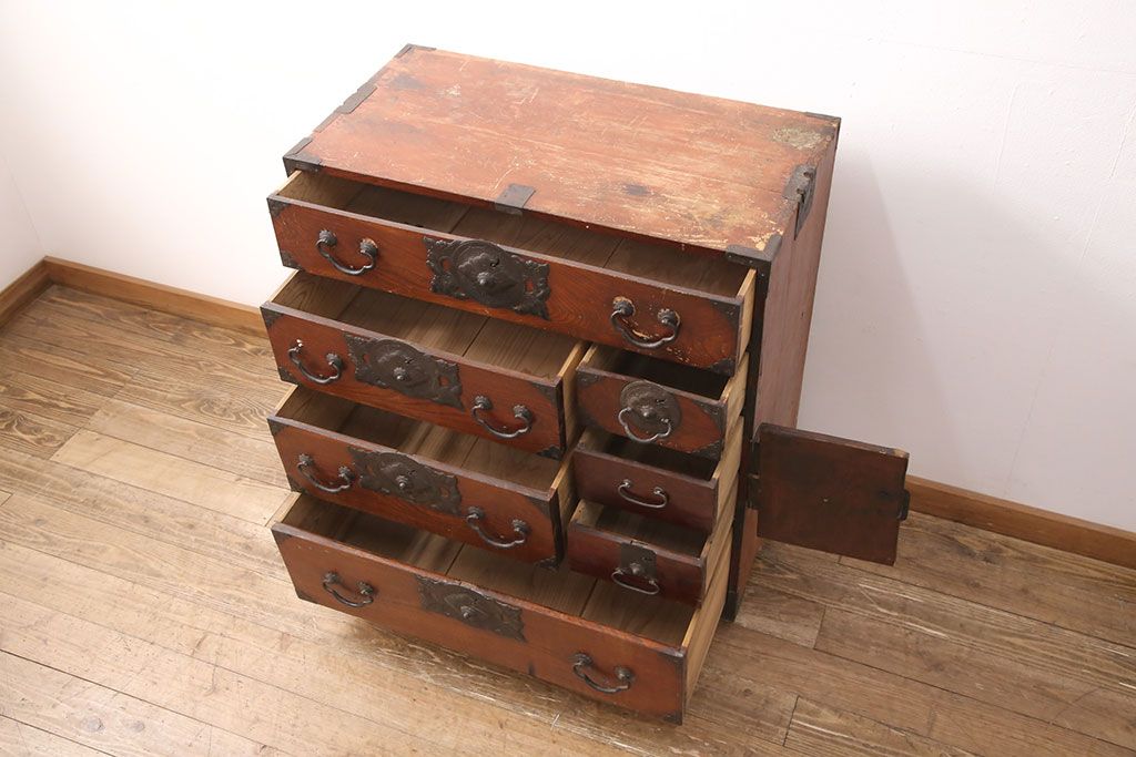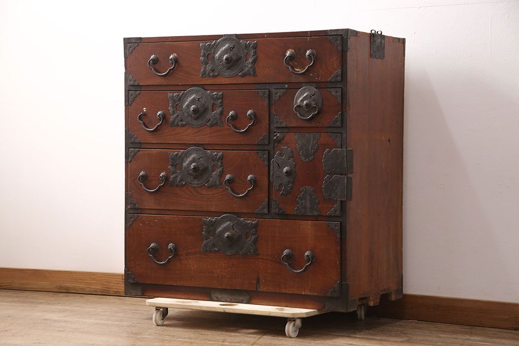 和箪笥 > 和製アンティーク 前面ケヤキ材 お部屋に取り入れやすい幅狭のサイズが魅力的な仙台箪笥(衣装箪笥、整理箪笥、時代箪笥、収納たんす、和タンス)(R-050963)