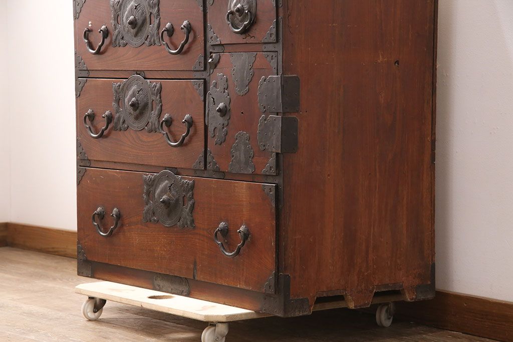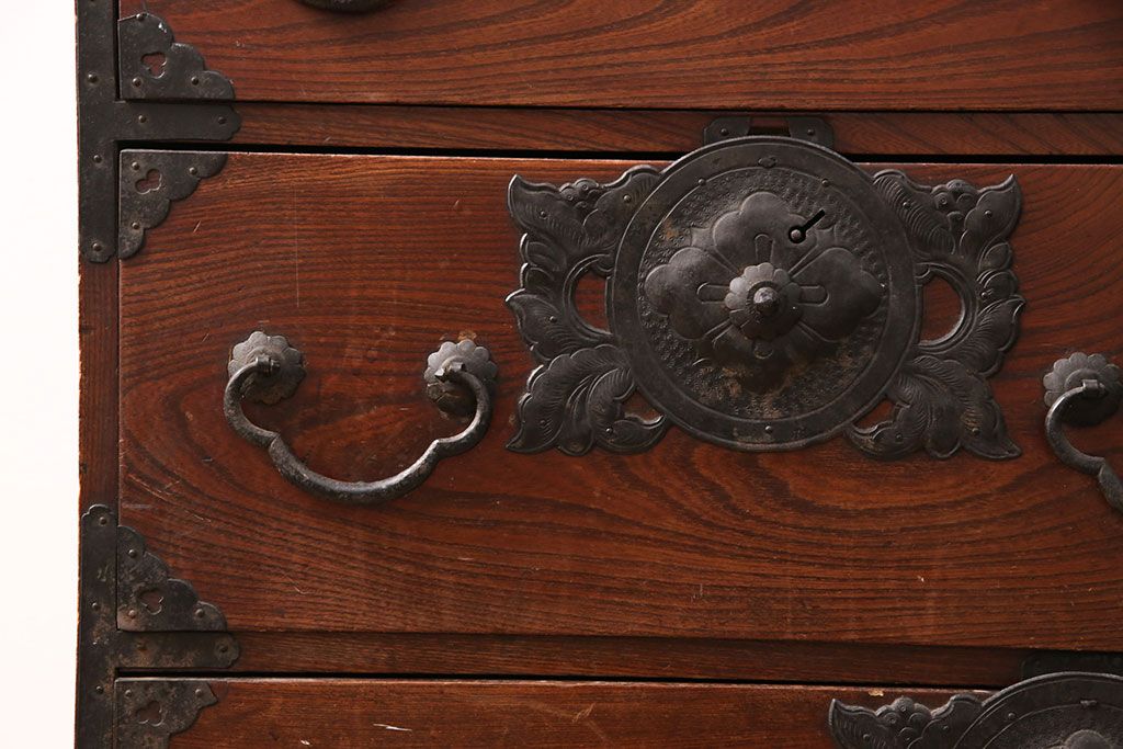 和箪笥> 衣装箪笥 > 和製アンティーク 前面ケヤキ材 お部屋に取り入れやすい幅狭のサイズが魅力的な仙台箪笥(衣装箪笥、整理箪笥、時代箪笥、収納たんす、和タンス)(R-050963)