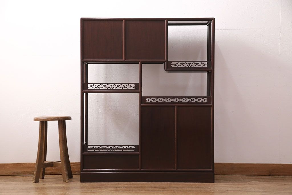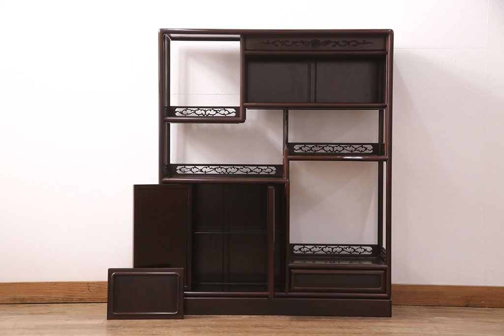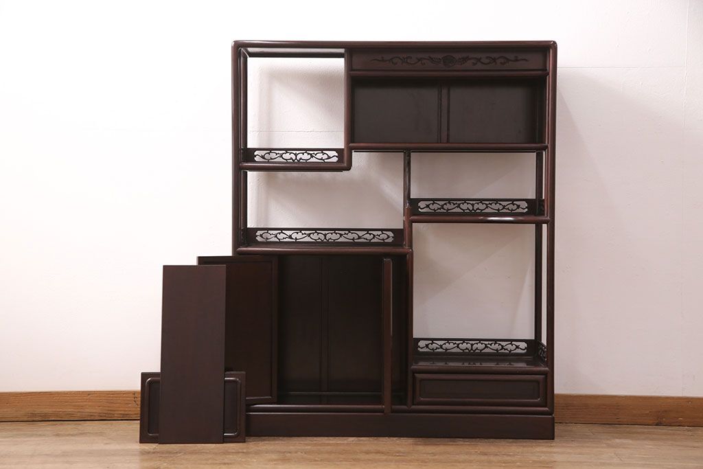 和箪笥 > 中古 美品 国産指物家具 漆塗りが美しい総シタン材製の飾り棚(茶棚、収納棚、戸棚)(R-051275)