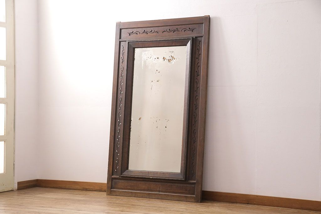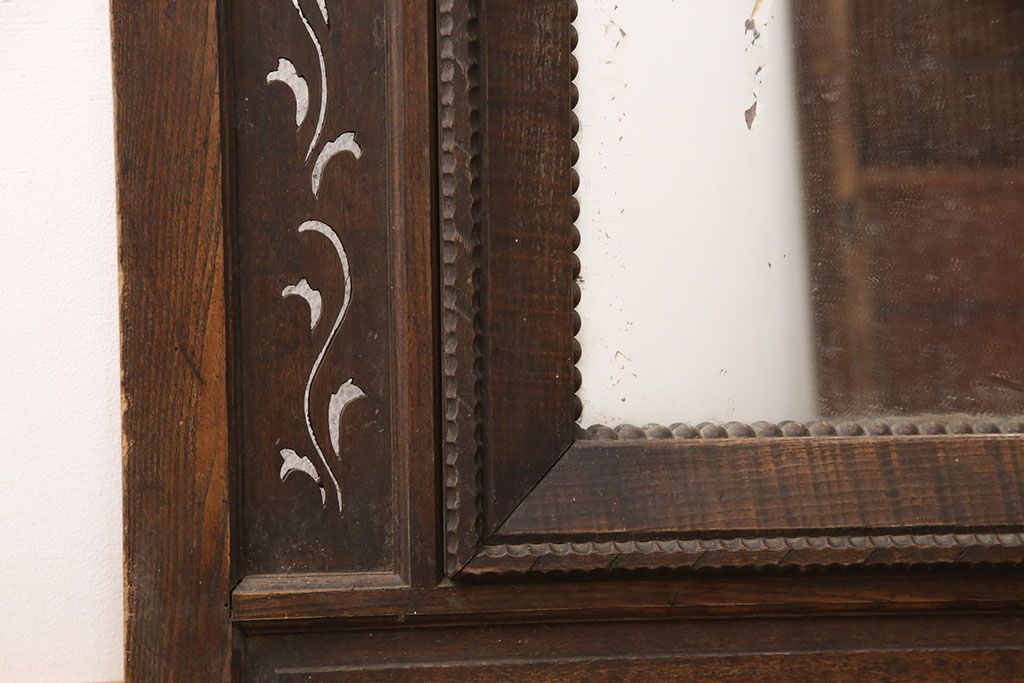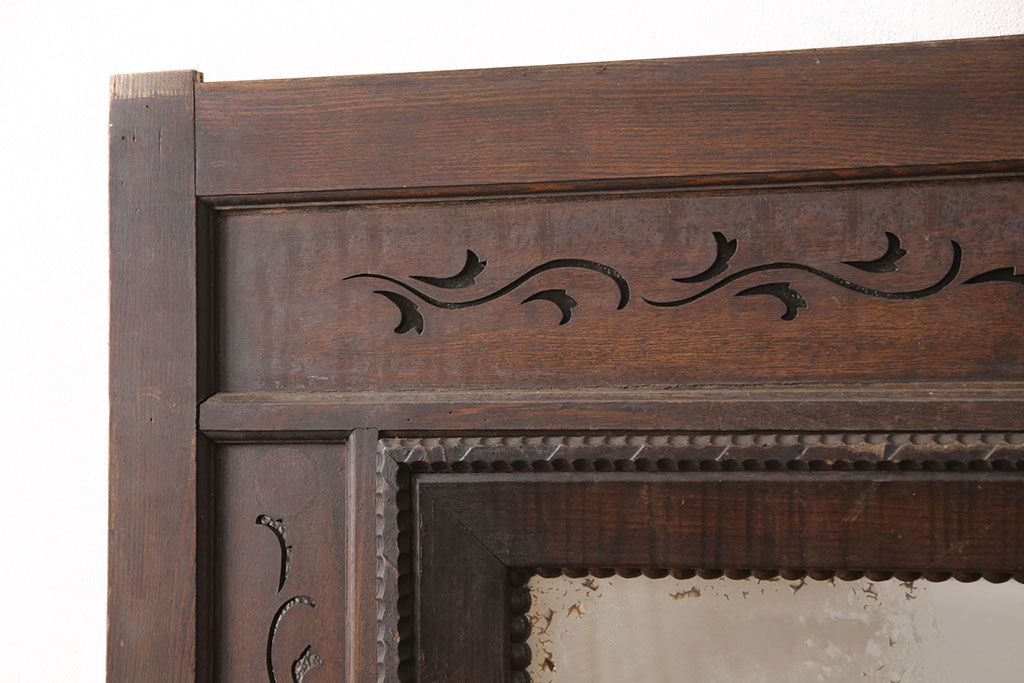 鏡 > アンティーク建具 大正昭和初期 ナラ材 激レア!大正ロマンの雰囲気あふれる、透かし彫りがおしゃれな鏡付き引き戸1枚(建具、姿見、鏡、ミラー)(R-051154)