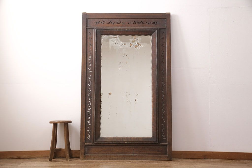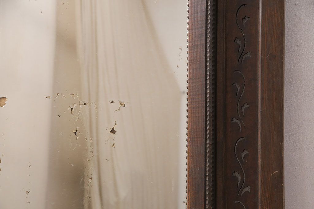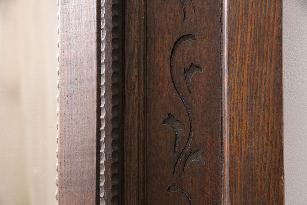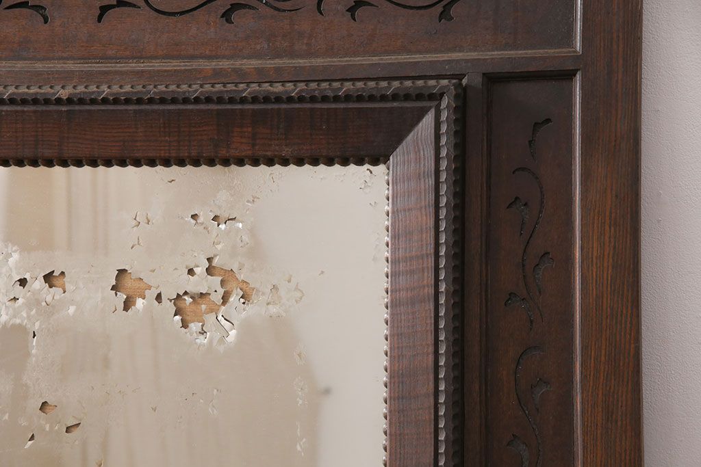 鏡> 姿見 > アンティーク建具 大正昭和初期 ナラ材 激レア!大正ロマンの雰囲気あふれる、透かし彫りがおしゃれな鏡付き引き戸1枚(建具、姿見、鏡、ミラー)(R-051154)