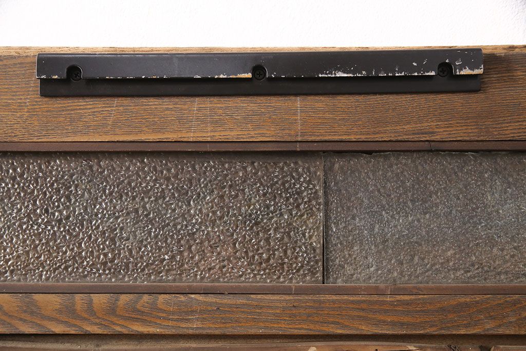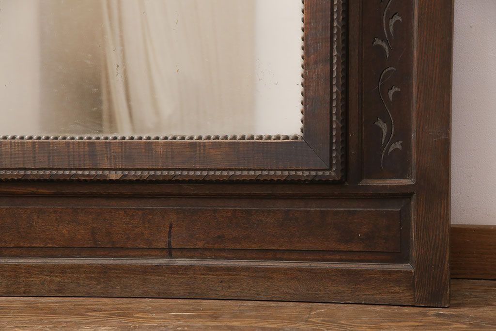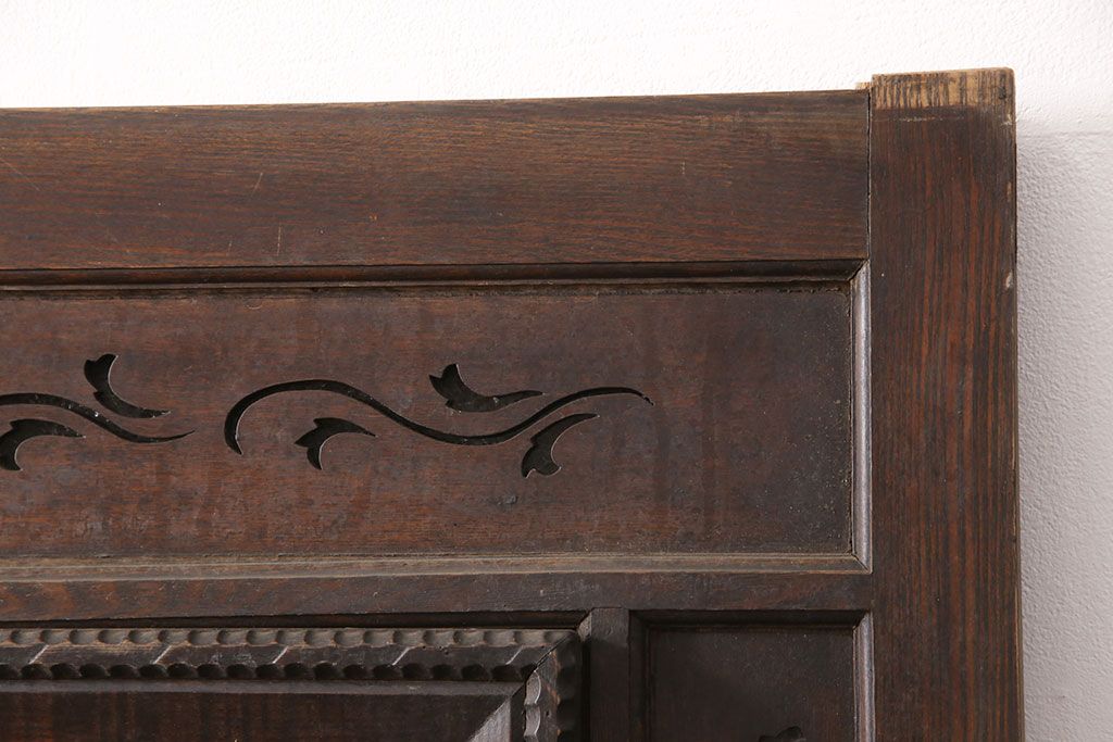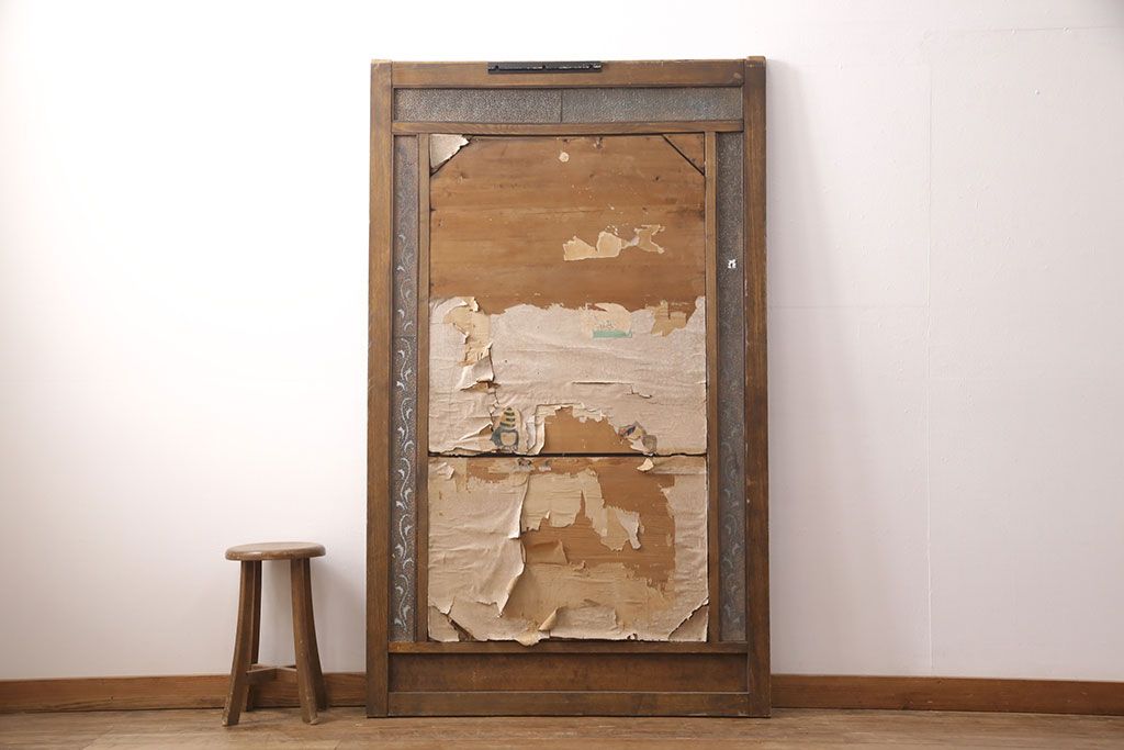 アンティーク建具 大正昭和初期 ナラ材 激レア!大正ロマンの雰囲気あふれる、透かし彫りがおしゃれな鏡付き引き戸1枚(建具、姿見、鏡、ミラー)(R-051154)