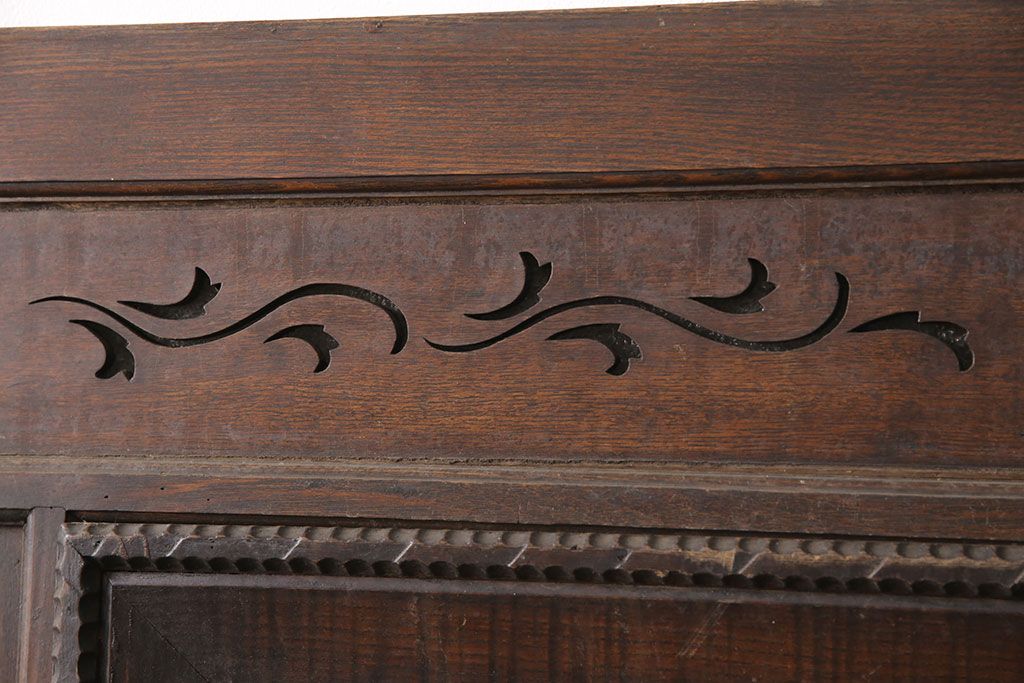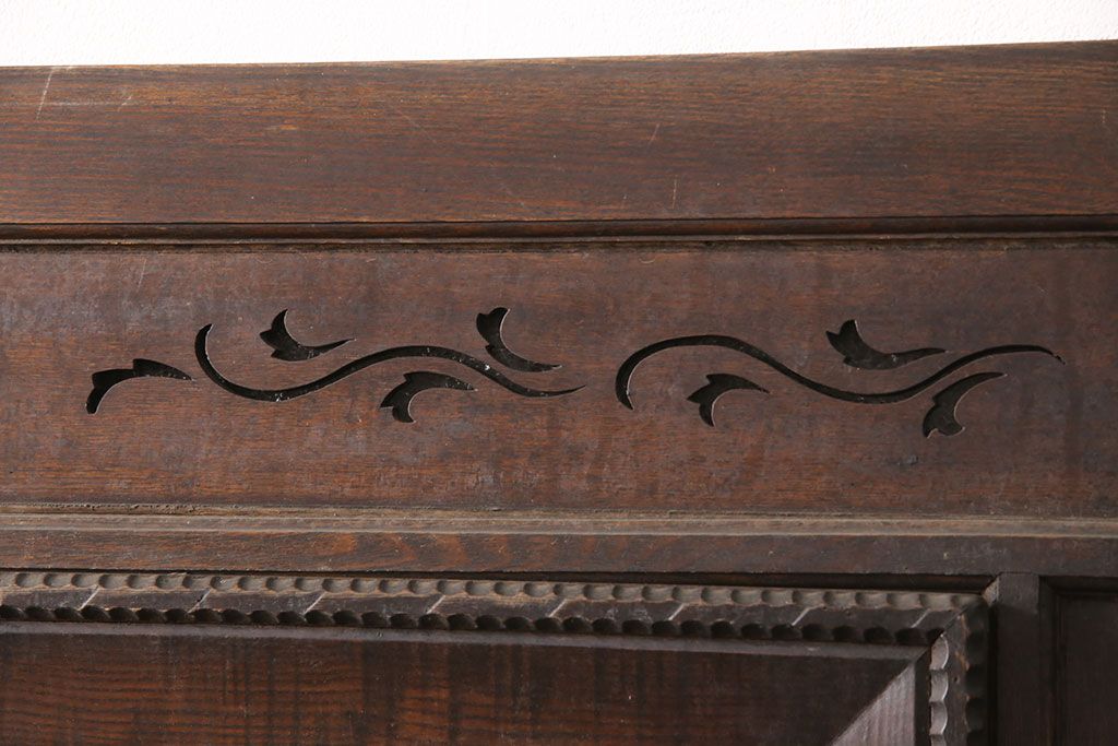 ドア・建具> 引き戸 > アンティーク建具 大正昭和初期 ナラ材 激レア!大正ロマンの雰囲気あふれる、透かし彫りがおしゃれな鏡付き引き戸1枚(建具、姿見、鏡、ミラー)(R-051154)
