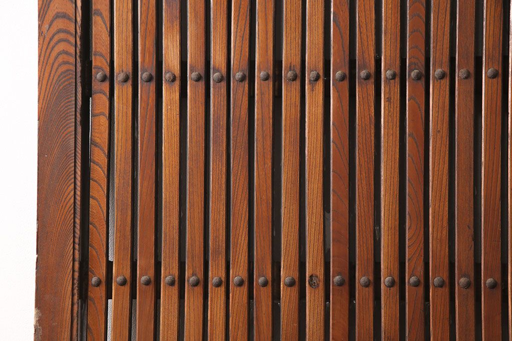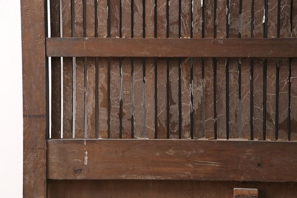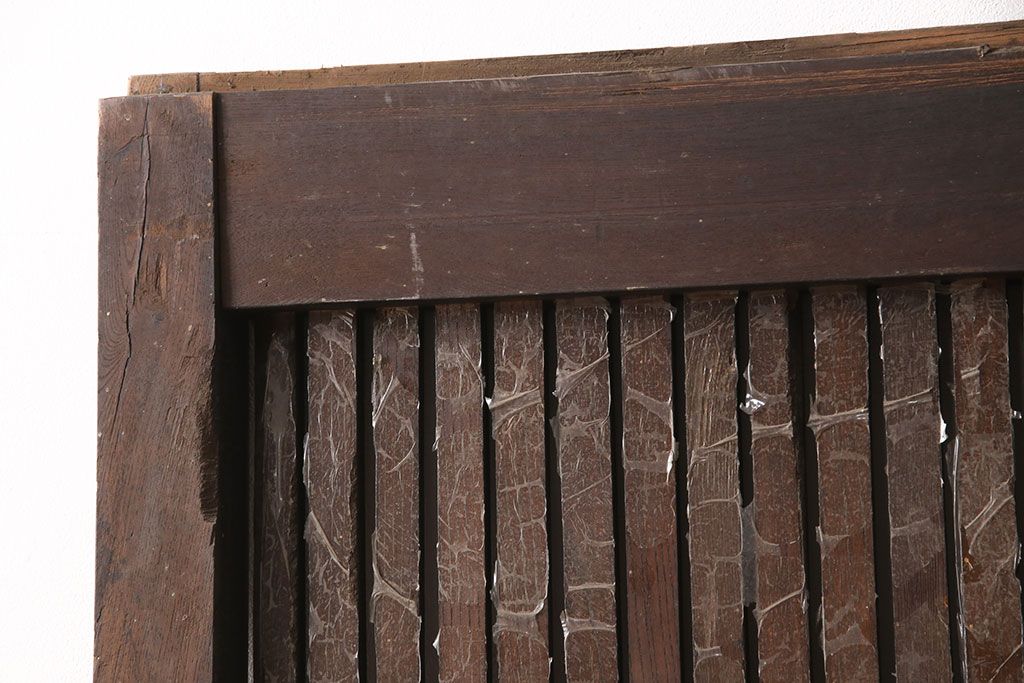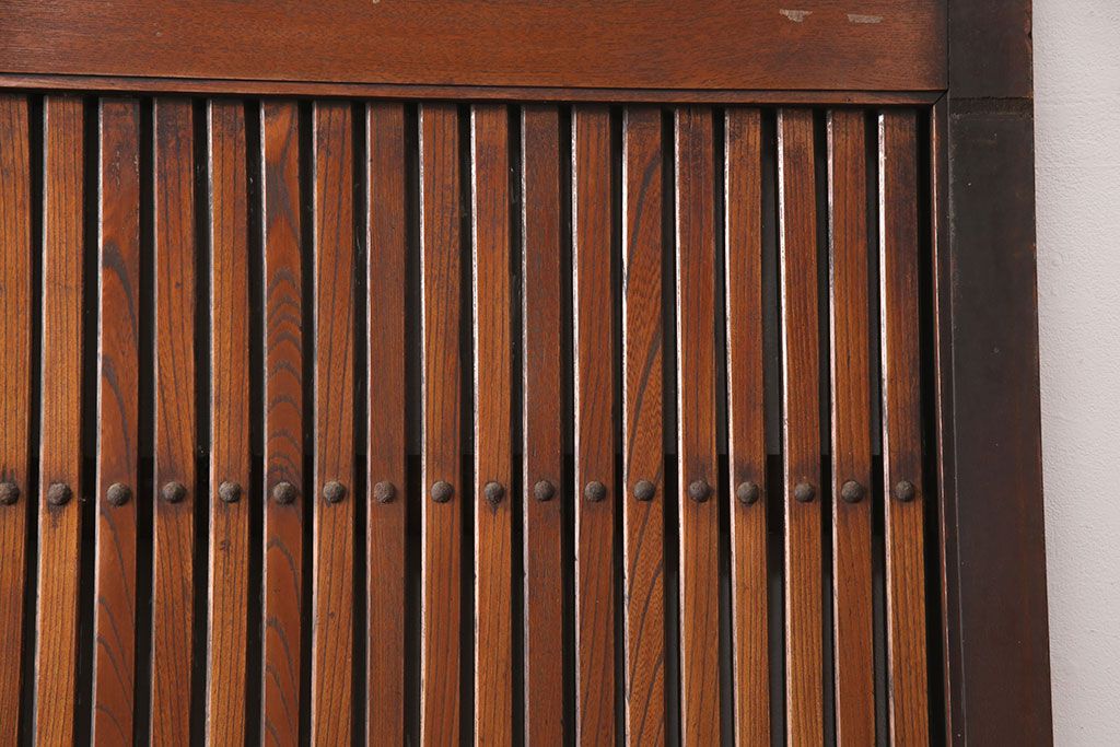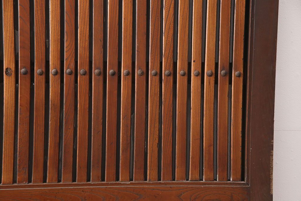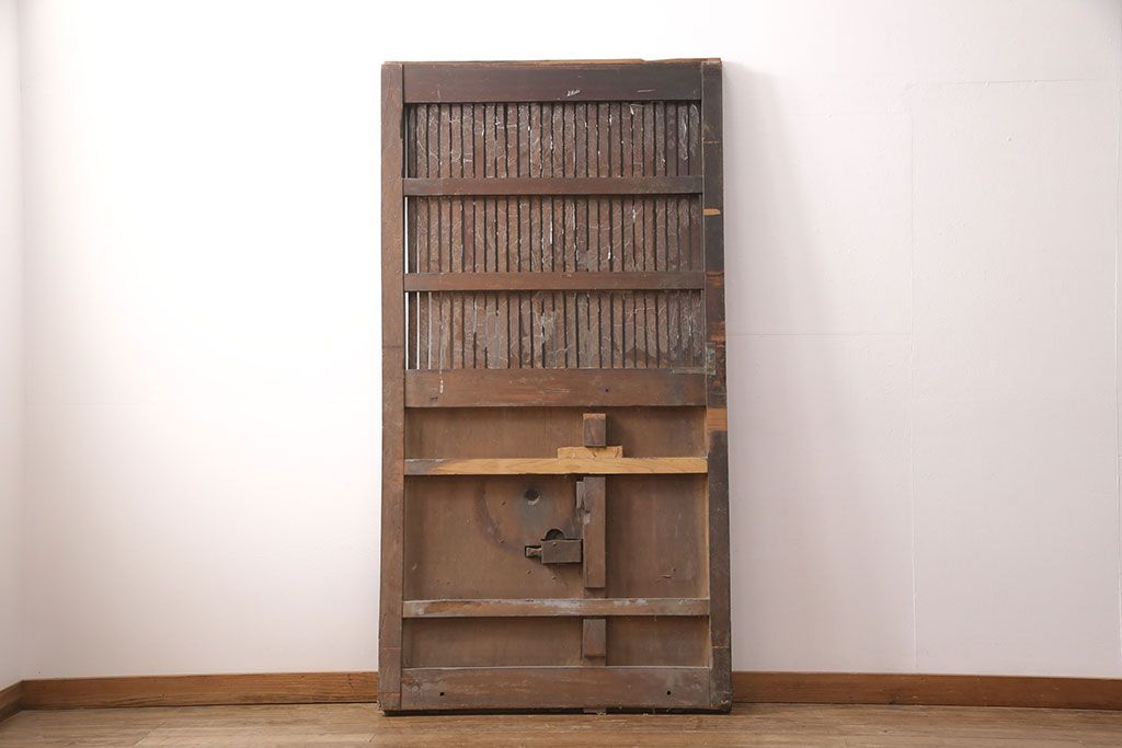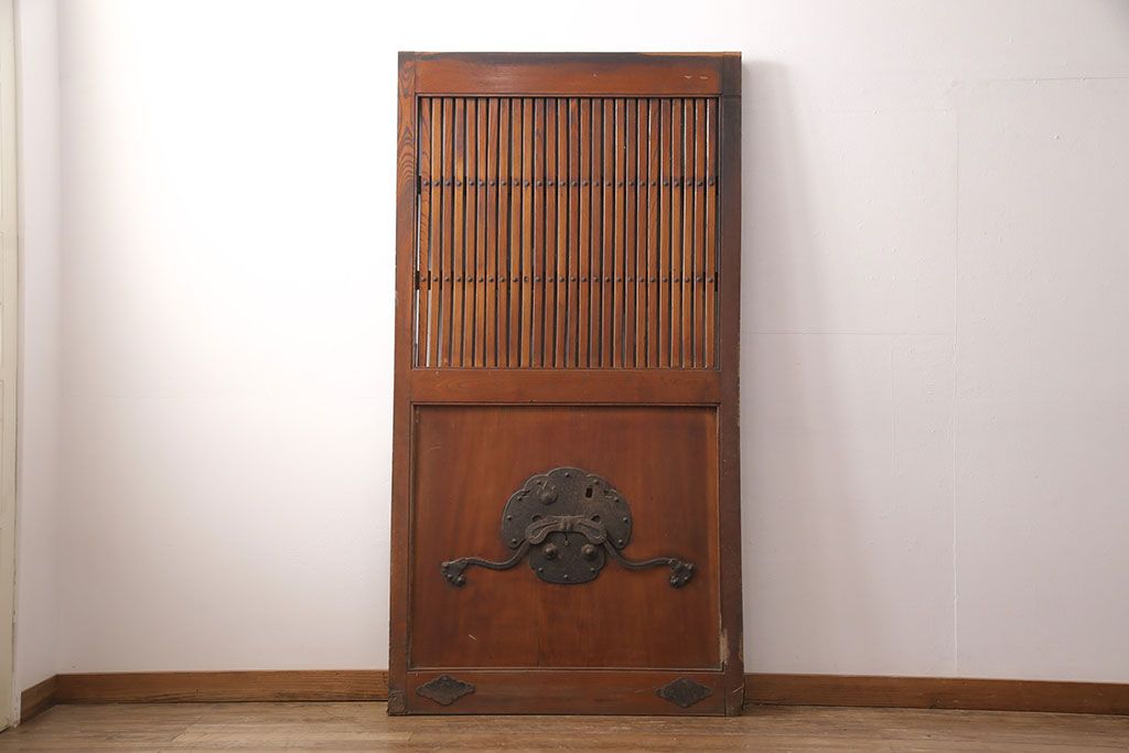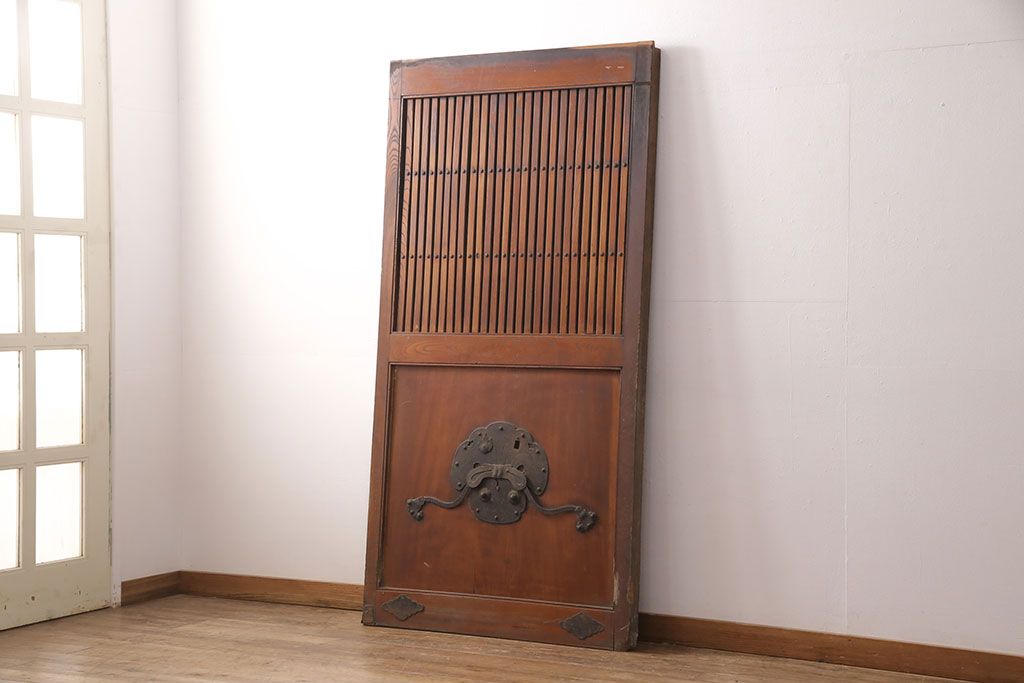 ラフジュ工房> ドア・建具> 玄関ドア・玄関戸 > アンティーク建具 総ケヤキ材 細身のサイズが嬉しい!巾着金具がアクセントの格子蔵戸1枚(格子戸、建具、玄関戸、引き戸)(R-051156)