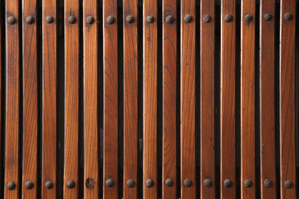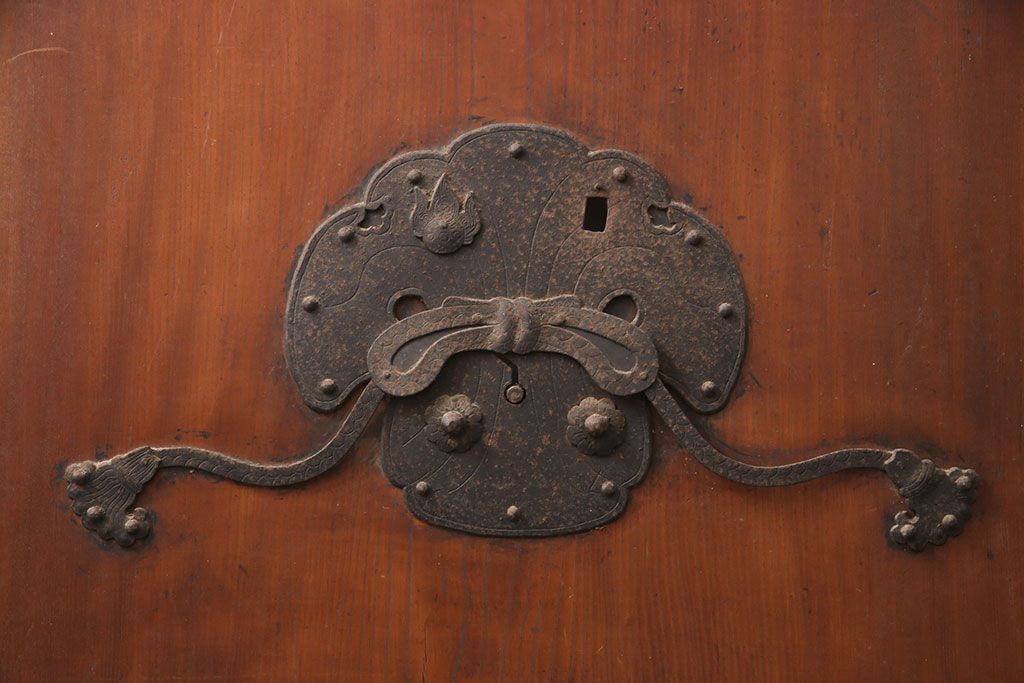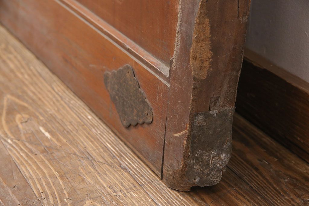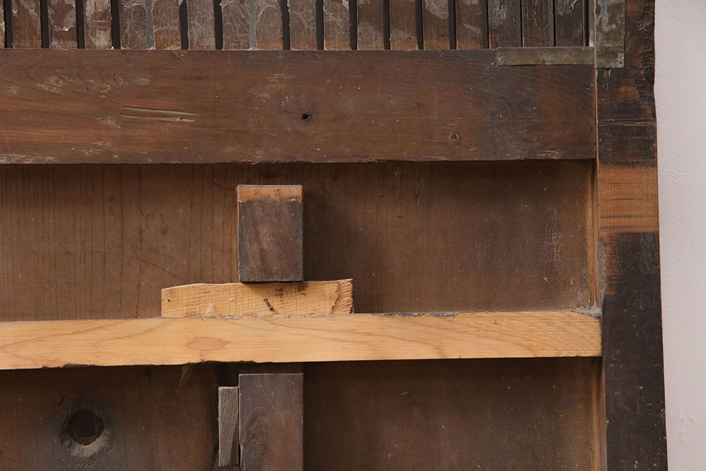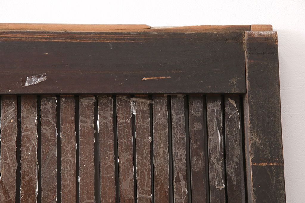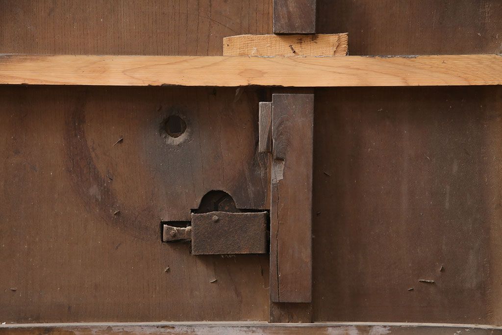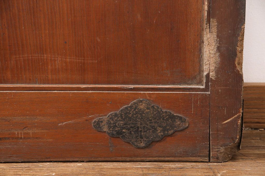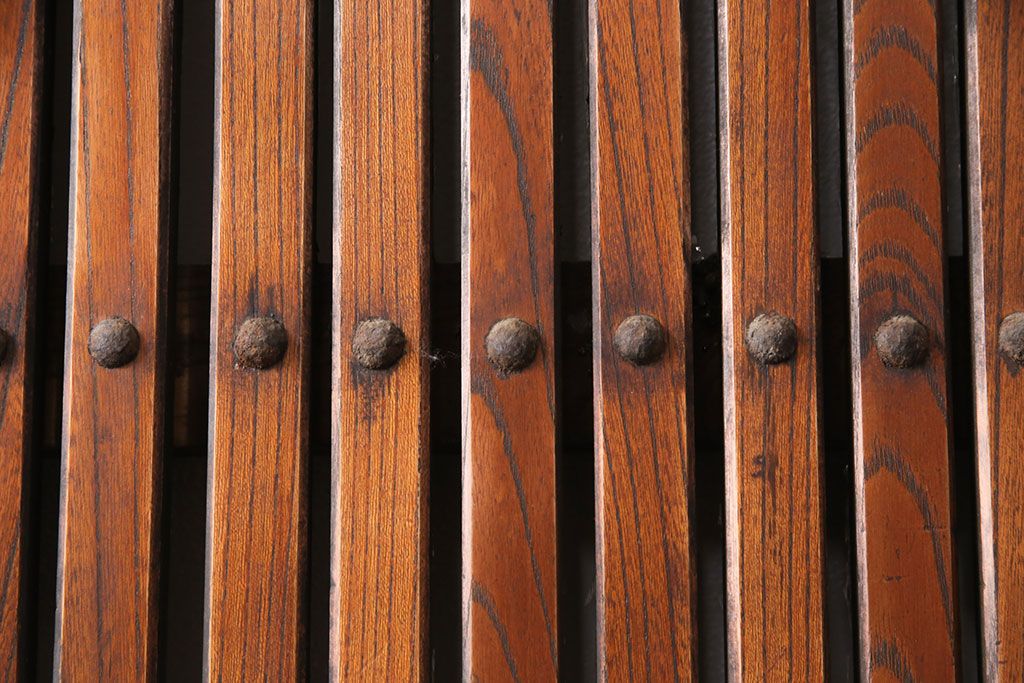 ラフジュ工房> ドア・建具> 玄関ドア・玄関戸 > アンティーク建具 総ケヤキ材 細身のサイズが嬉しい!巾着金具がアクセントの格子蔵戸1枚(格子戸、建具、玄関戸、引き戸)(R-051156)