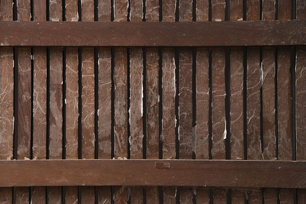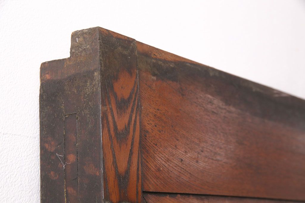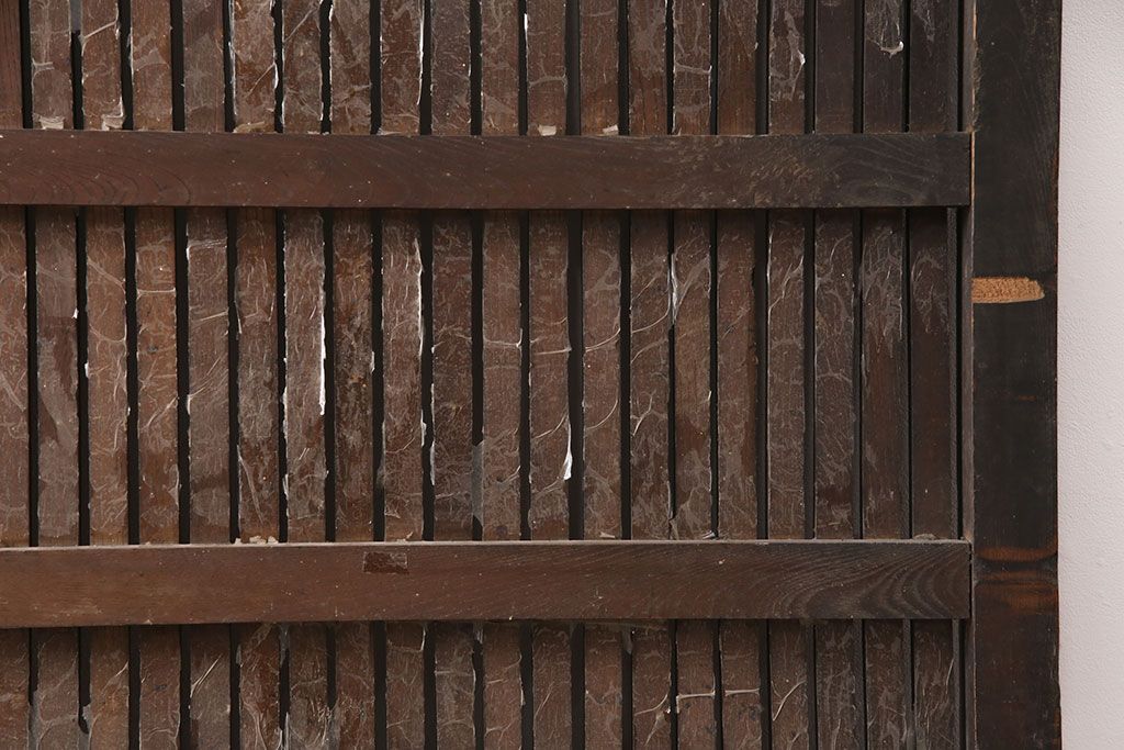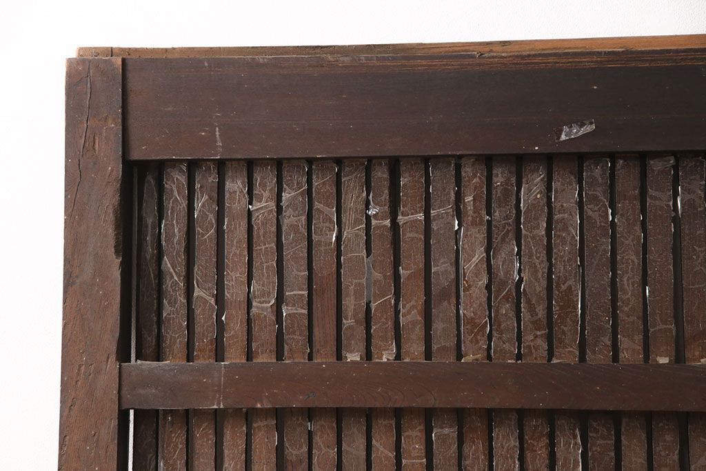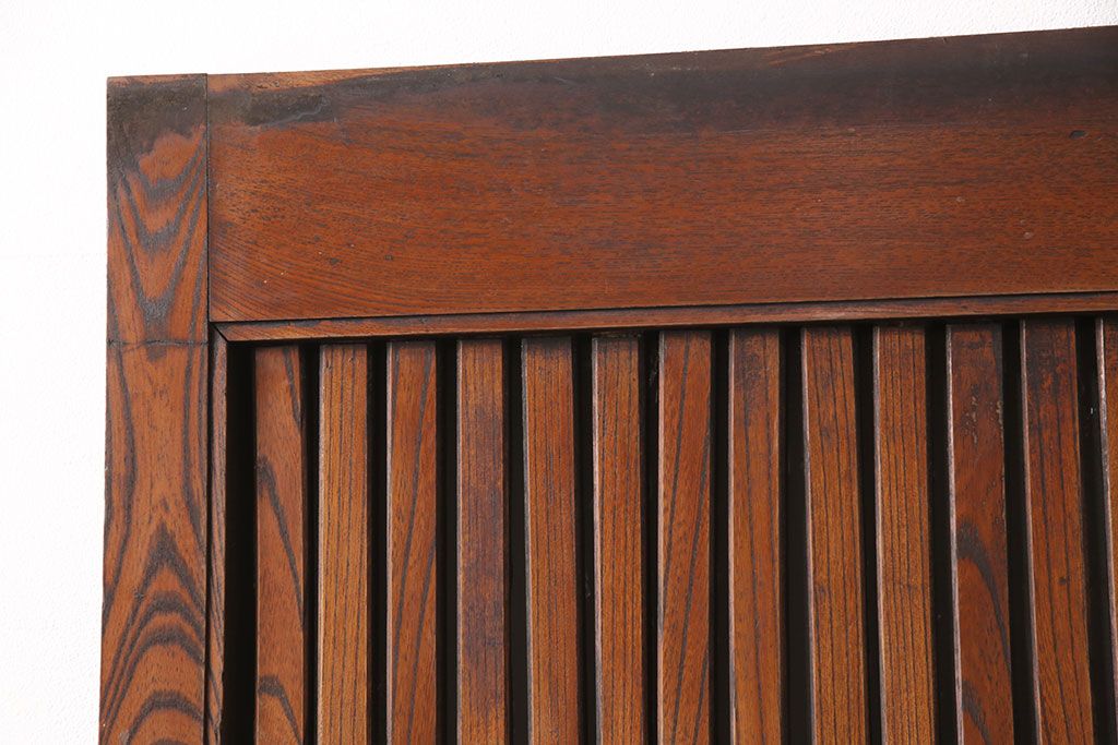ラフジュ工房> ドア・建具> 引き戸 > アンティーク建具 総ケヤキ材 細身のサイズが嬉しい!巾着金具がアクセントの格子蔵戸1枚(格子戸、建具、玄関戸、引き戸)(R-051156)