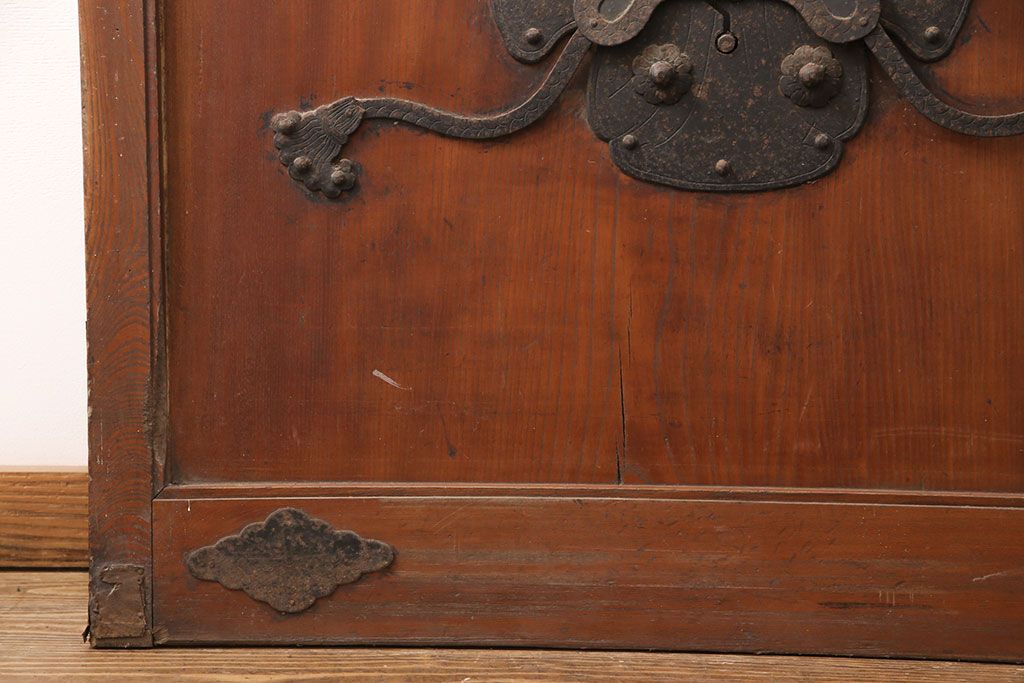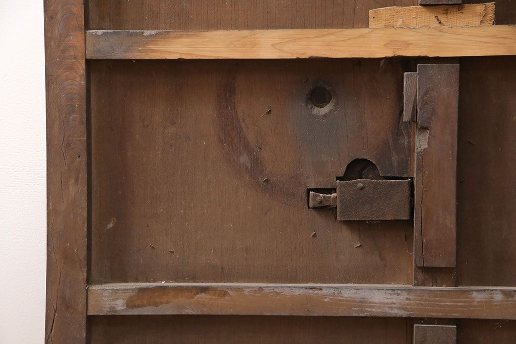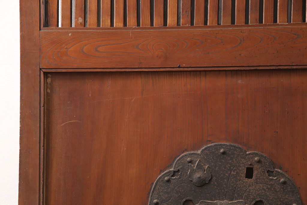 ラフジュ工房> ドア・建具> 蔵戸 > アンティーク建具 総ケヤキ材 細身のサイズが嬉しい!巾着金具がアクセントの格子蔵戸1枚(格子戸、建具、玄関戸、引き戸)(R-051156)