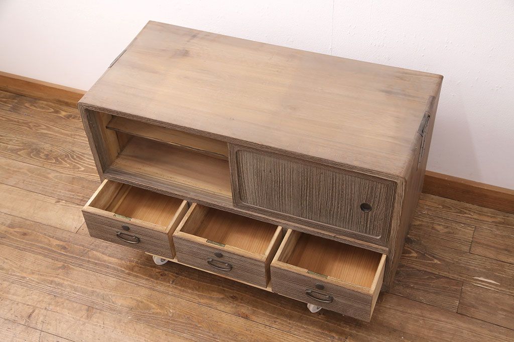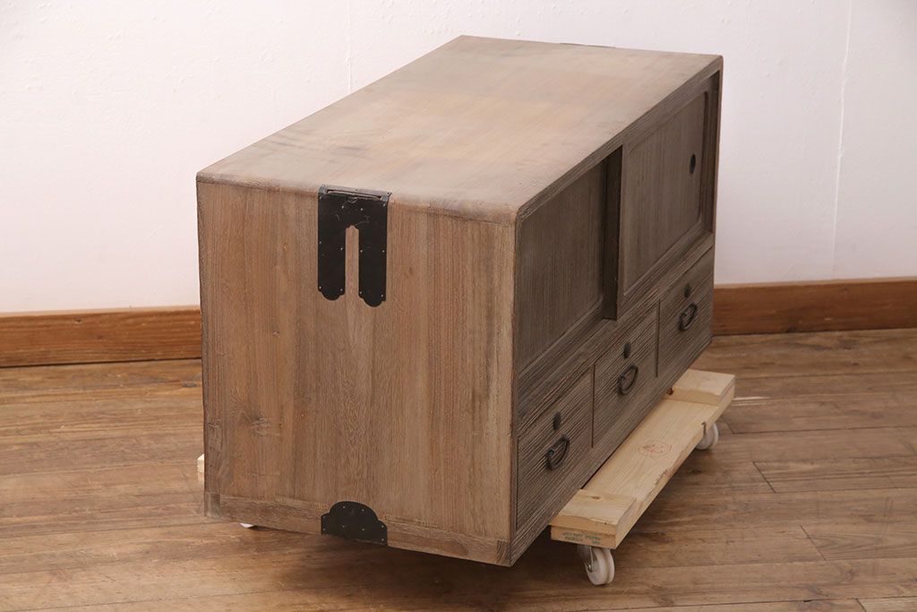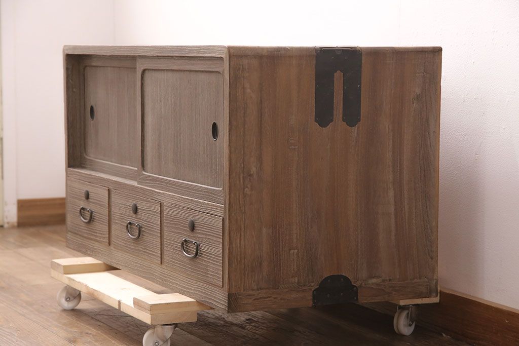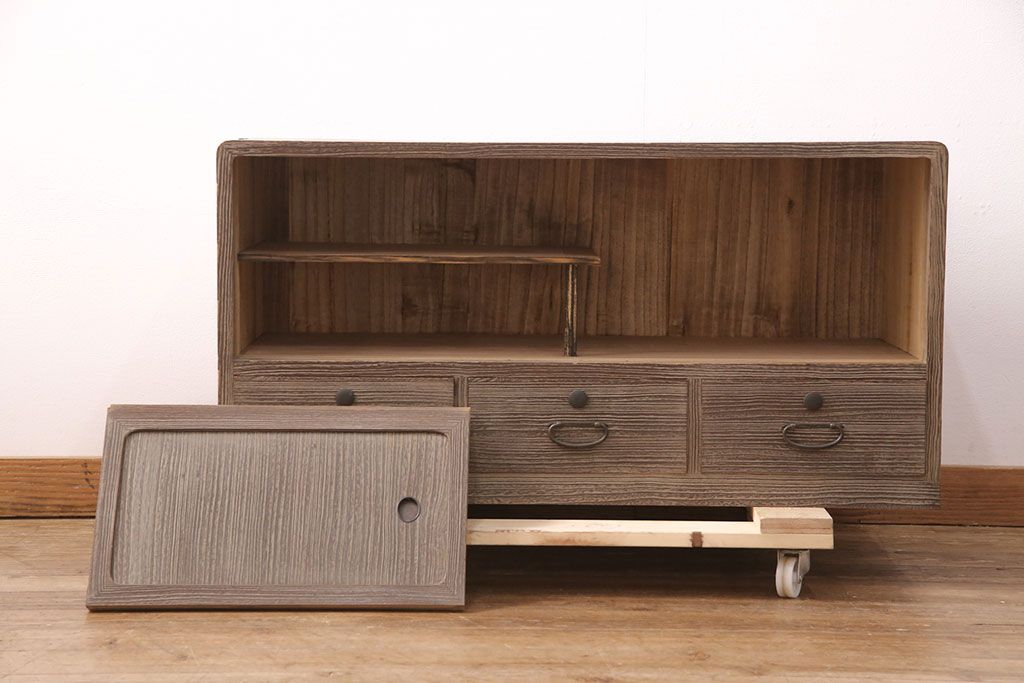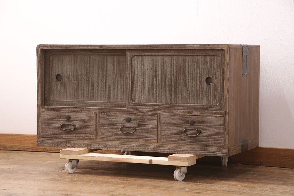 アンティーク家具 昭和中期 経年により味を増した渋い色合いが魅力の桐箪笥テレビ台(テレビボード、ローボード、リビングボード、収納棚)(R-051251)