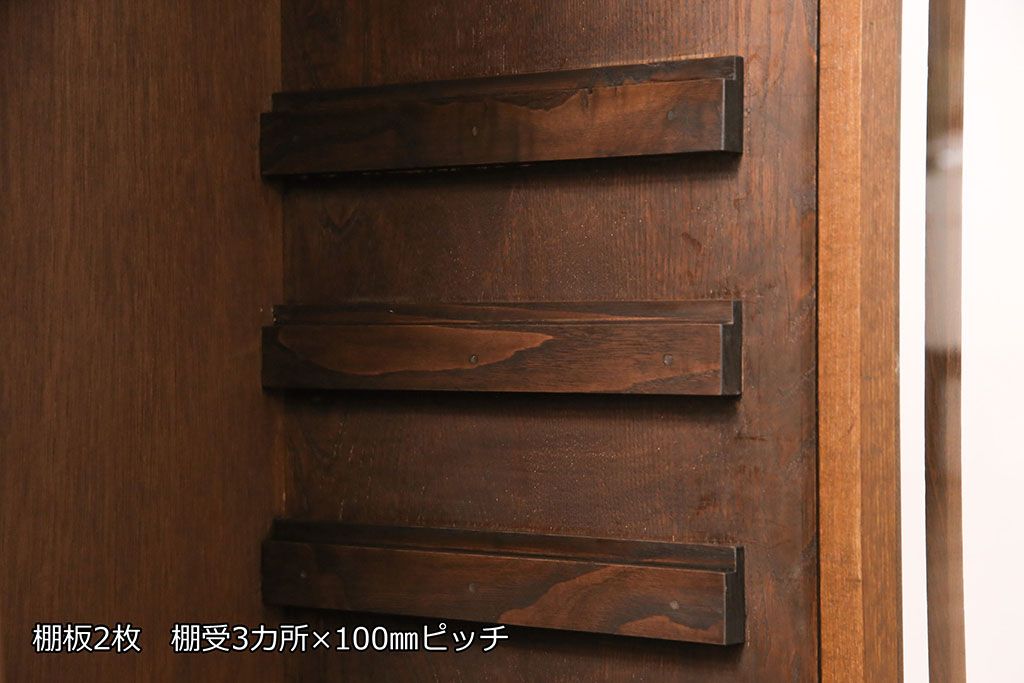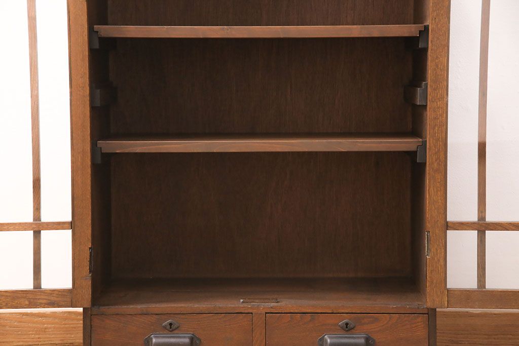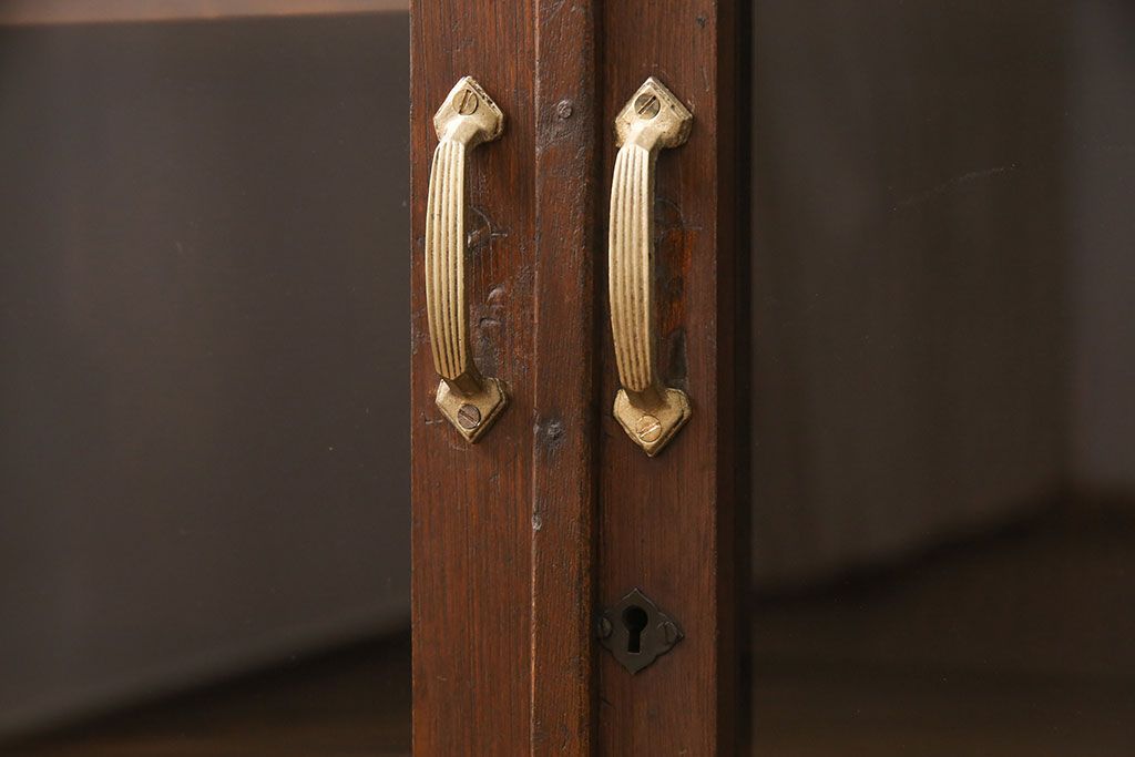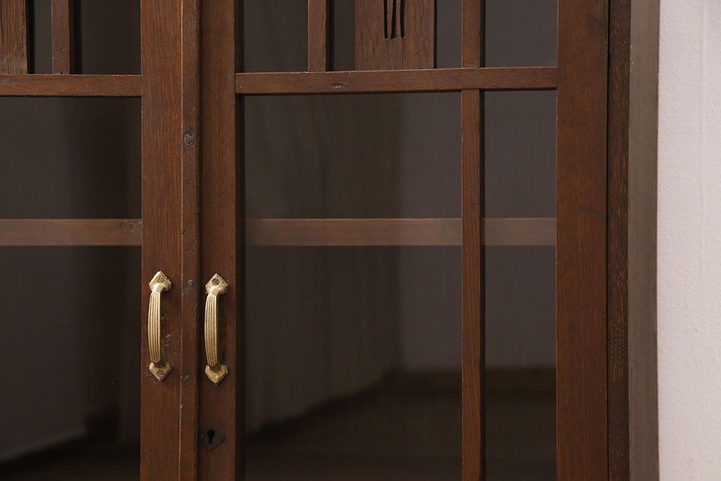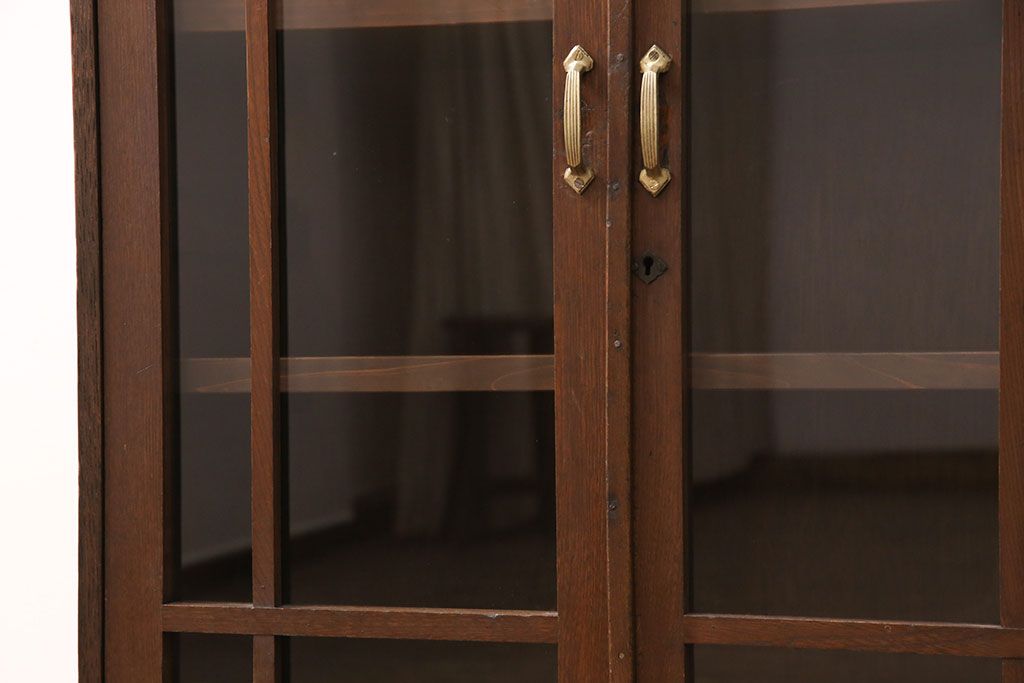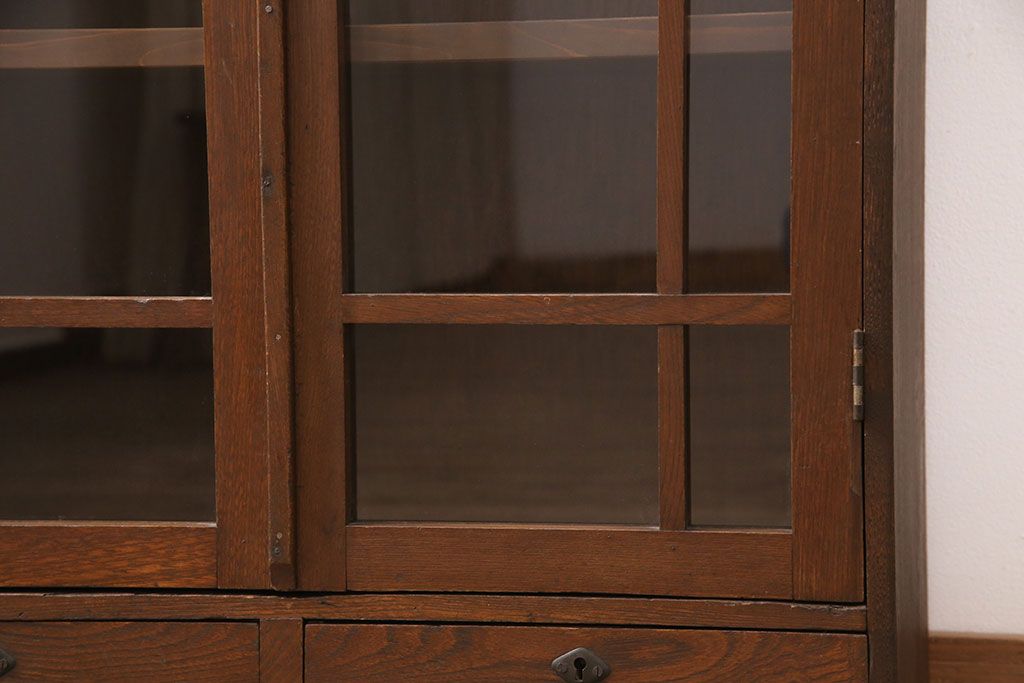 キャビネット・戸棚> 本箱 > 大正昭和初期の本棚をリペア&カスタム!取り外し可能な棚板を設置。建具にクリアガラスを組み入れ、1トーン落ち着いた色味に着色し仕上げ。(収納棚、ブックケース、飾り棚)
