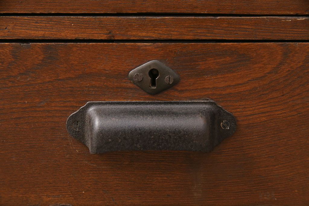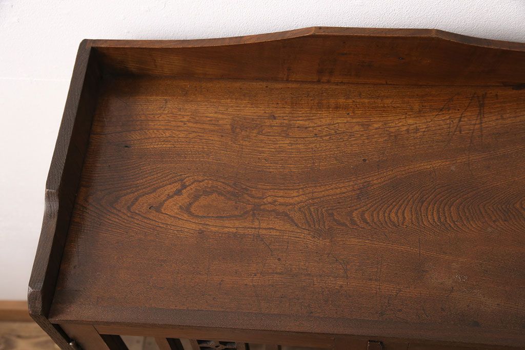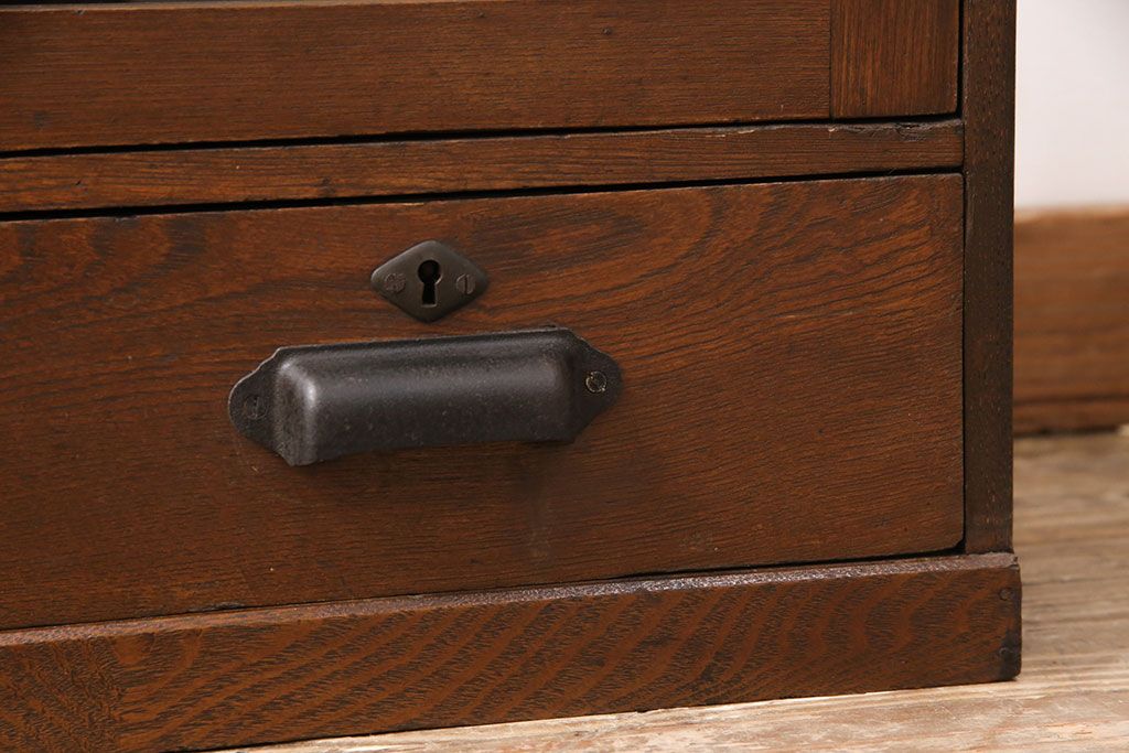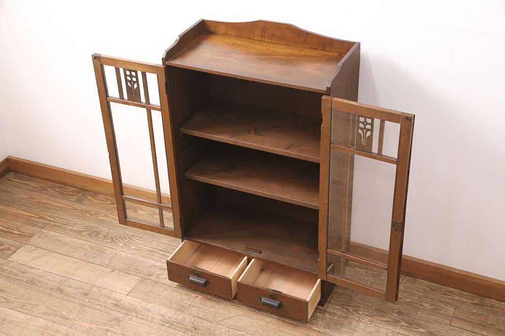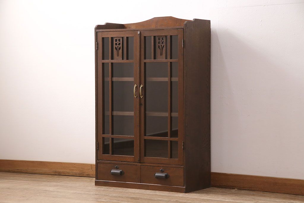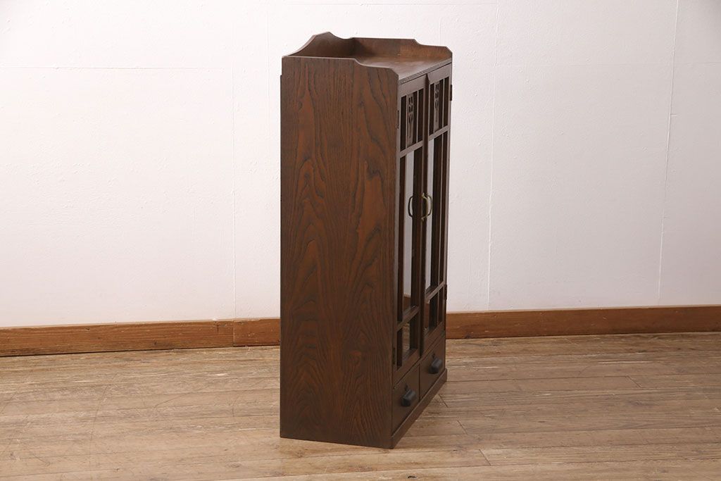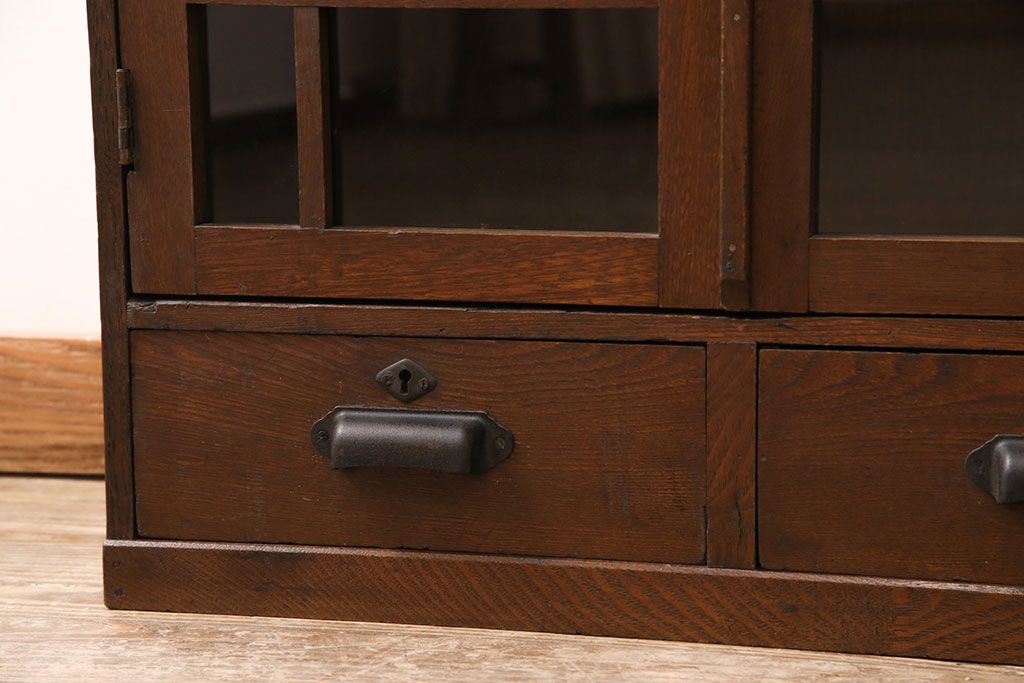 キャビネット・戸棚> 本箱 > 大正昭和初期の本棚をリペア&カスタム!取り外し可能な棚板を設置。建具にクリアガラスを組み入れ、1トーン落ち着いた色味に着色し仕上げ。(収納棚、ブックケース、飾り棚)