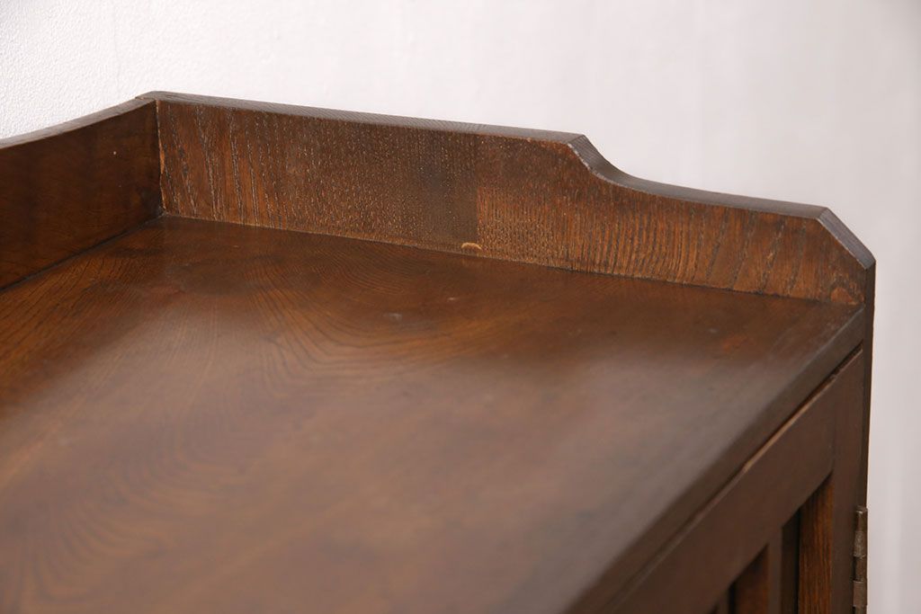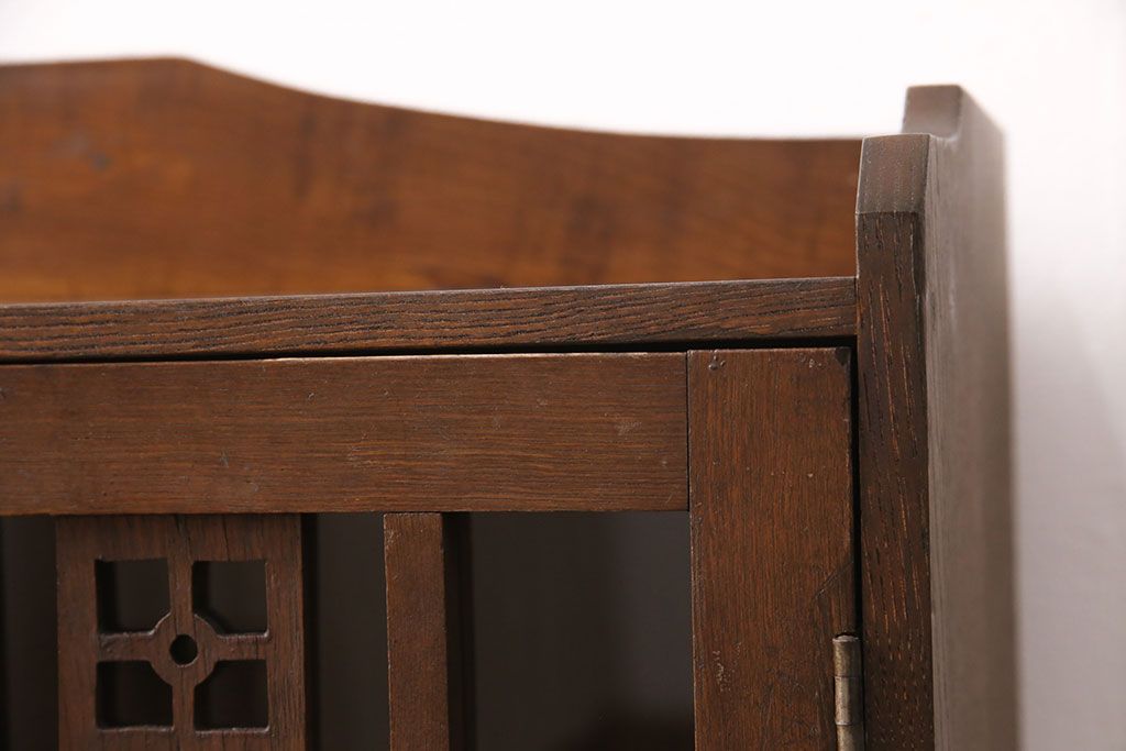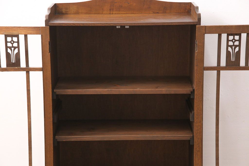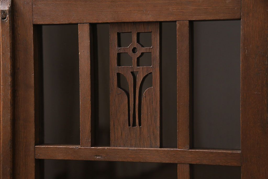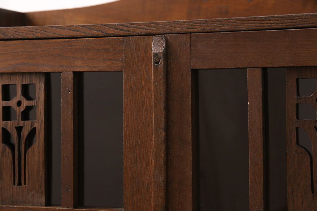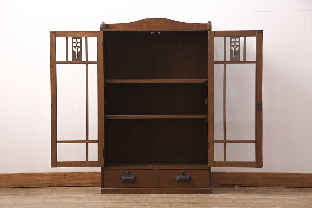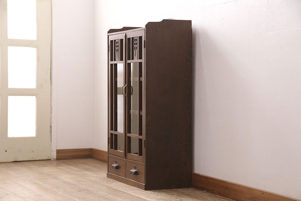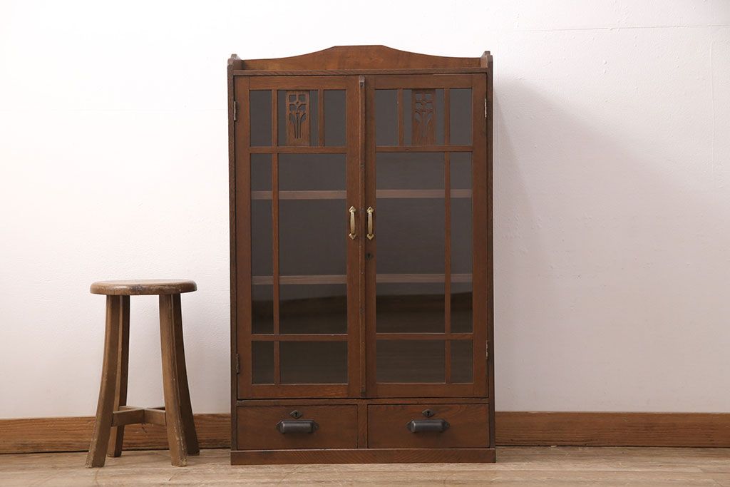 セミオーダー家具実績 > 大正昭和初期の本棚をリペア&カスタム!取り外し可能な棚板を設置。建具にクリアガラスを組み入れ、1トーン落ち着いた色味に着色し仕上げ。(収納棚、ブックケース、飾り棚)