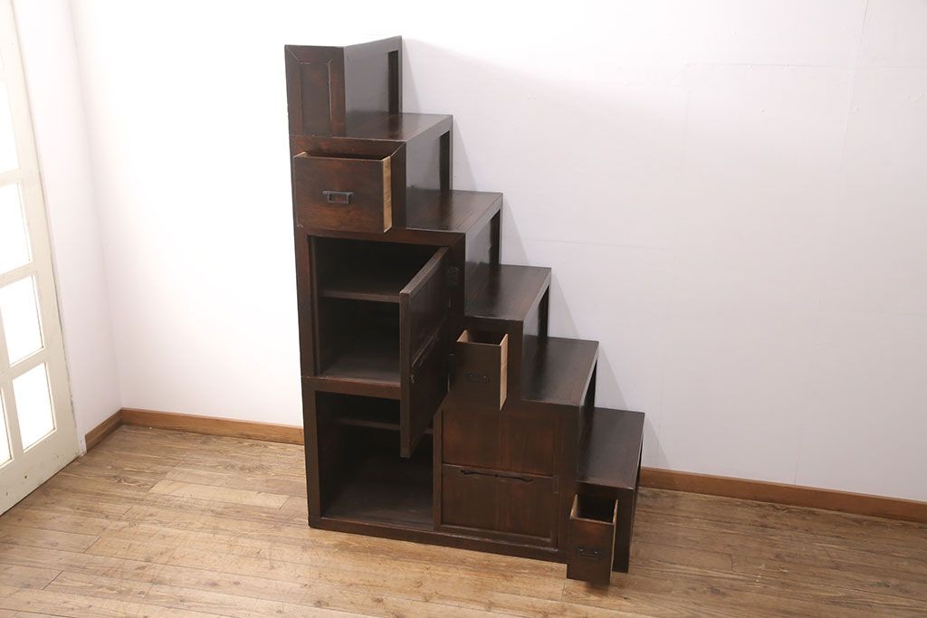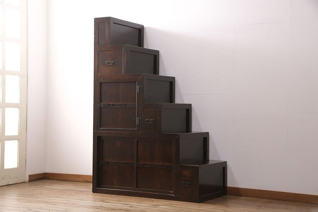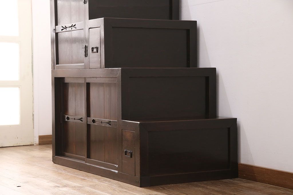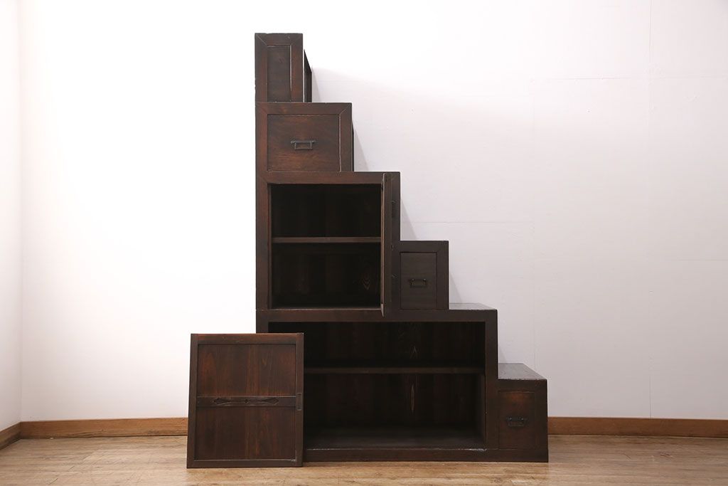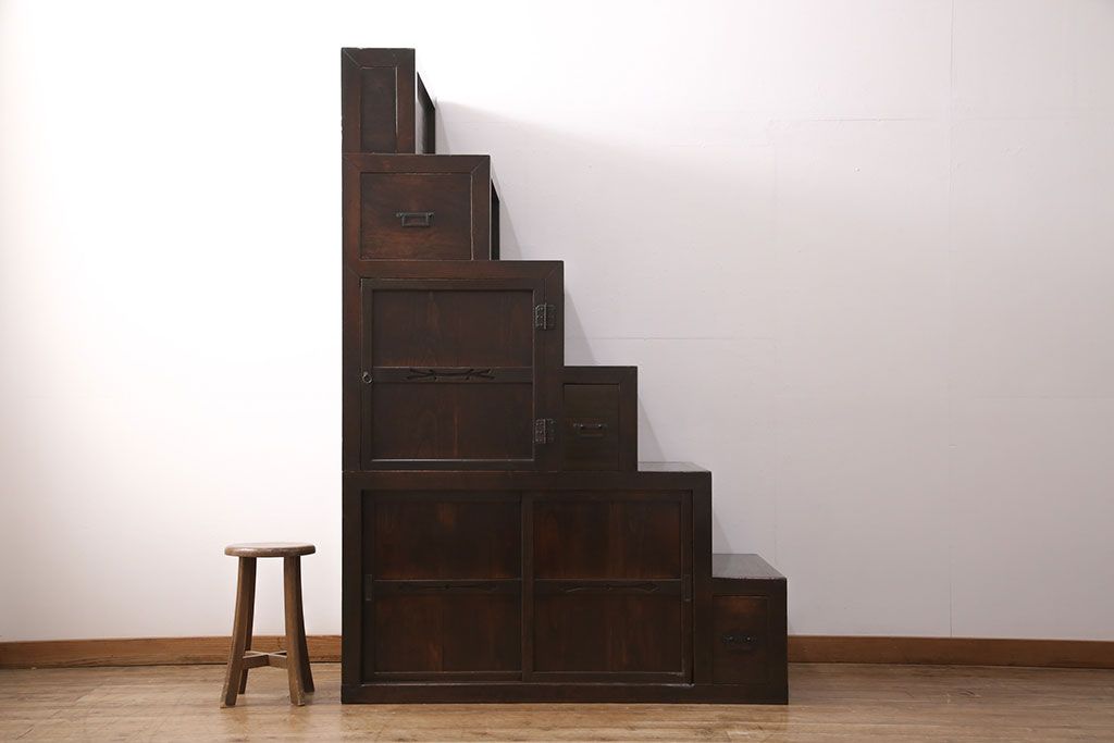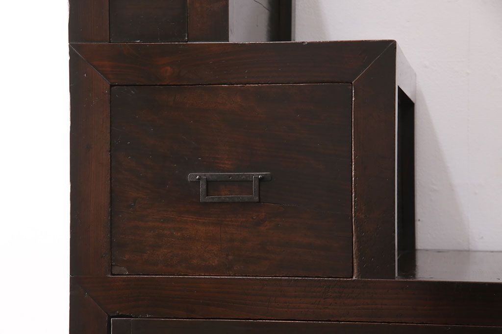 和箪笥> 階段箪笥 > 明治大正期の階段箪笥の見た目を変えずに綺麗にリペア!欠損した金具、棚板、引き出しを取り付け。(時代箪笥、収納棚)