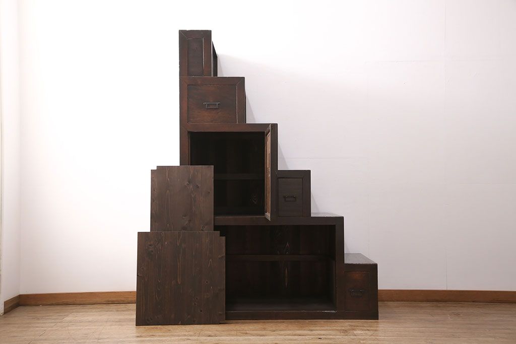 和箪笥 > 明治大正期の階段箪笥の見た目を変えずに綺麗にリペア!欠損した金具、棚板、引き出しを取り付け。(時代箪笥、収納棚)
