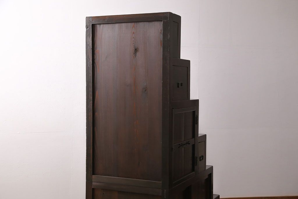 明治大正期の階段箪笥の見た目を変えずに綺麗にリペア!欠損した金具、棚板、引き出しを取り付け。(時代箪笥、収納棚)