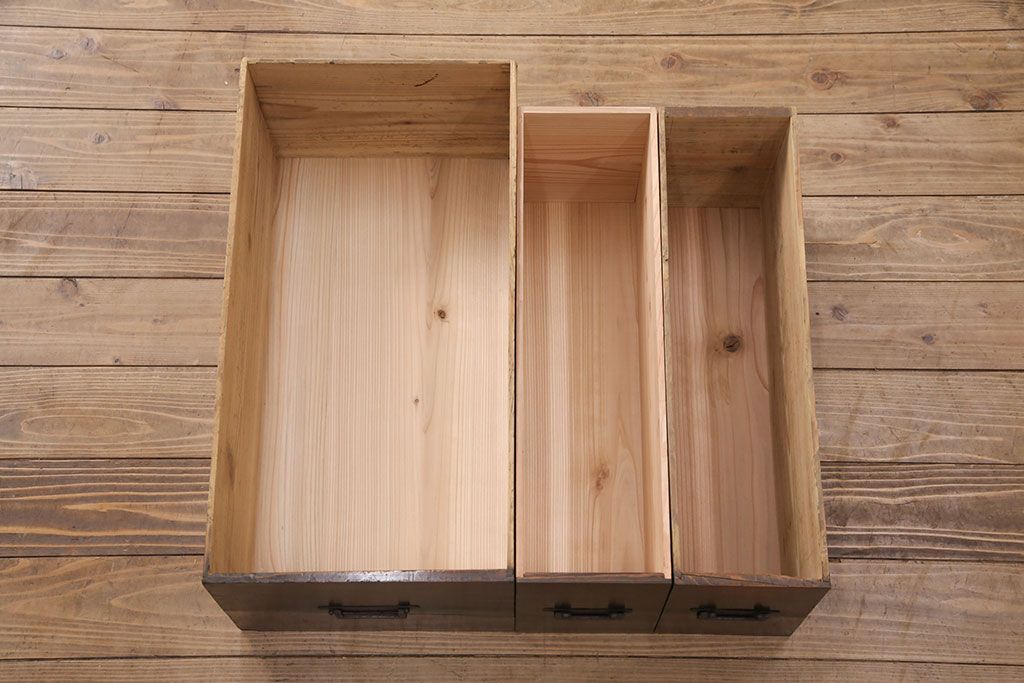 セミオーダー家具実績 > 明治大正期の階段箪笥の見た目を変えずに綺麗にリペア!欠損した金具、棚板、引き出しを取り付け。(時代箪笥、収納棚)