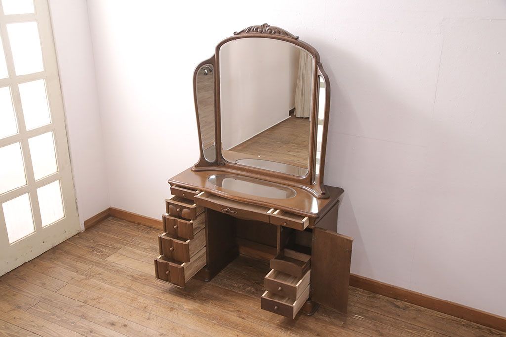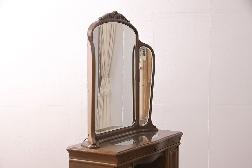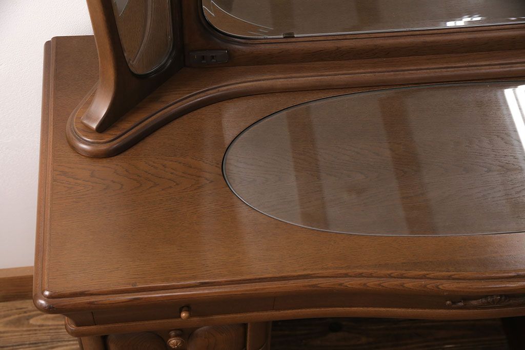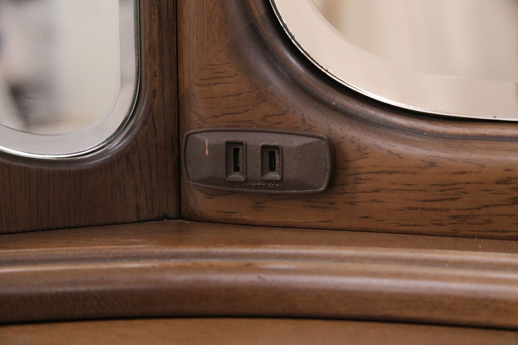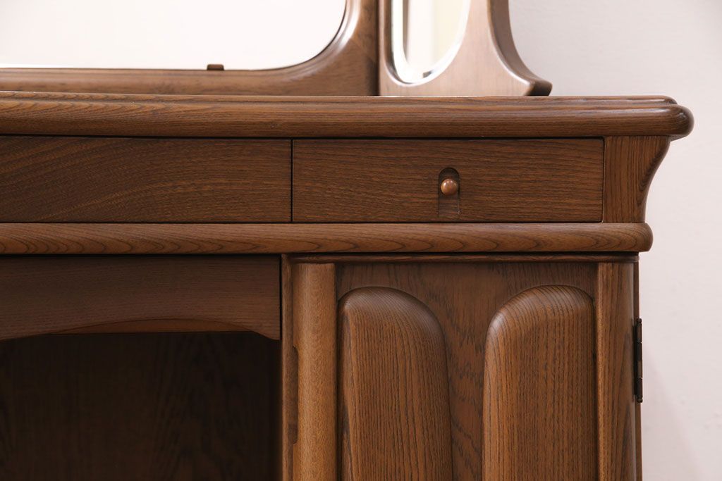 中古 松永工房 ゆるやかなカーブを描くデザインがエレガントな印象を醸し出すドレッサー&チェアセット(鏡台、スツール)(R-051305)