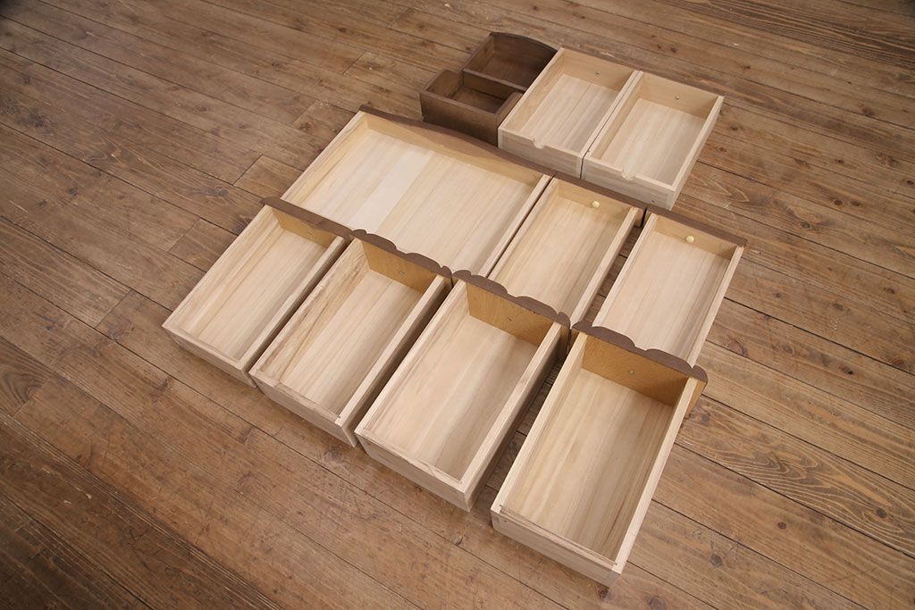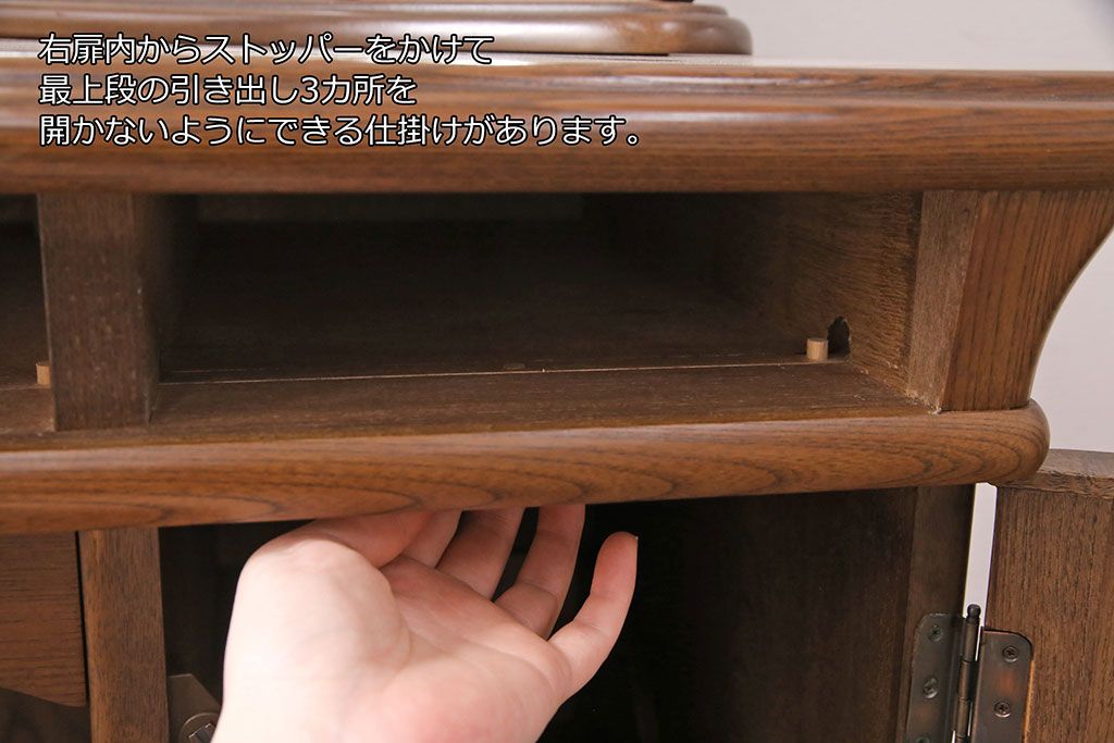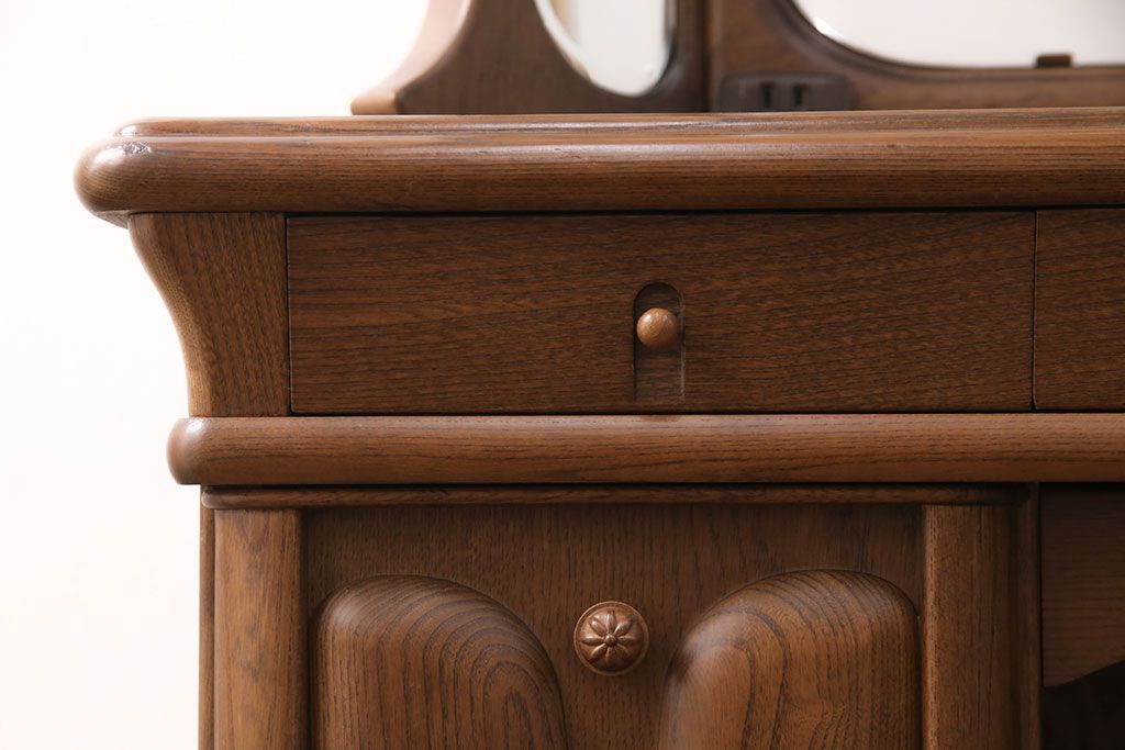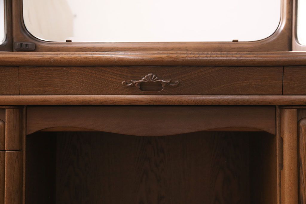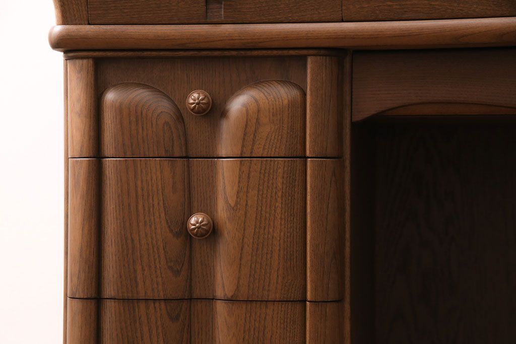 ラフジュ工房> ドレッサー・鏡台> ドレッサー > 中古 松永工房 ゆるやかなカーブを描くデザインがエレガントな印象を醸し出すドレッサー&チェアセット(鏡台、スツール)(R-051305)