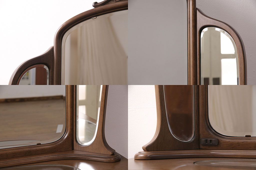 ラフジュ工房> ドレッサー・鏡台 > 中古 松永工房 ゆるやかなカーブを描くデザインがエレガントな印象を醸し出すドレッサー&チェアセット(鏡台、スツール)(R-051305)