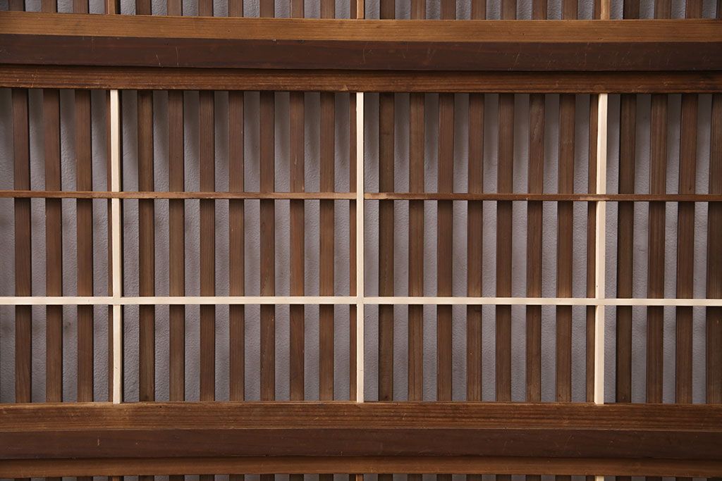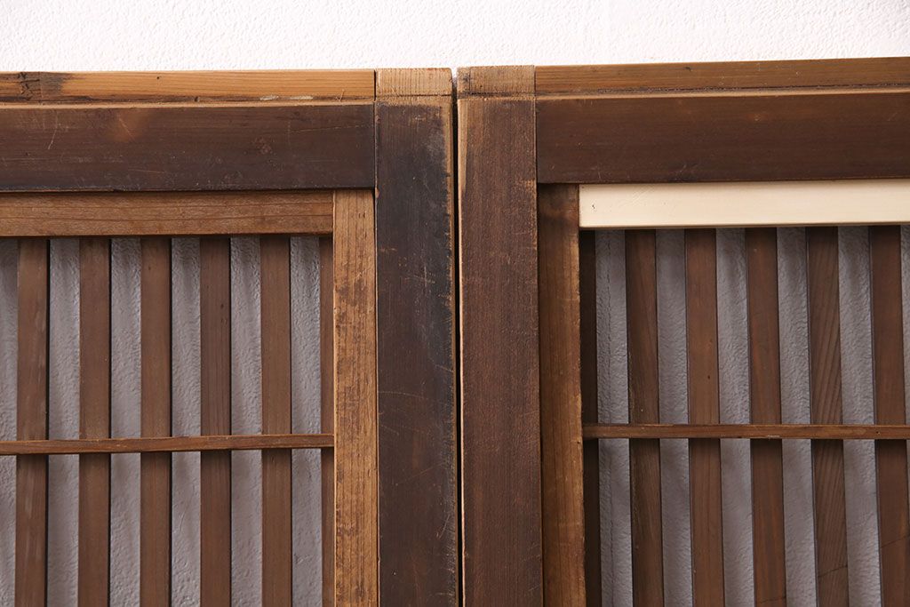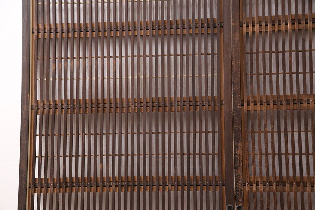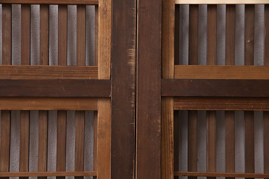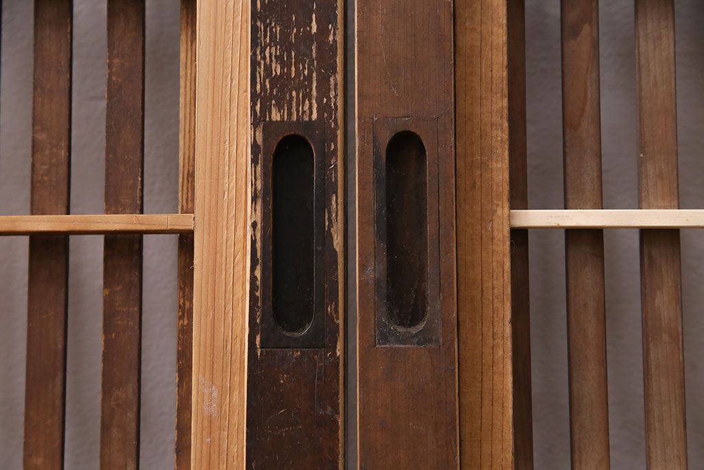 ドア・建具> 格子戸 > 明治大正期の格子戸2枚をリペア&カスタム!設置場所に合わせてリサイズし、戸車を取り付け。クリアワックス仕上げ。(引き戸、建具)