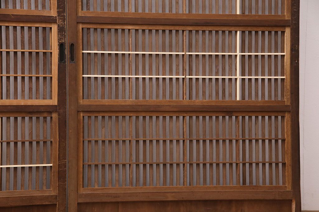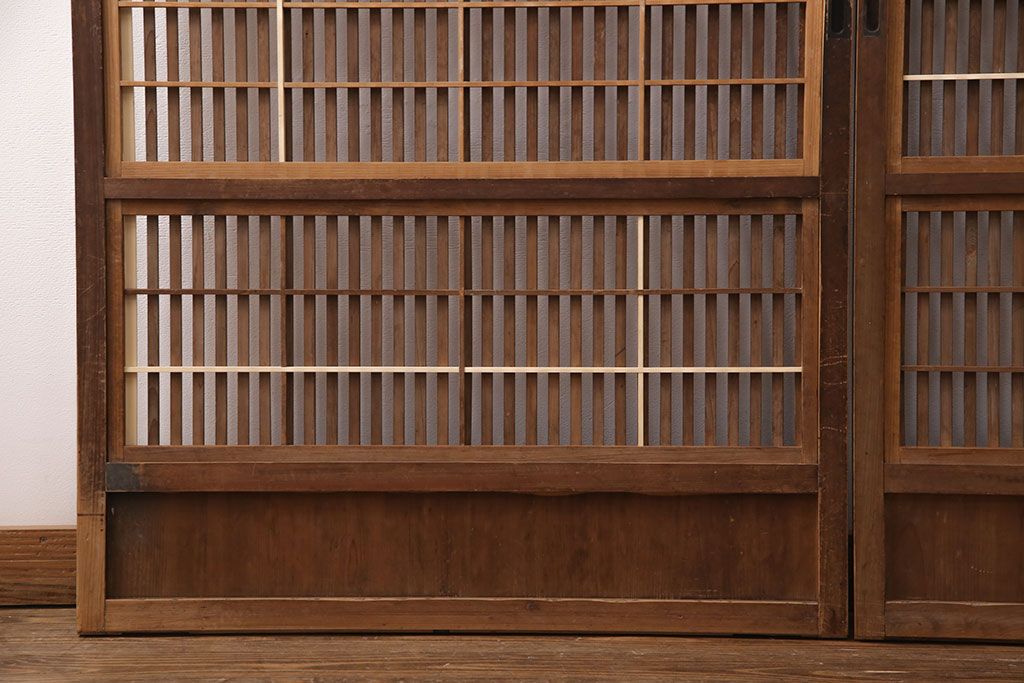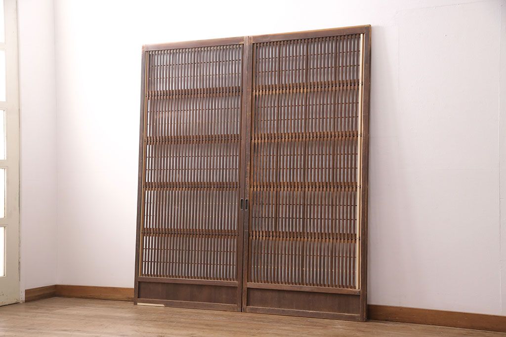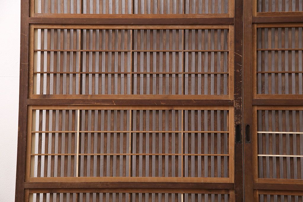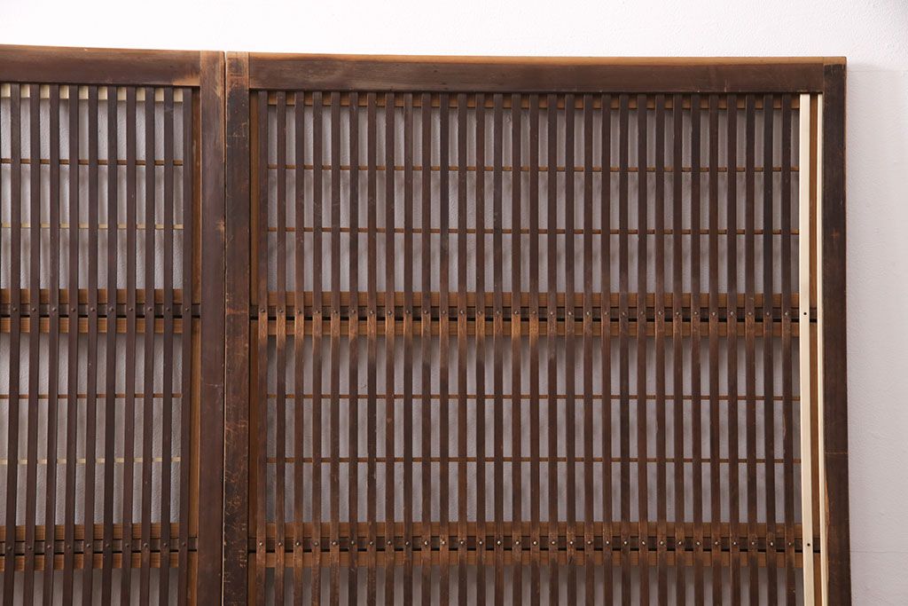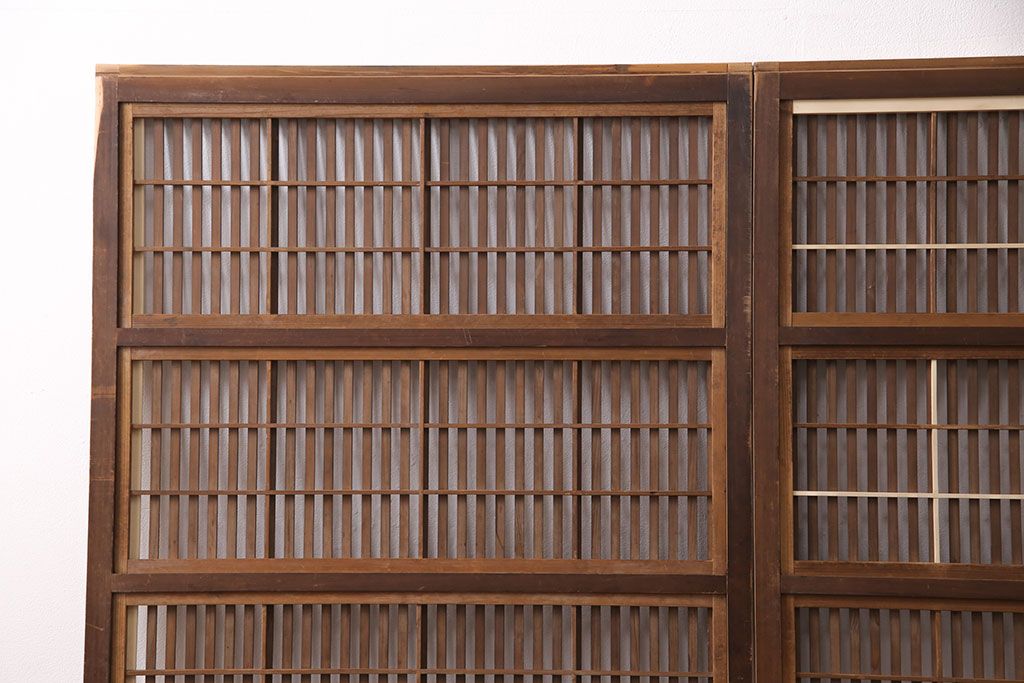 ドア・建具> 格子戸 > 明治大正期の格子戸2枚をリペア&カスタム!設置場所に合わせてリサイズし、戸車を取り付け。クリアワックス仕上げ。(引き戸、建具)
