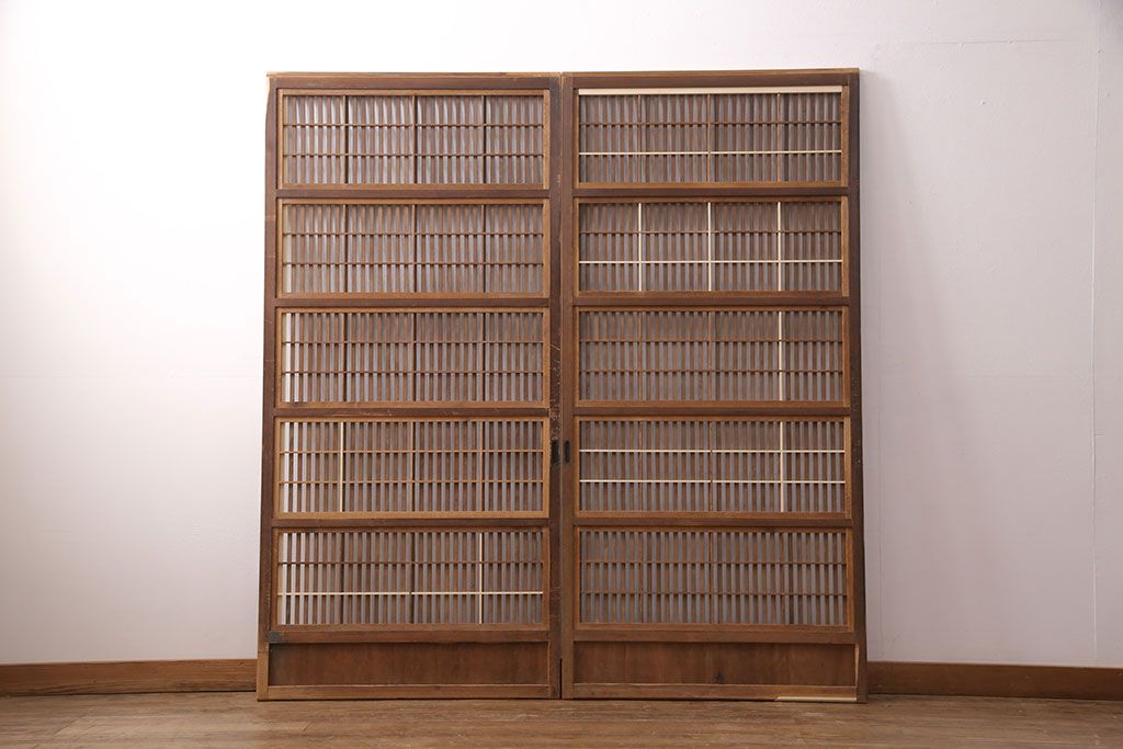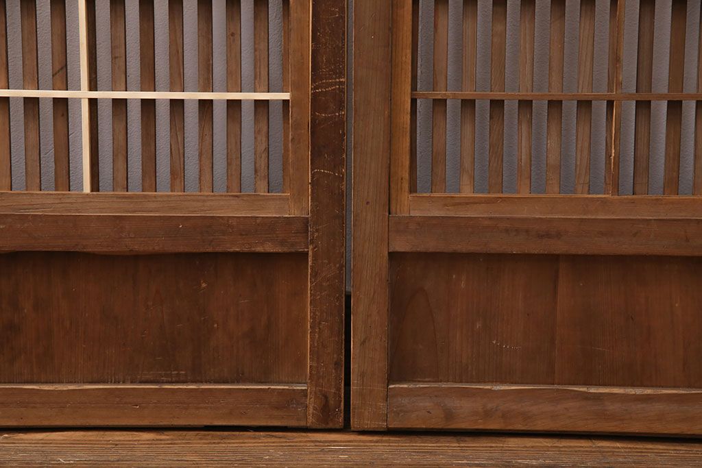 ドア・建具> 引き戸 > 明治大正期の格子戸2枚をリペア&カスタム!設置場所に合わせてリサイズし、戸車を取り付け。クリアワックス仕上げ。(引き戸、建具)