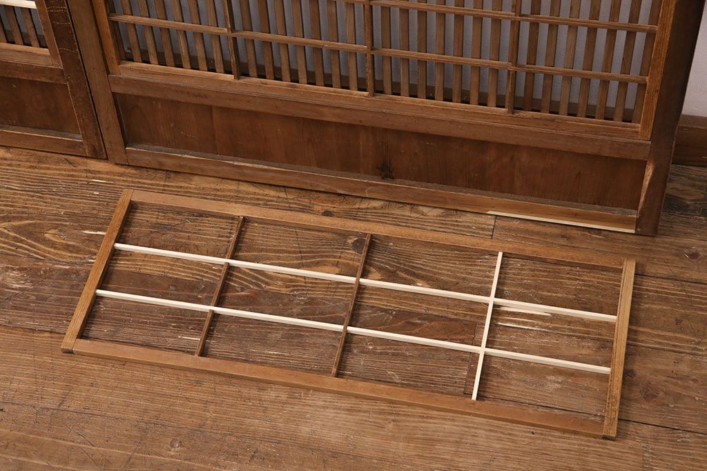 セミオーダー家具実績 > 明治大正期の格子戸2枚をリペア&カスタム!設置場所に合わせてリサイズし、戸車を取り付け。クリアワックス仕上げ。(引き戸、建具)