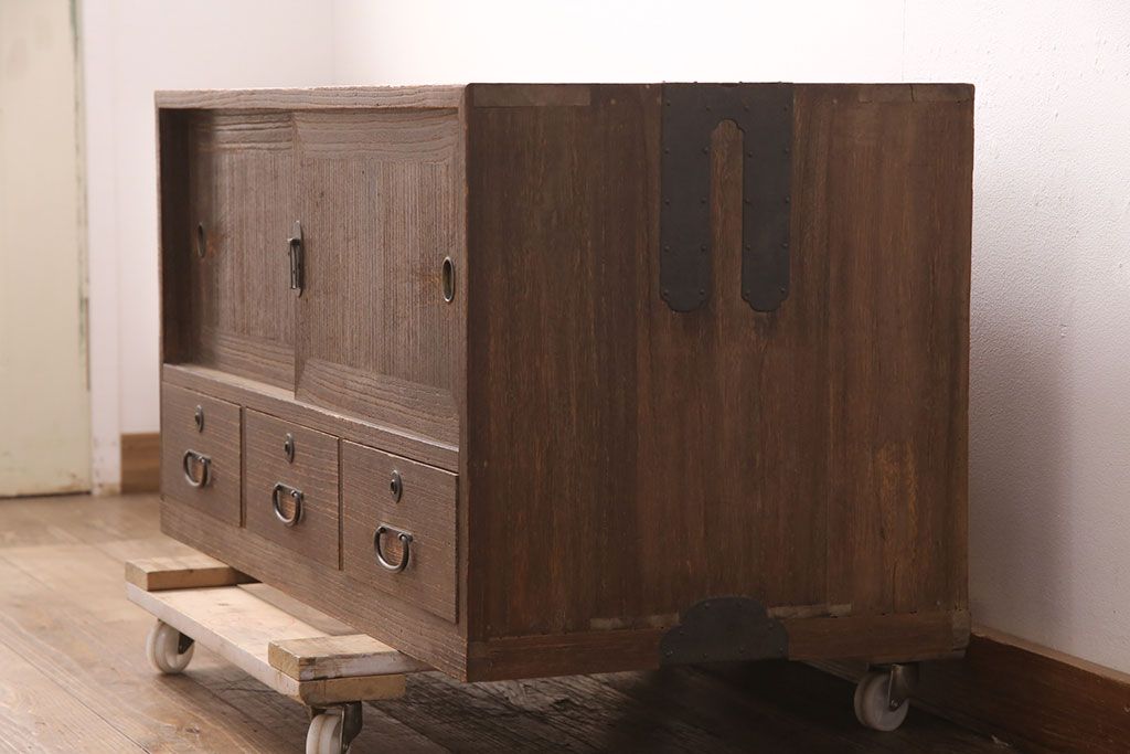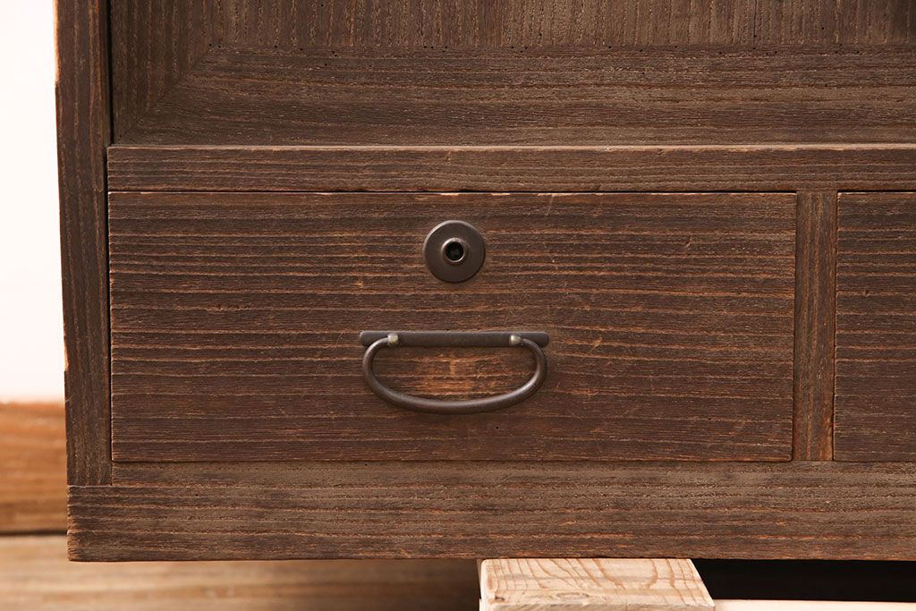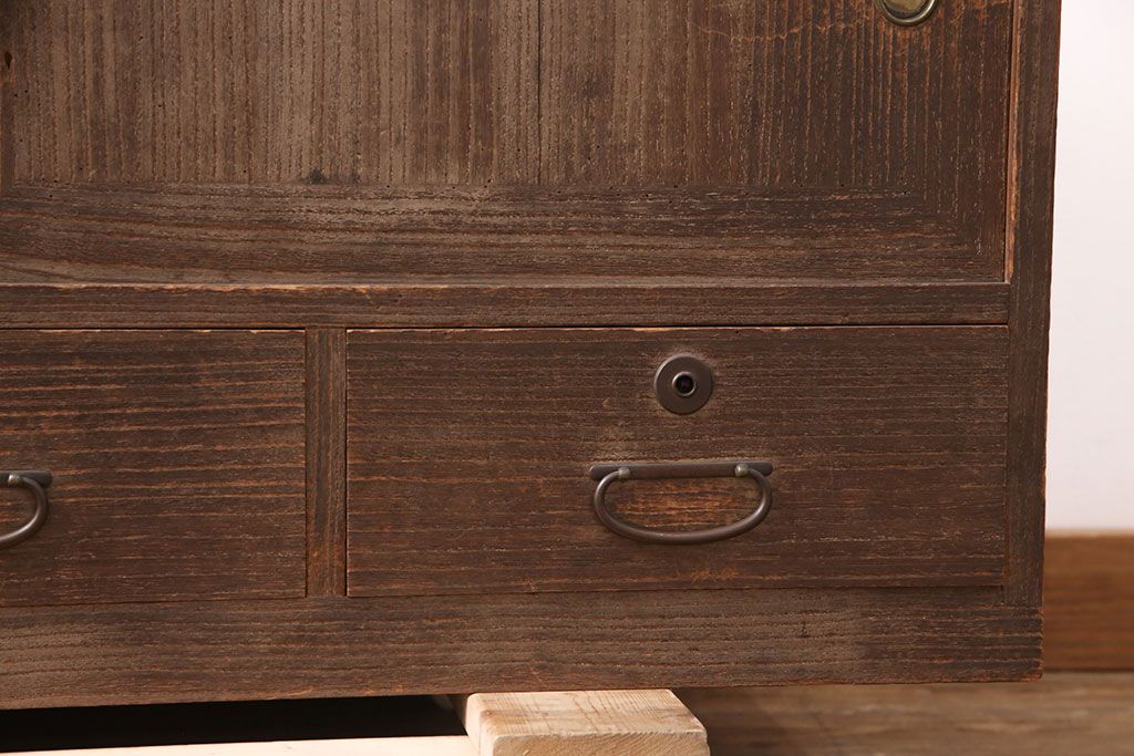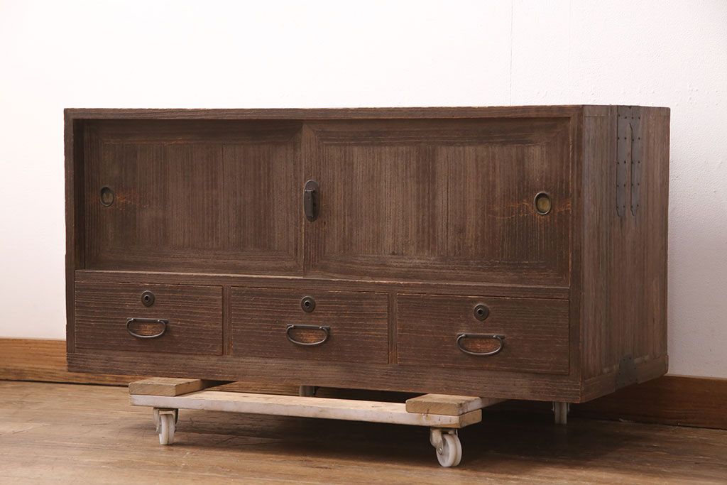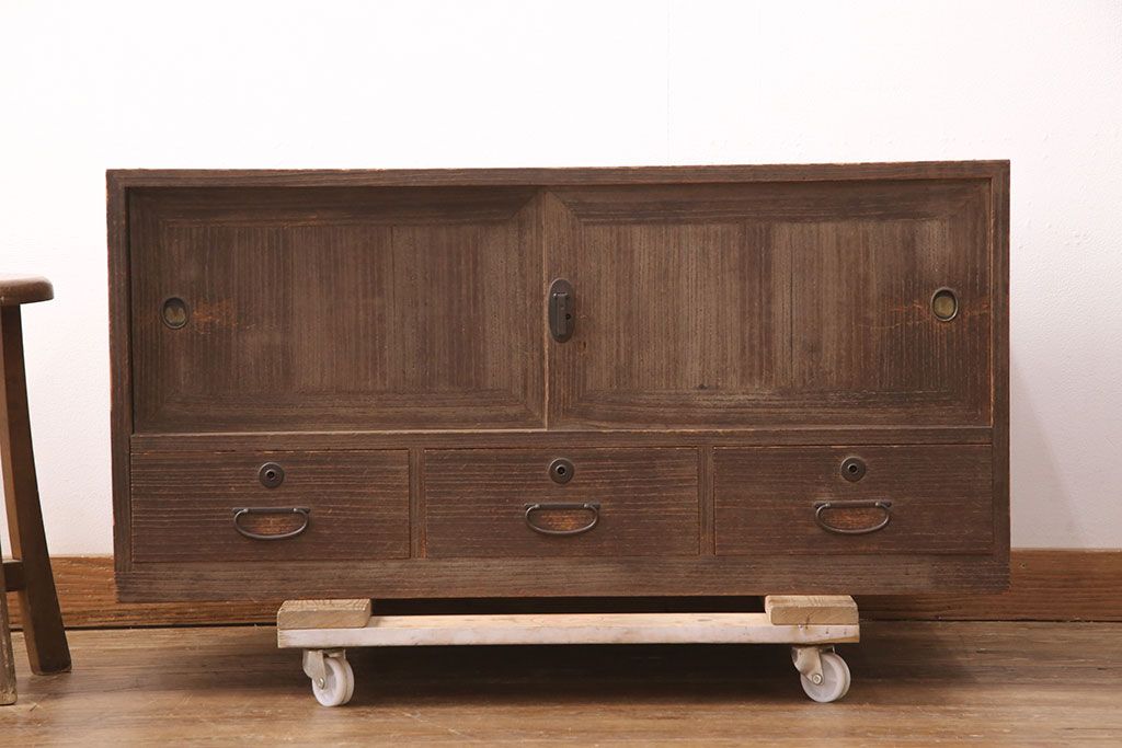 和箪笥 > アンティーク家具 昭和初期 渋り色合いが魅力的な総桐材製の時代箪笥ローボード(サイドボード、リビングボード、桐箪笥、桐たんす)(R-051244)