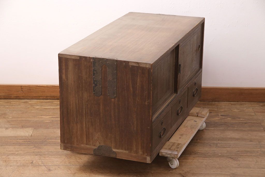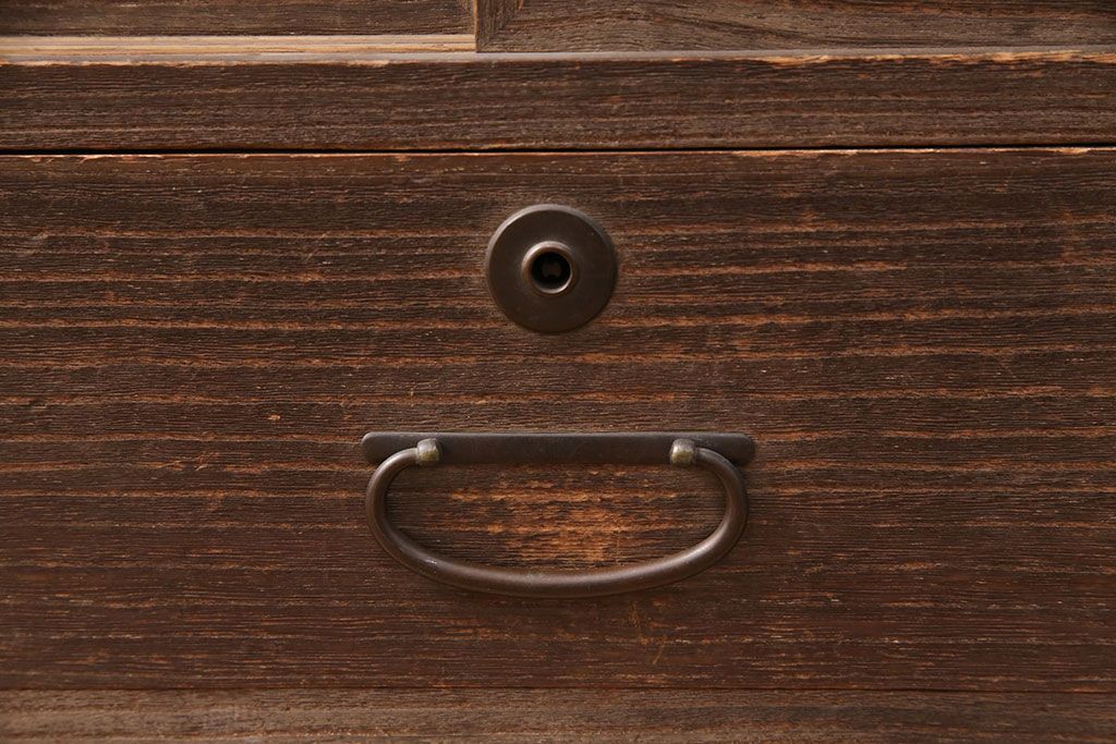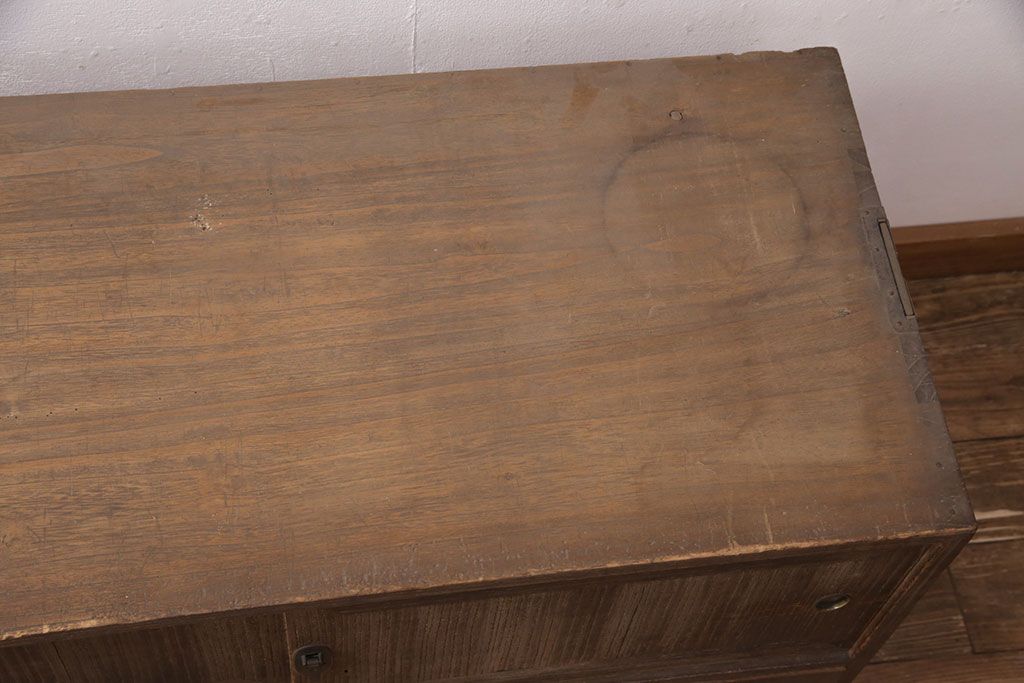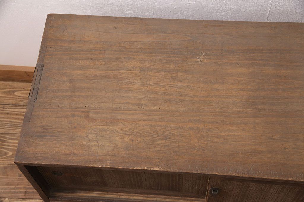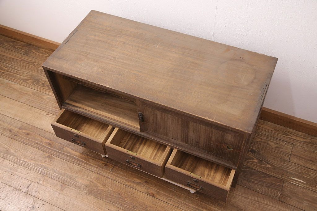 和箪笥 > アンティーク家具 昭和初期 渋り色合いが魅力的な総桐材製の時代箪笥ローボード(サイドボード、リビングボード、桐箪笥、桐たんす)(R-051244)