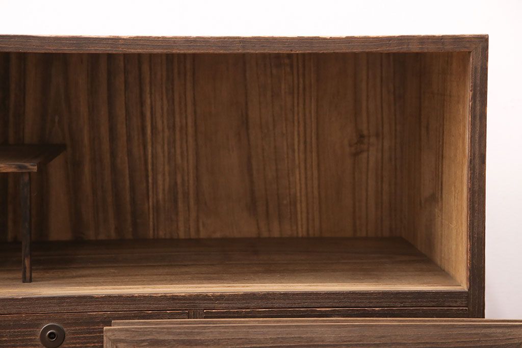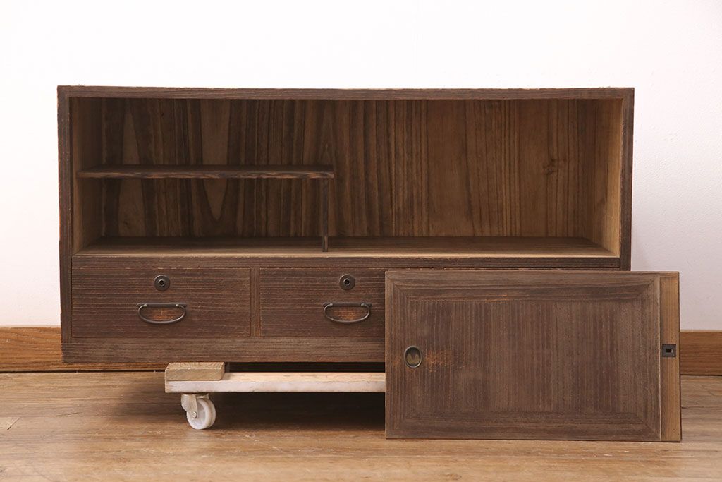 キャビネット・戸棚> テレビ台・ローボード > アンティーク家具 昭和初期 渋り色合いが魅力的な総桐材製の時代箪笥ローボード(サイドボード、リビングボード、桐箪笥、桐たんす)(R-051244)