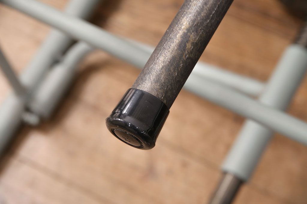 フルオーダー家具実績 > 格納スツール8脚付きテーブルを新規製作!当店商品を参考に、ホワイトオークの天板を取り付け。淡い青緑のペイント仕上げ。(ダイニングテーブル、作業台、椅子)