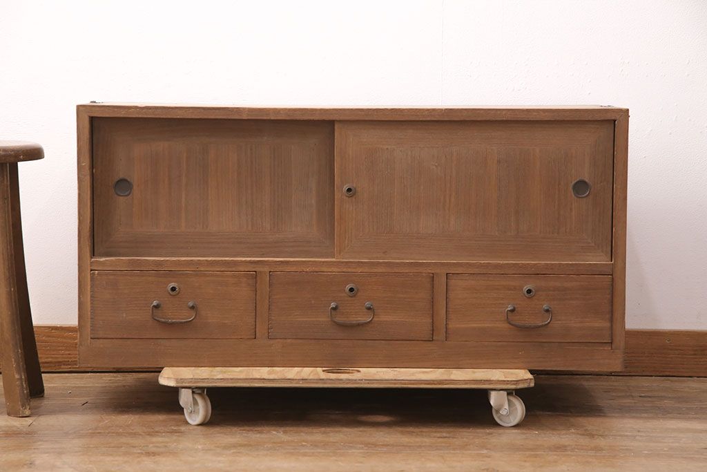 アンティーク家具 昭和初期 経年による風合いが味わい深い桐箪笥ローボード(リビングボード、収納棚、テレビ台、テレビボード、桐たんす)(R-051338)