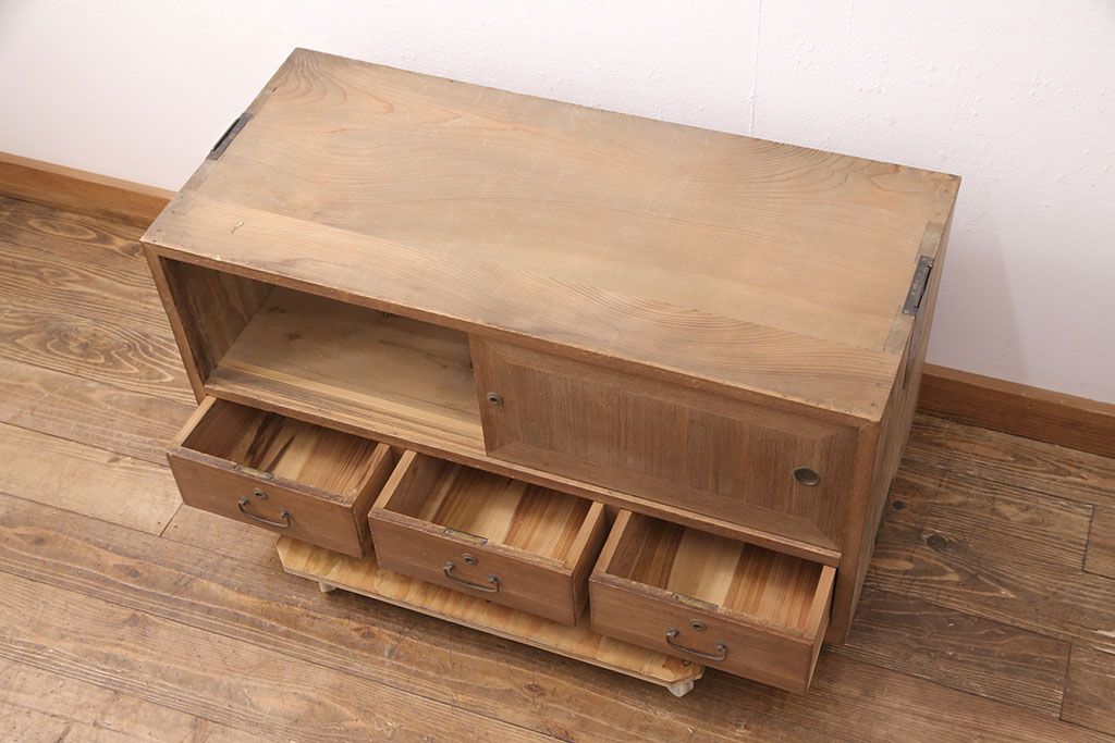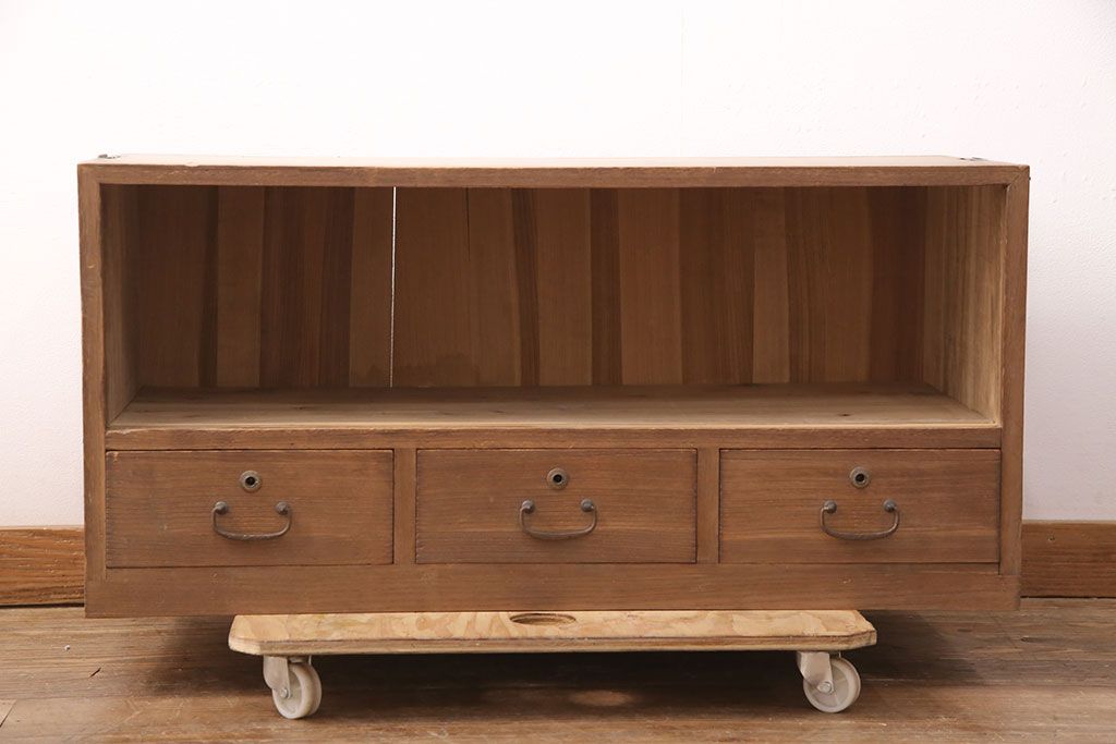 ラフジュ工房> キャビネット・戸棚> テレビ台・ローボード > アンティーク家具 昭和初期 経年による風合いが味わい深い桐箪笥ローボード(リビングボード、収納棚、テレビ台、テレビボード、桐たんす)(R-051338)