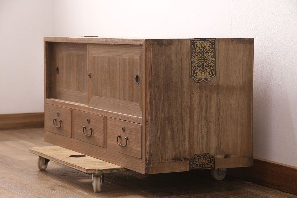 ラフジュ工房> 和箪笥 > アンティーク家具 昭和初期 経年による風合いが味わい深い桐箪笥ローボード(リビングボード、収納棚、テレビ台、テレビボード、桐たんす)(R-051338)