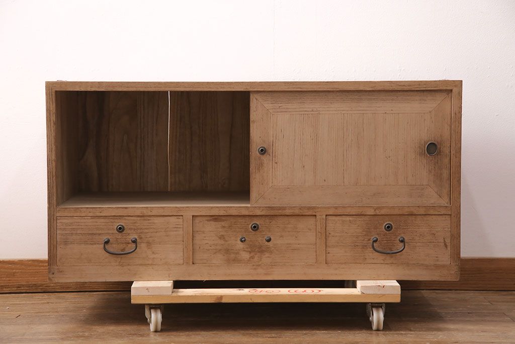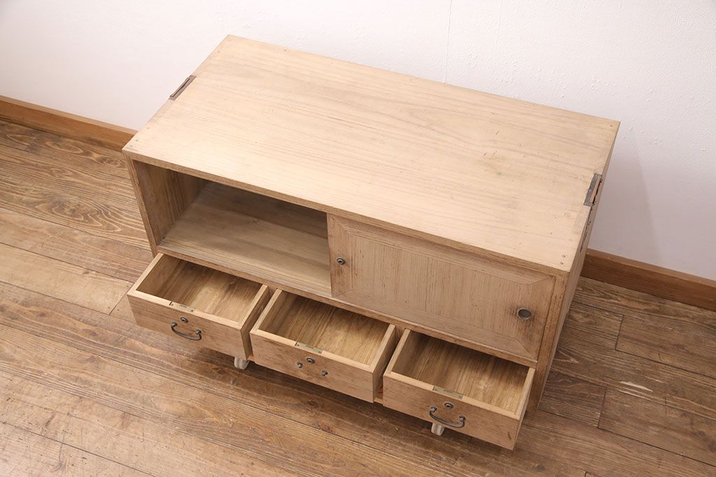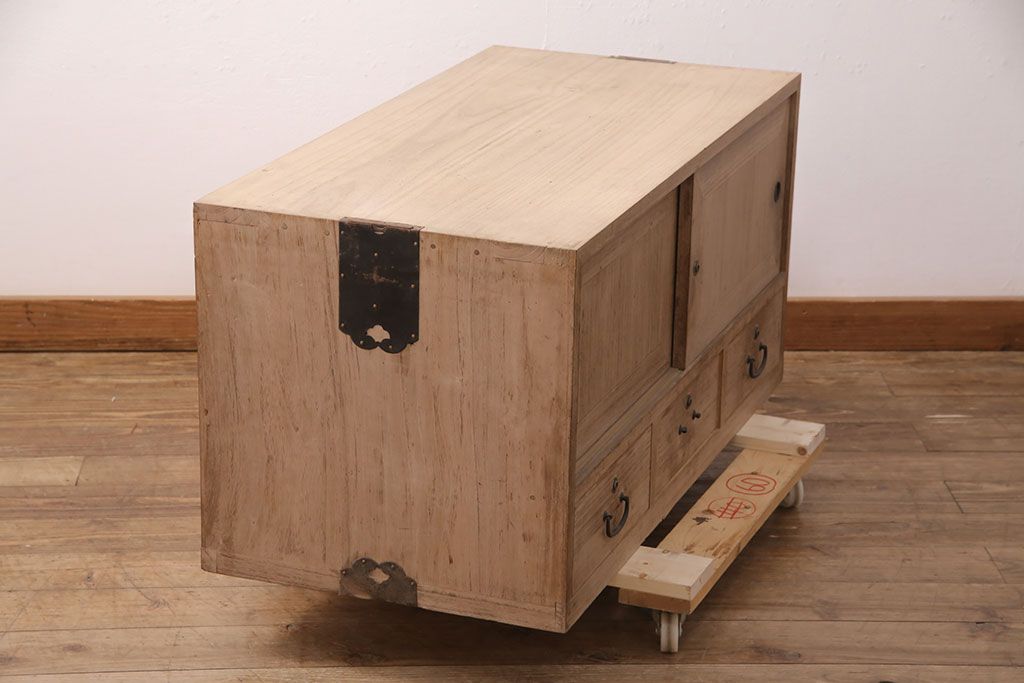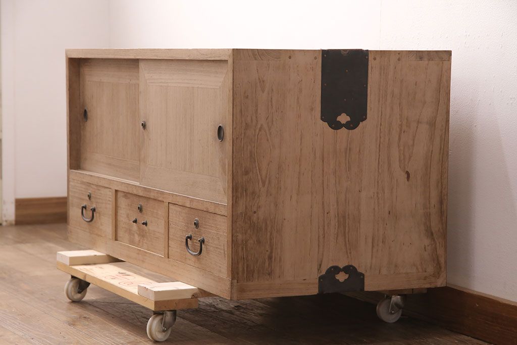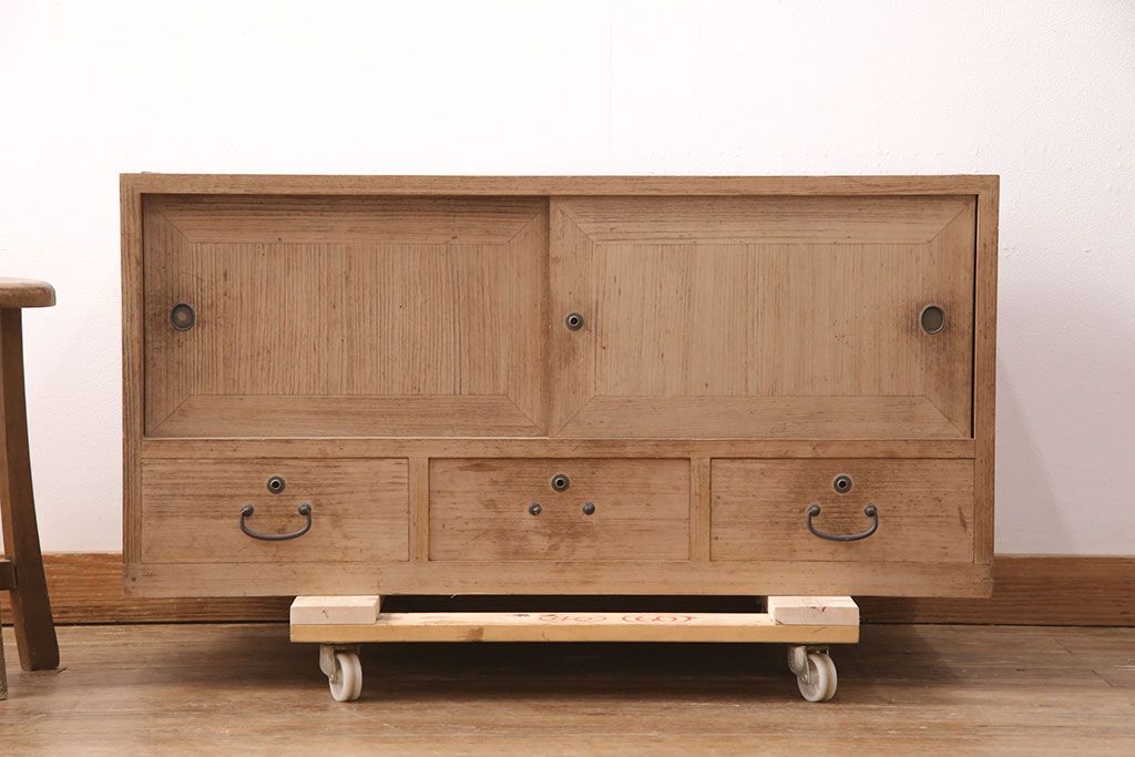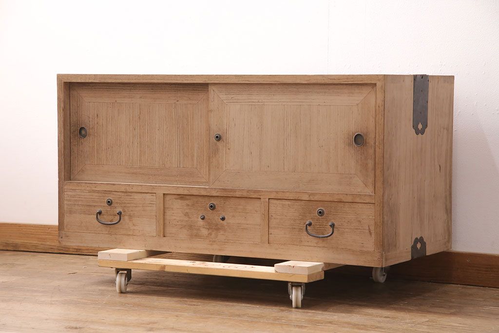 ラフジュ工房> 和箪笥 > アンティーク家具 昭和初期 素朴な木の風合いで優しい雰囲気を醸しだす桐箪笥ローボード(リビングボード、収納棚、テレビ台、テレビボード、桐たんす)(R-051339)