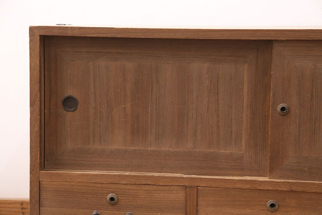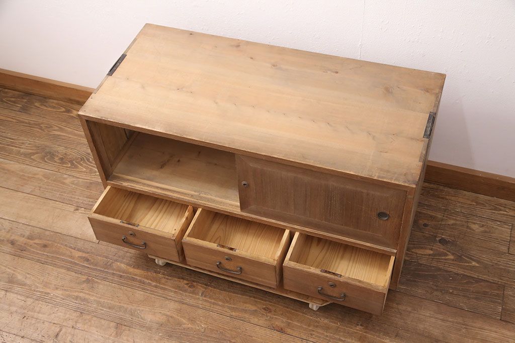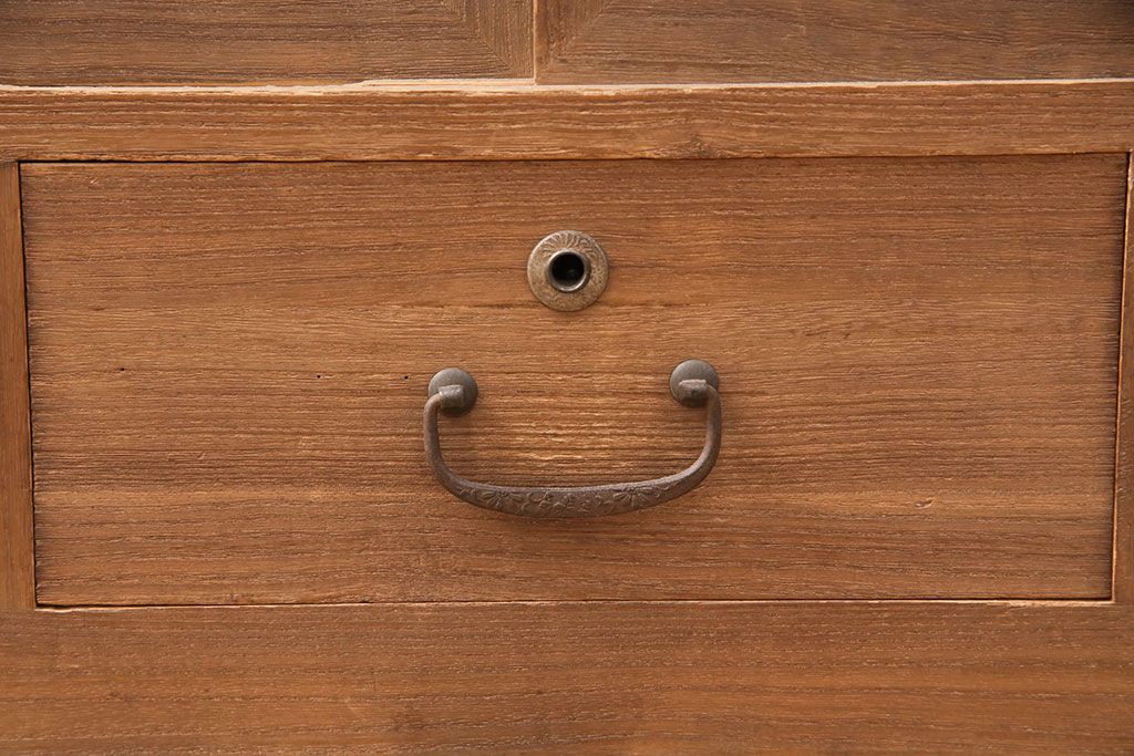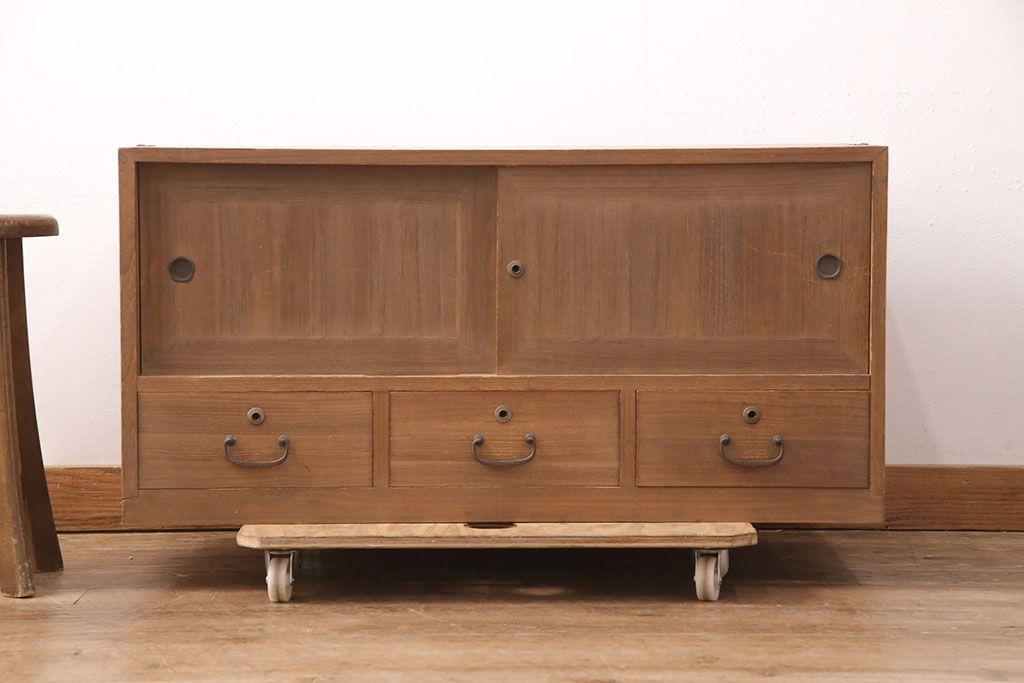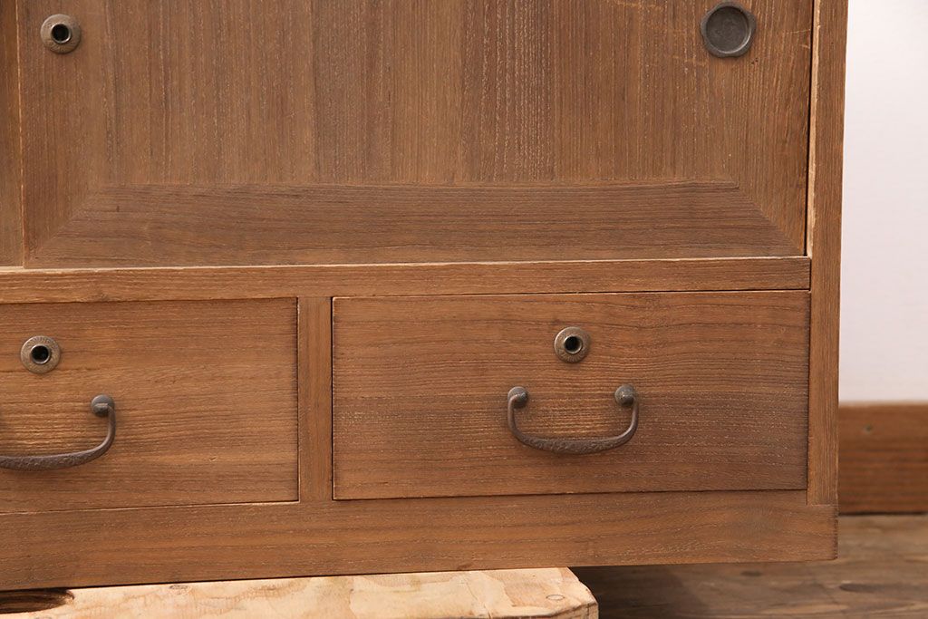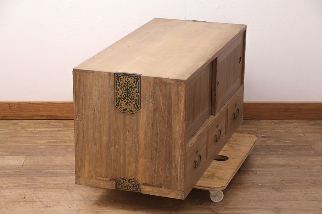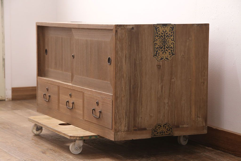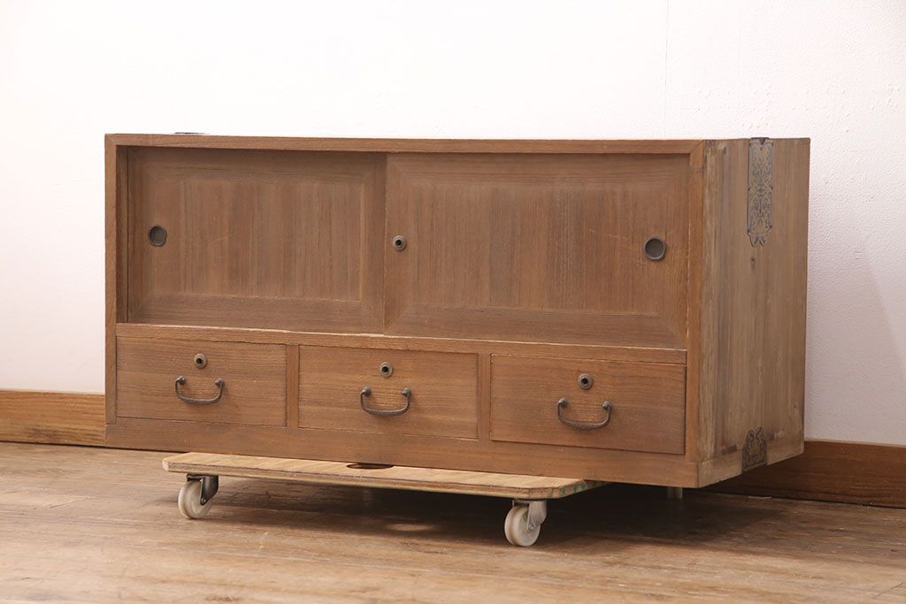 ラフジュ工房> 和箪笥 > アンティーク家具 昭和初期 凝ったデザインの棹通しが魅力!華やかな印象を醸し出す桐箪笥ローボード(リビングボード、収納棚、テレビ台、テレビボード、桐たんす)(R-051341)