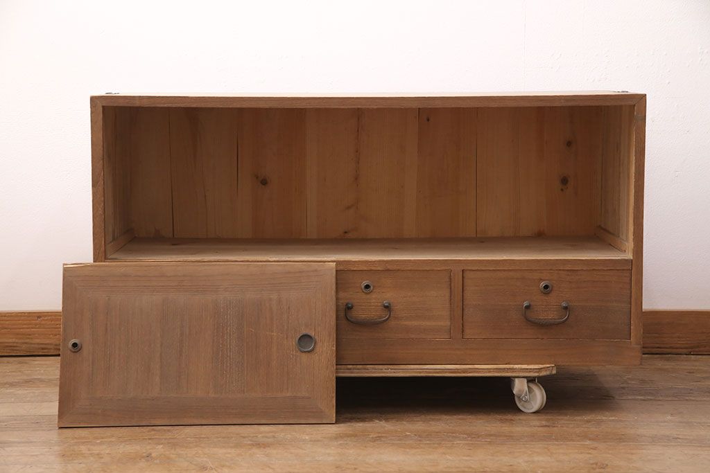 ラフジュ工房> キャビネット・戸棚> テレビ台・ローボード > アンティーク家具 昭和初期 凝ったデザインの棹通しが魅力!華やかな印象を醸し出す桐箪笥ローボード(リビングボード、収納棚、テレビ台、テレビボード、桐たんす)(R-051341)