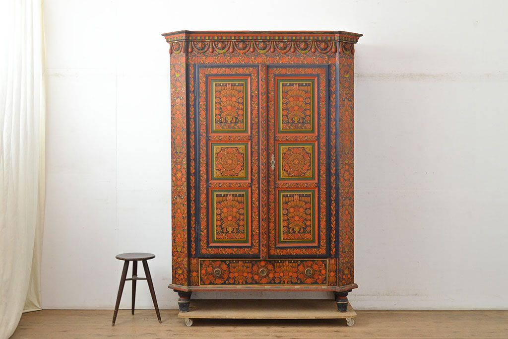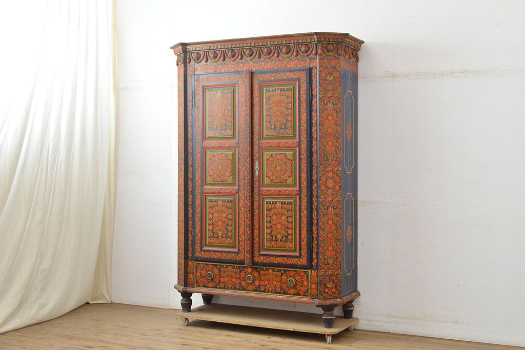 ヨーロッパアンティーク シノワズリ様式 希少!素晴らしい手書き模様が魅力のワードローブ(洋服タンス、衣装タンス、戸棚、収納棚)(R-051170)です。