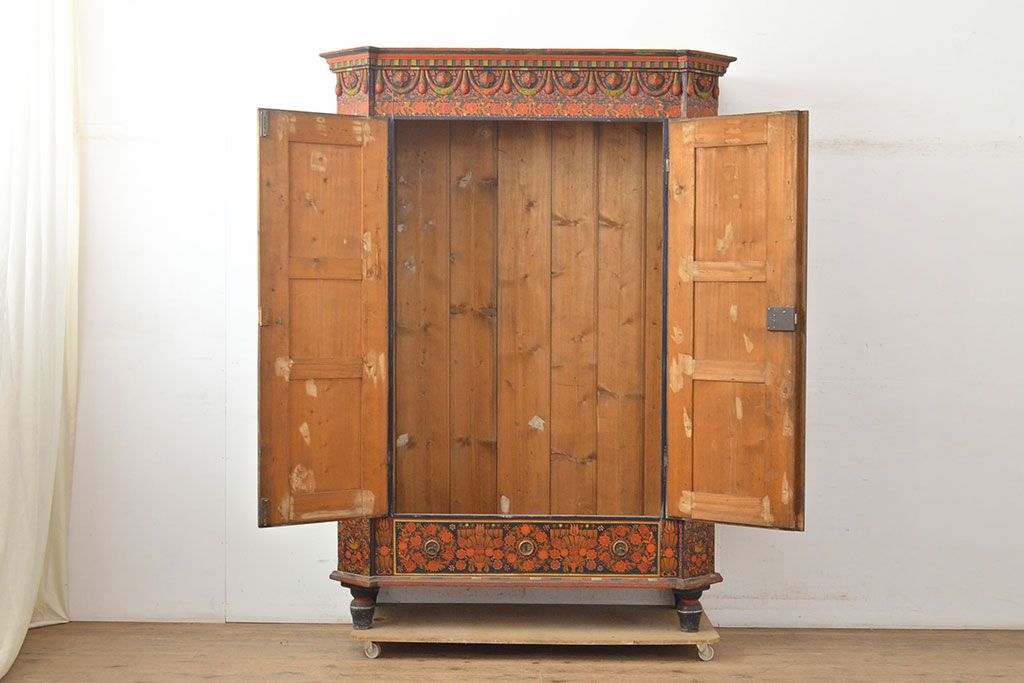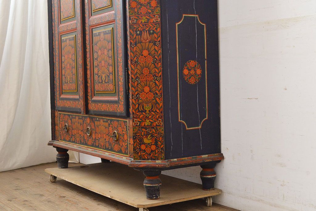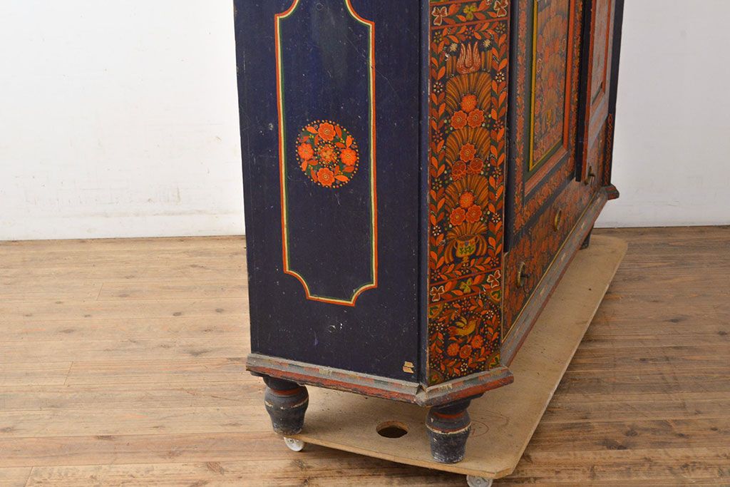 ヨーロッパアンティーク シノワズリ様式 希少!素晴らしい手書き模様が魅力のワードローブ(洋服タンス、衣装タンス、戸棚、収納棚)(R-051170)