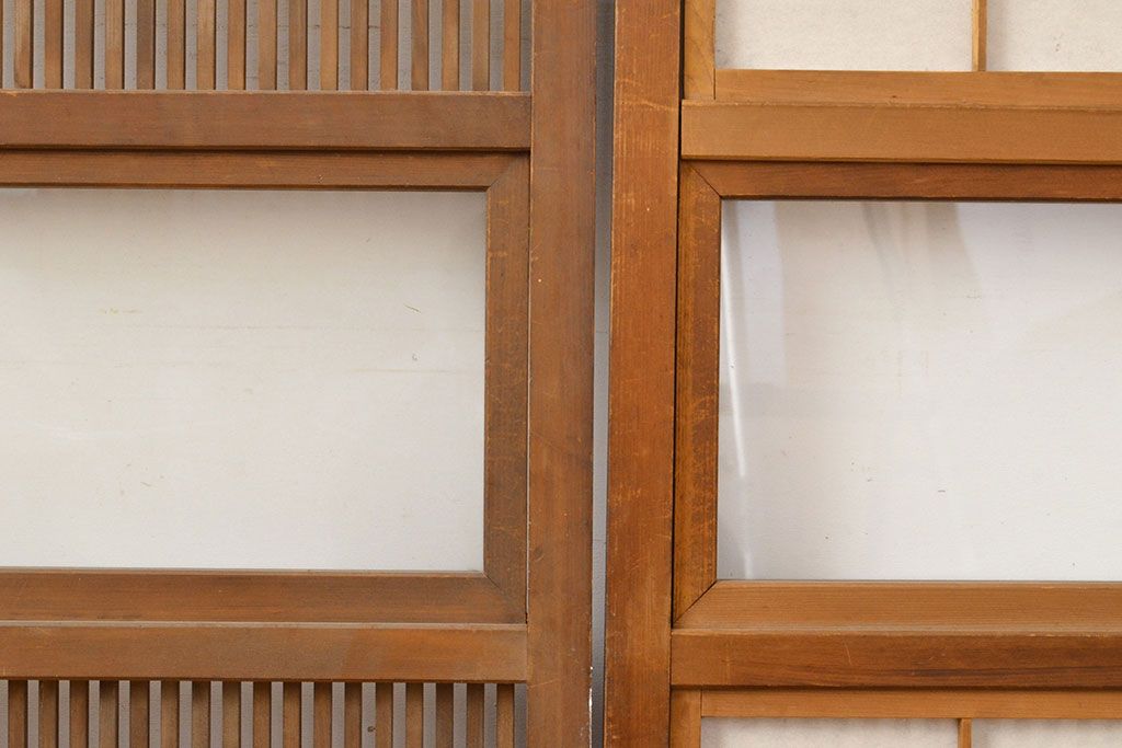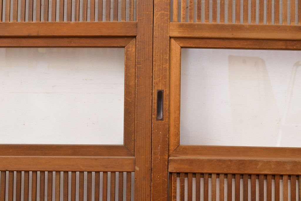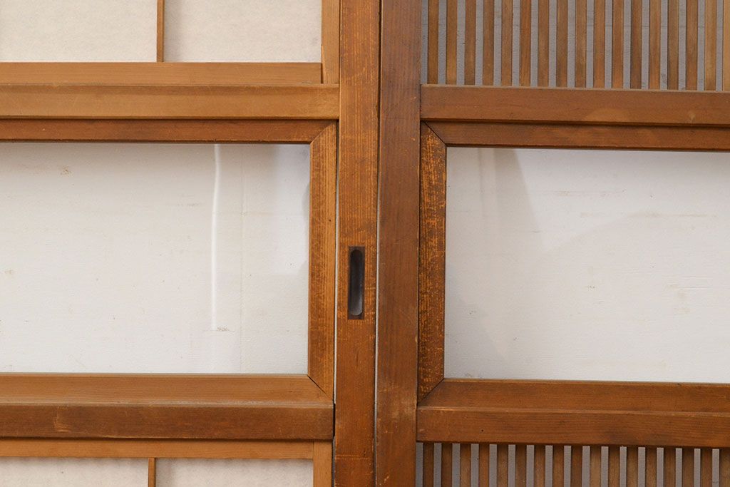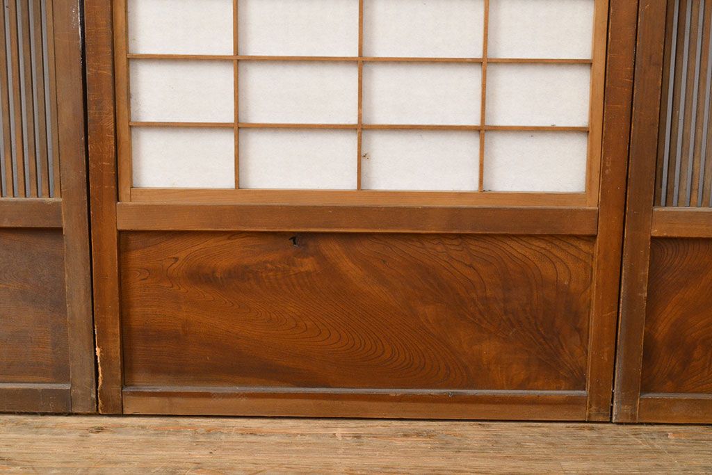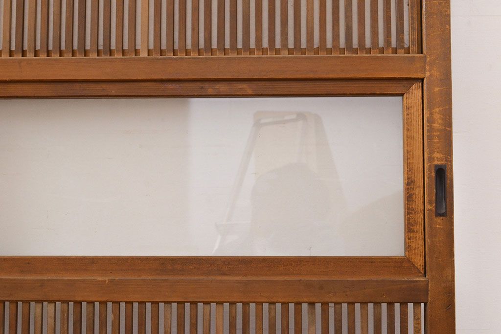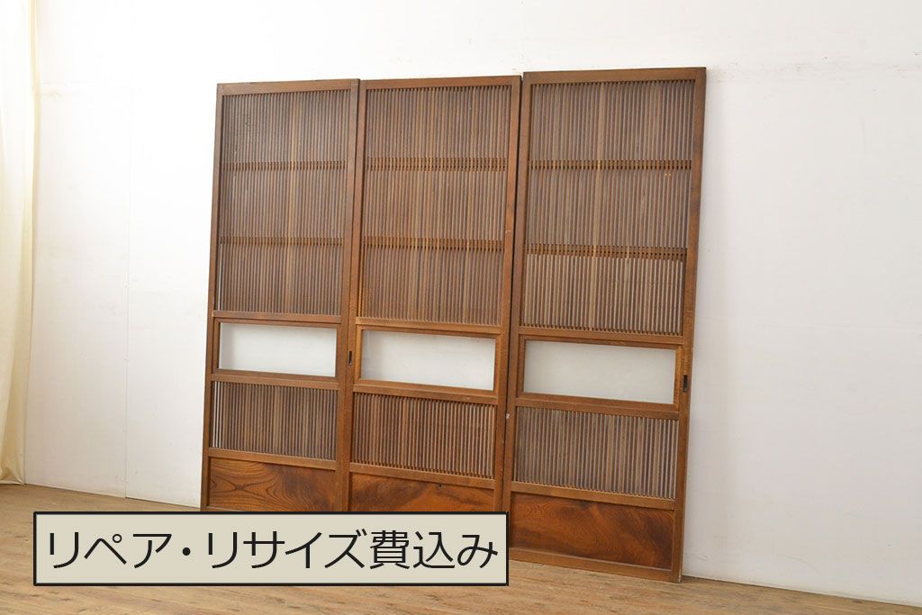 アンティーク建具 昭和初期 裏障子付き 上手物の幅狭万本格子戸3枚セット(引き戸、帯ガラス戸、障子戸)(R-051165)