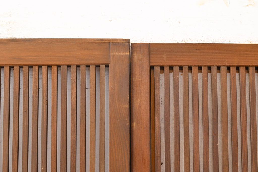 ラフジュ工房> ドア・建具> 引き戸 > アンティーク建具 昭和初期 裏障子付き 上手物の幅狭万本格子戸3枚セット(引き戸、帯ガラス戸、障子戸)(R-051165)