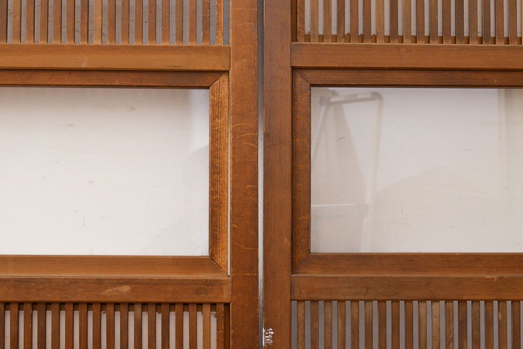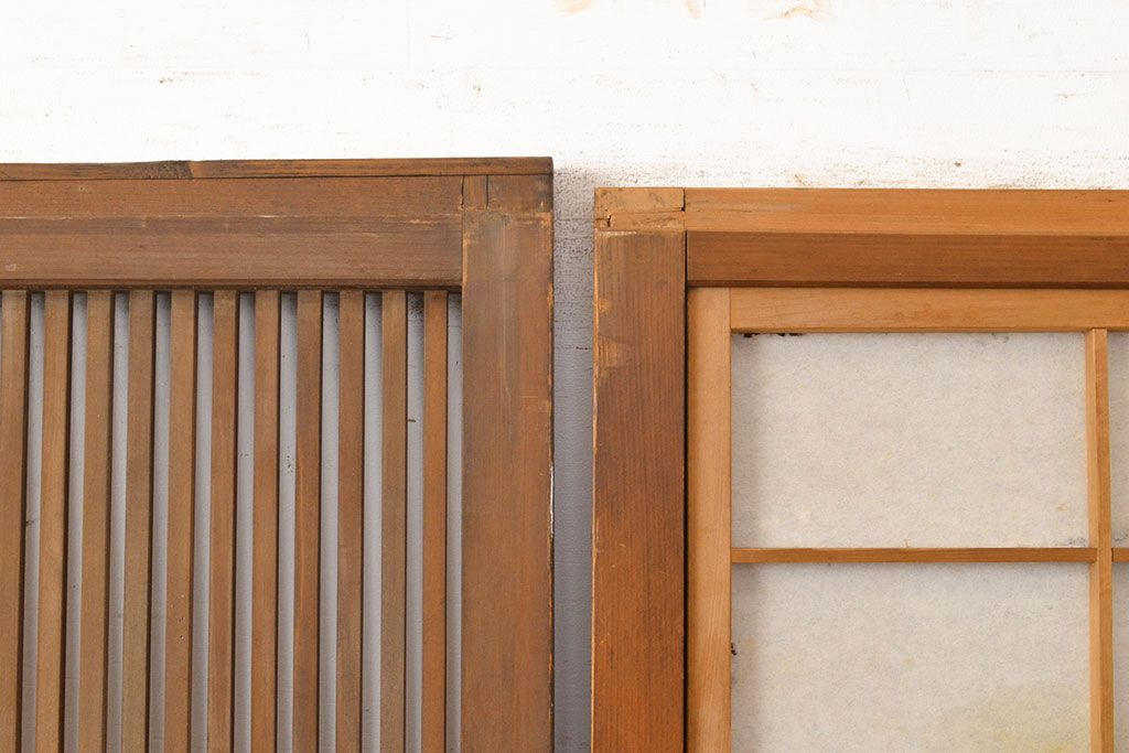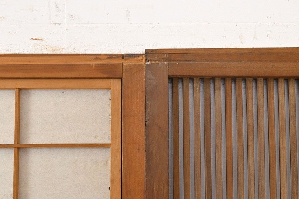 ラフジュ工房> ドア・建具> 障子戸 > アンティーク建具 昭和初期 裏障子付き 上手物の幅狭万本格子戸3枚セット(引き戸、帯ガラス戸、障子戸)(R-051165)
