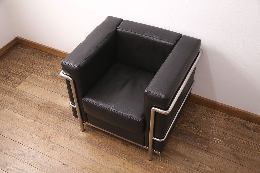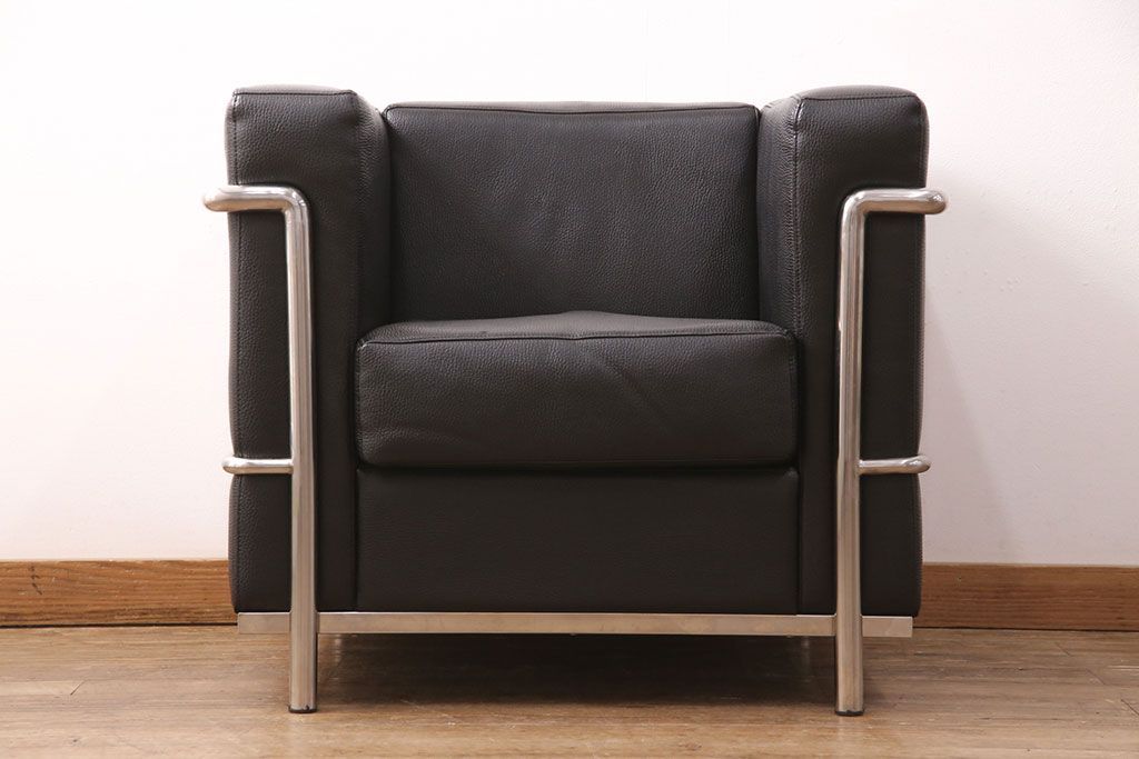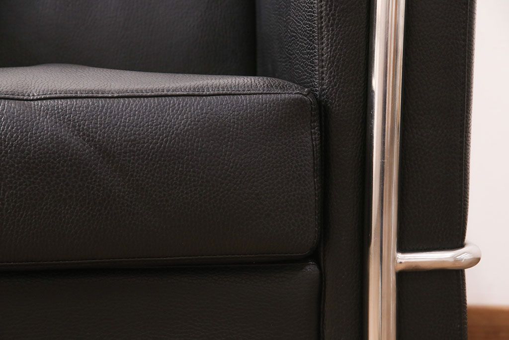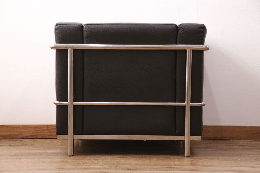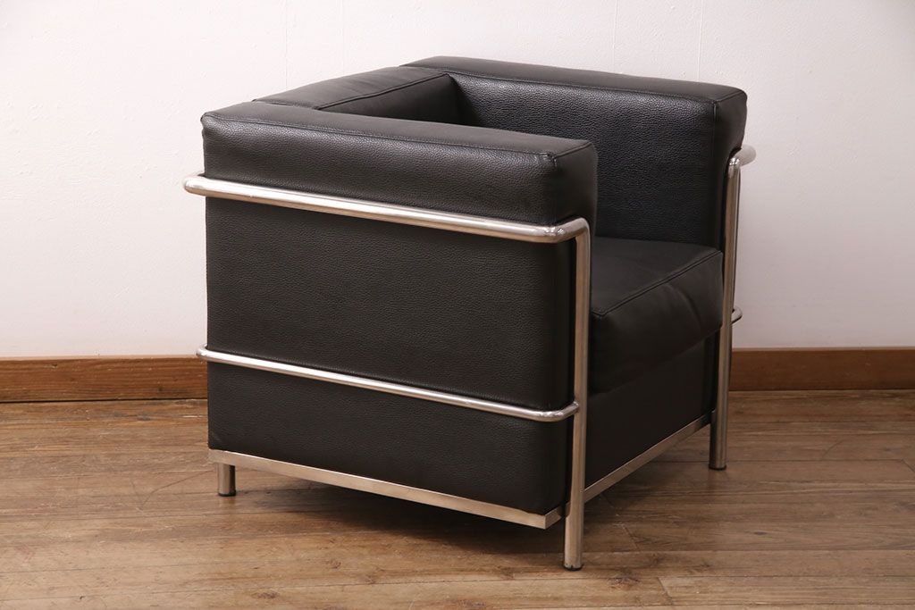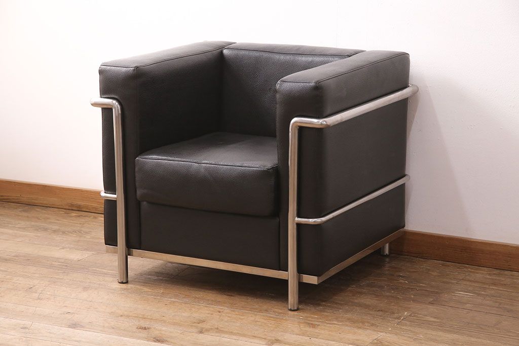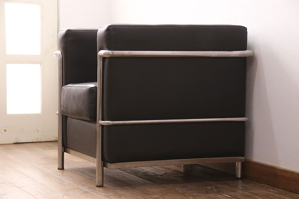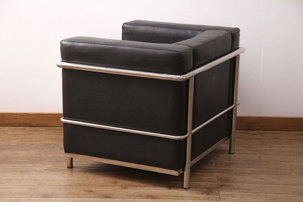 お問い合わせいただければ、優先してアップいたします。中古 合皮 リプロダクト品 ル・コルビュジェデザインのLC2ソファ(1人掛け、アームチェア)(R-051354)です。