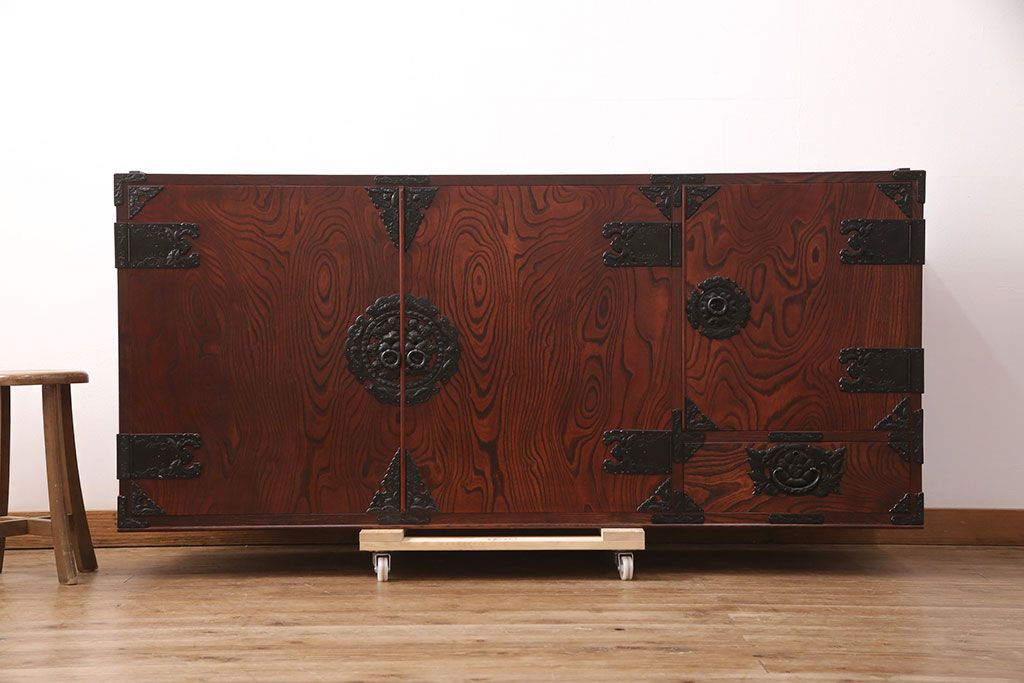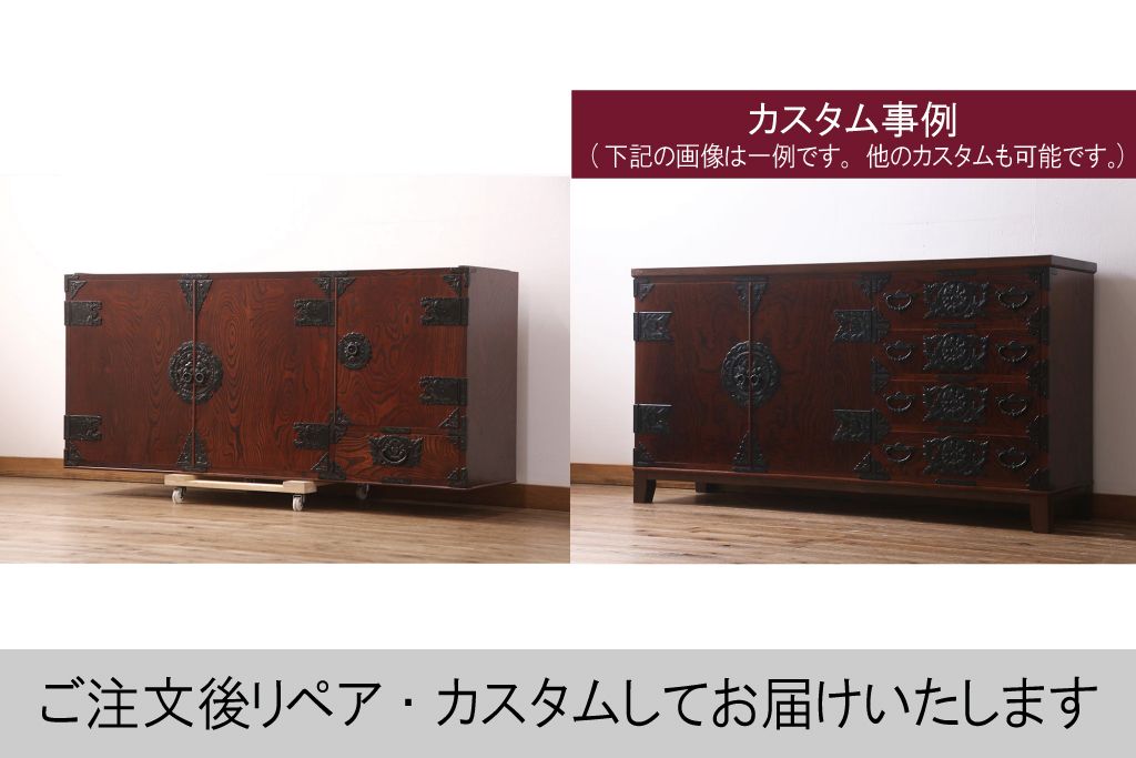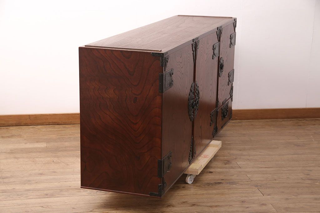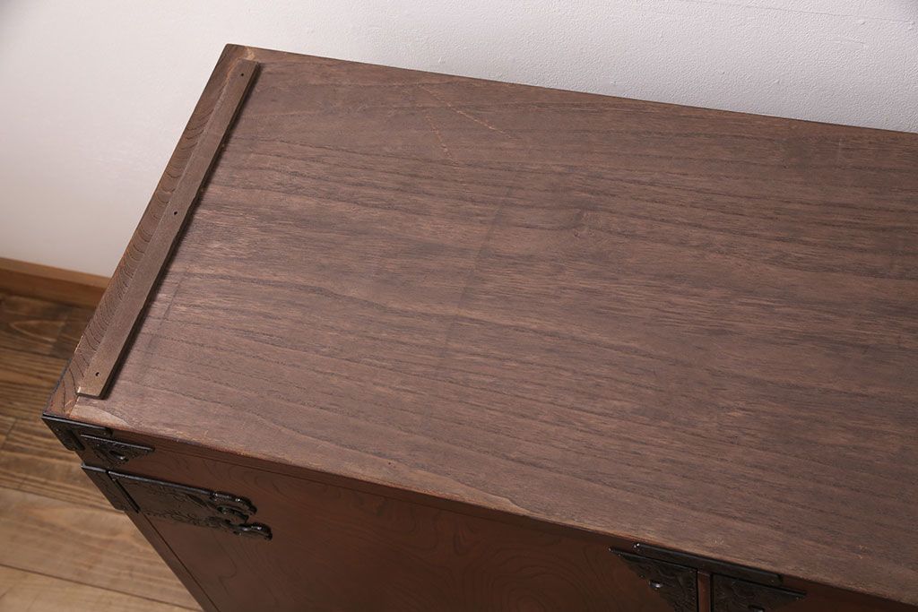 ラフジュ工房> キャビネット・戸棚> サイドボード > 中古 民芸家具 岩谷堂箪笥 天板・脚(台輪)付きリメイク 和の趣あふれる現代のお部屋にぴったりの衣装盆付きサイドボード(ローボード、着物箪笥、収納棚、テレビ台)(R-051255)