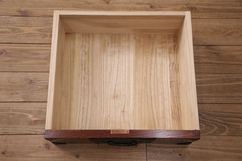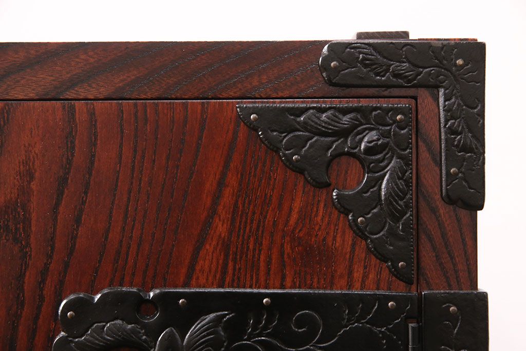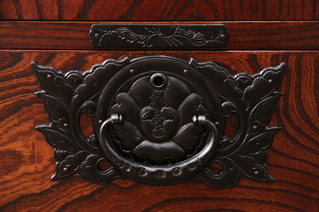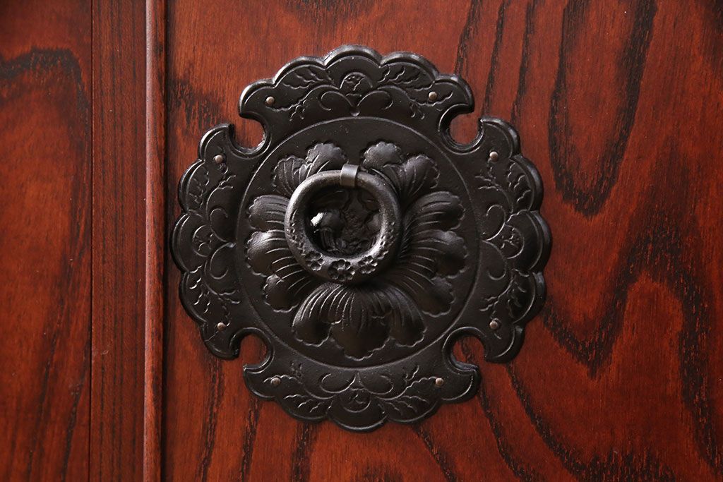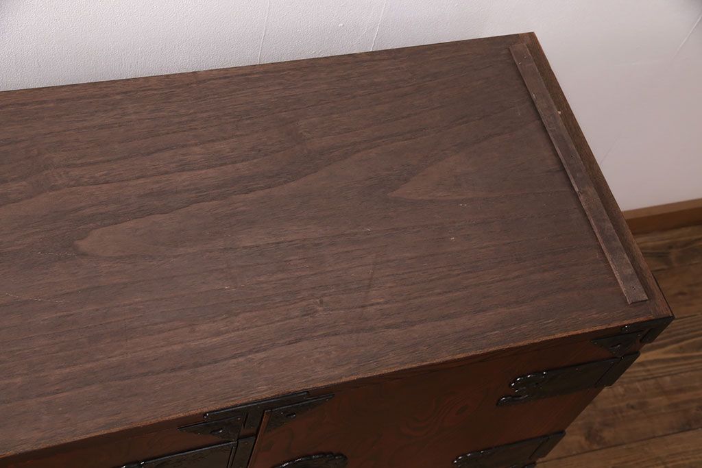 ラフジュ工房> キャビネット・戸棚> サイドボード > 中古 民芸家具 岩谷堂箪笥 天板・脚(台輪)付きリメイク 和の趣あふれる現代のお部屋にぴったりの衣装盆付きサイドボード(ローボード、着物箪笥、収納棚、テレビ台)(R-051255)